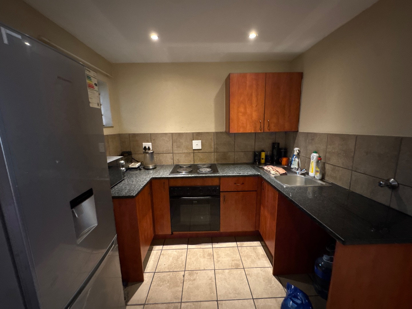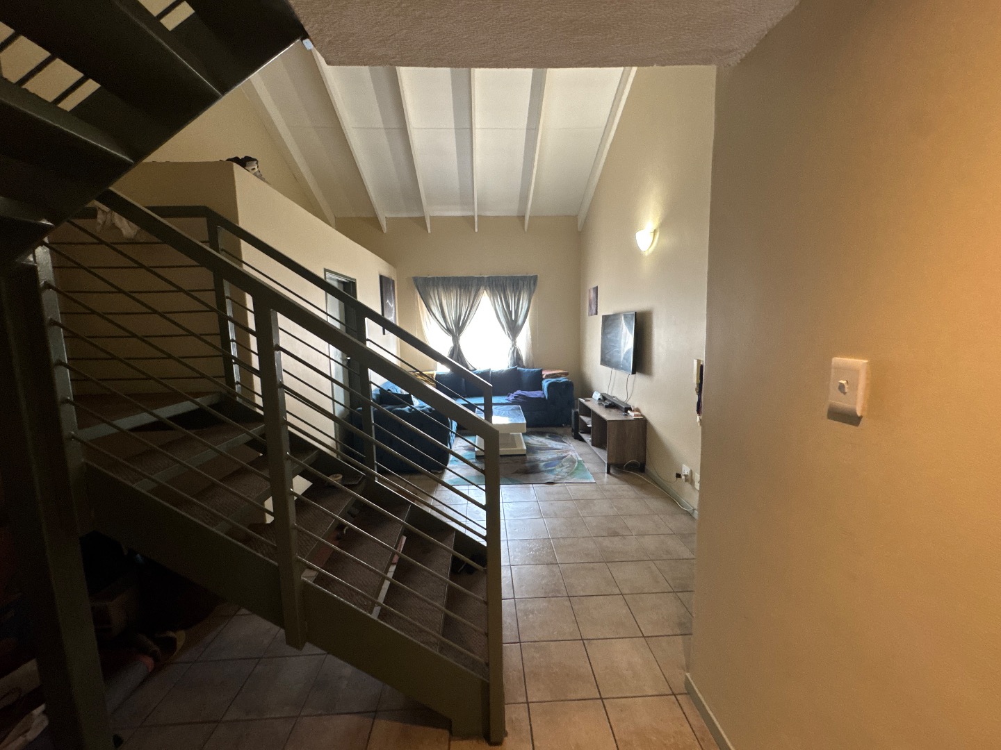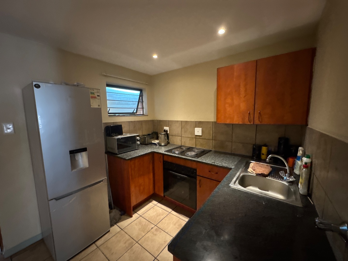 Discover modern living in this stylish 64 sqm apartment, perfectly situated in Hatfield, Pretoria. This vibrant suburban hub is renowned for its university community, offering unparalleled convenience and accessibility, making it an ideal choice for students and young professionals alike. The complex itself presents a welcoming kerb appeal with its contemporary red brick architecture, well-maintained green spaces, and paved walkways, complemented by individual garages and dedicated parking bays. Step inside to an inviting open-plan living area, distinguished by impressive vaulted ceilings with exposed beams that enhance the sense of space and character. Durable tiled flooring flows seamlessly throughout the main living areas, leading to a unique industrial-style metal staircase that ascends to a versatile upper loft, perfect for a study or an additional recreational space. The functional kitchen is designed with a U-shaped layout, featuring dark granite-style countertops, ample wooden cabinetry, a built-in oven, and an electric hob. A modern stainless steel refrigerator is also included, all illuminated by recessed lighting and finished with a practical tiled backsplash. This apartment comprises one comfortable bedroom and a well-appointed bathroom, providing essential amenities for a single occupant or a couple. Residents can enjoy private outdoor spaces, with upper units benefiting from balconies and ground-floor units offering tiled patios. The property ensures peace of mind with 24-hour security, an access gate, and electric fencing within a secure complex, making it an excellent option for student accommodation. Key Features: * 1 Bedroom, 1 Bathroom * 64 sqm Floor Size * Open-plan living with vaulted ceilings * Industrial-style metal staircase to loft * Modern kitchen with granite-style countertops * Dedicated garage and parking * 24-hour security complex with access gate * Ideal for student accommodation * Located in Hatfield, Pretoria