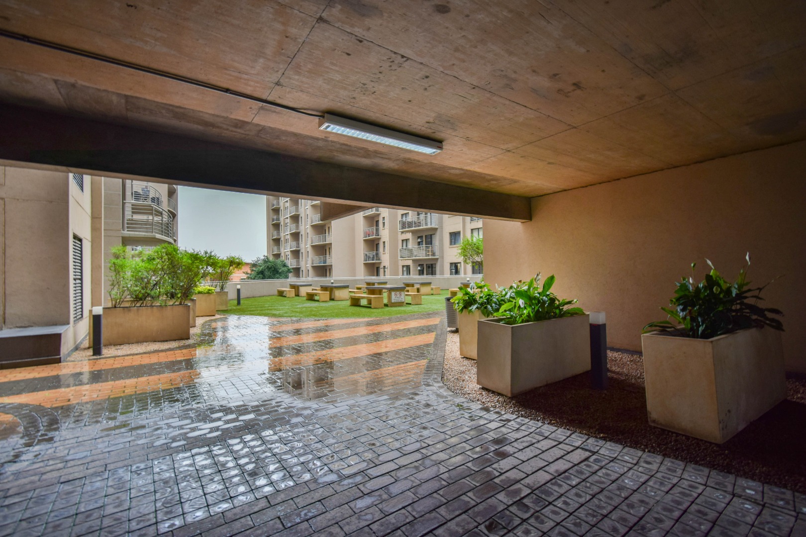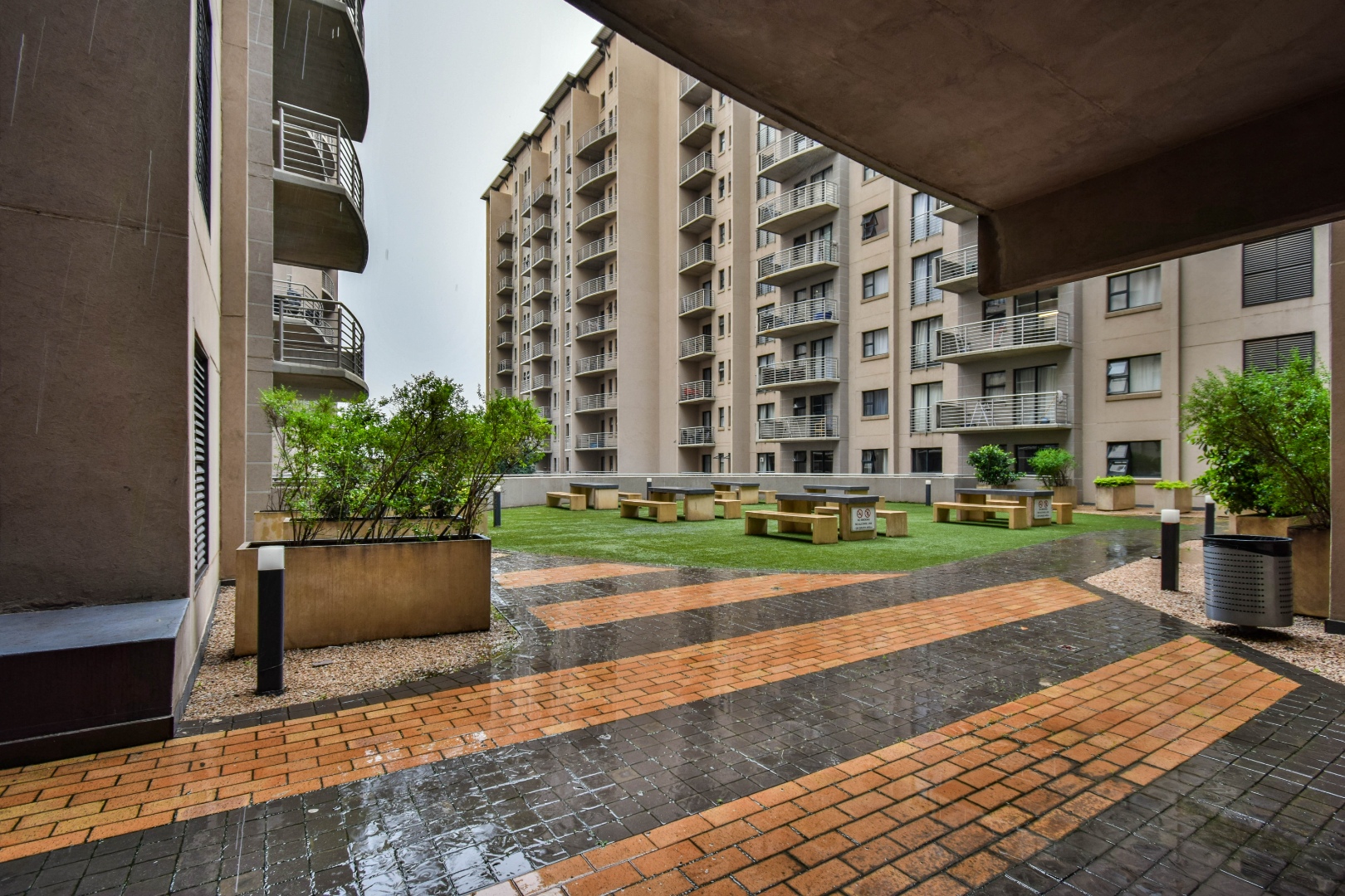This sophisticated residential offering presents a modern two-bedroom, two-bathroom apartment situated in Hatfield, Pretoria.