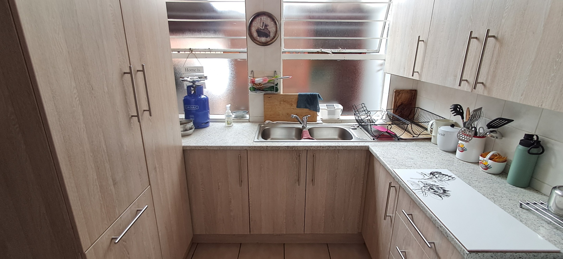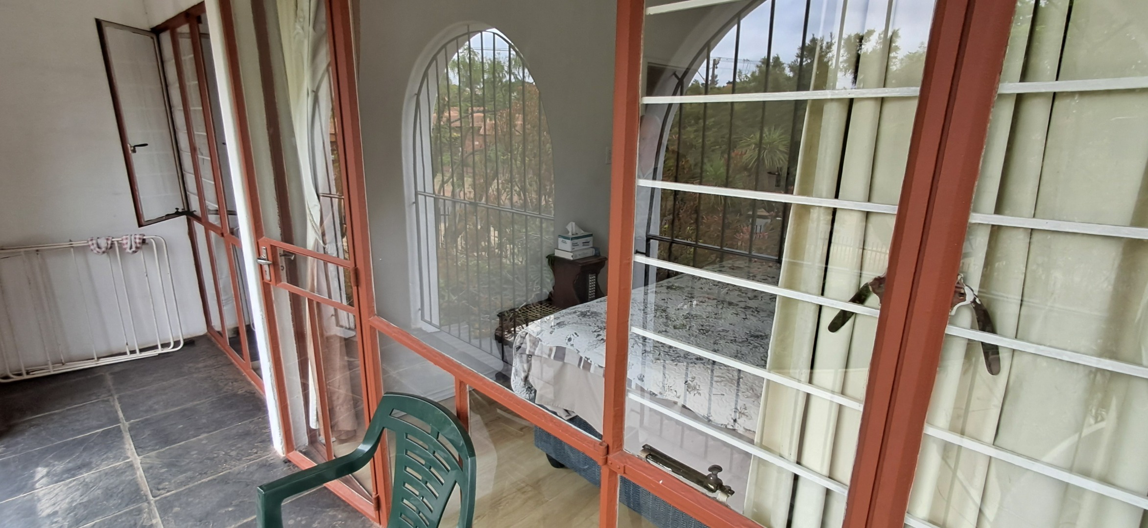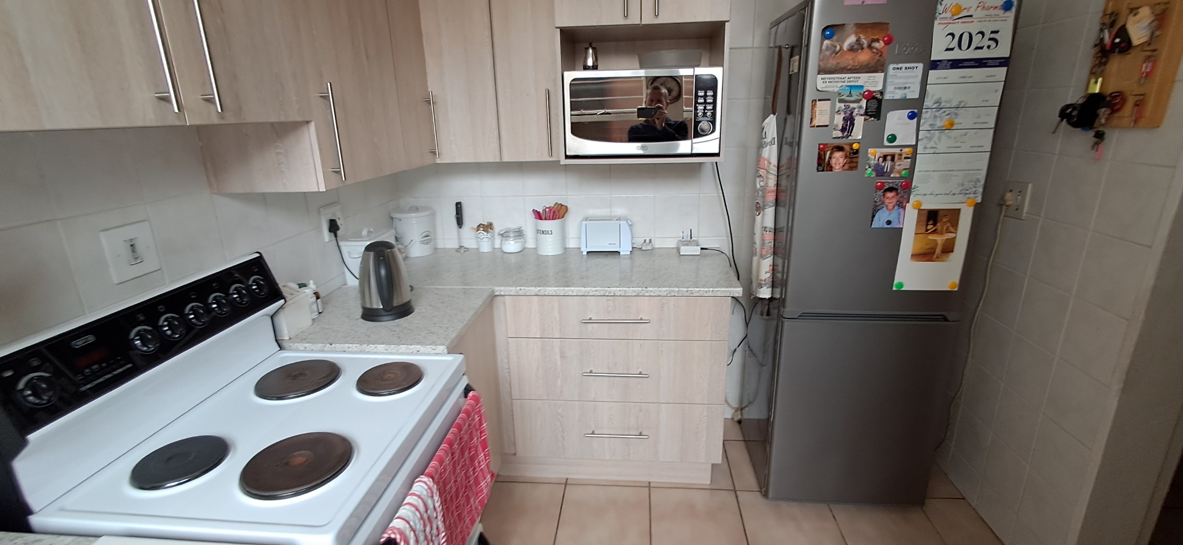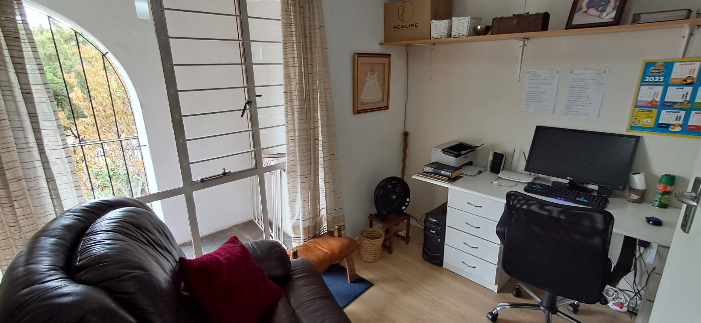 Upon arrival, the property presents a welcoming kerb appeal with its white exterior, accented by classic arched windows. Security is paramount, featuring burglar bars on all windows and doors, a security gate, and gated carports. The ground level provides convenient paved parking, including a dedicated garage and an additional parking bay, ensuring ample space for vehicles. The property is nestled within a security complex, benefiting from 24-hour CCTV security, an access gate, a security post within the area, and electric fencing, creating a well-protected environment.