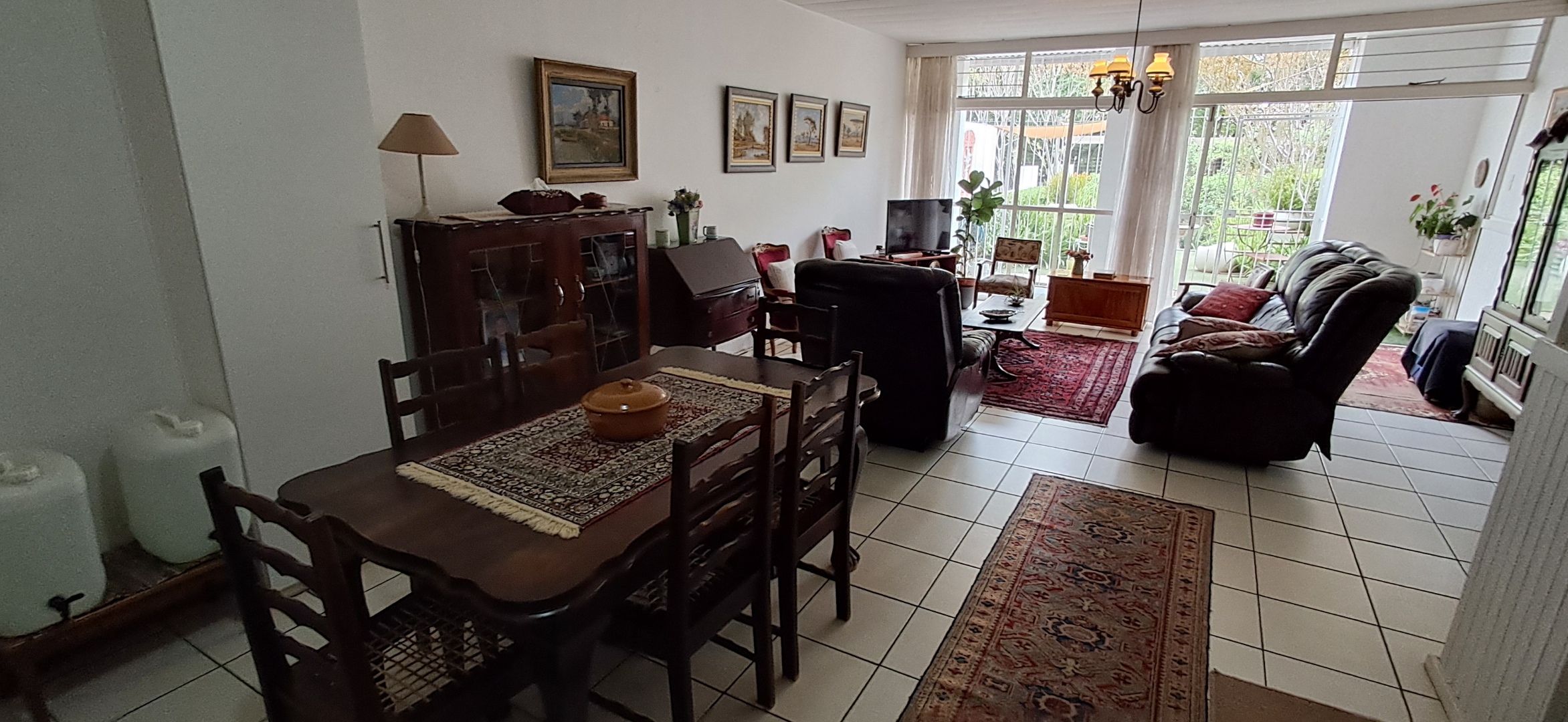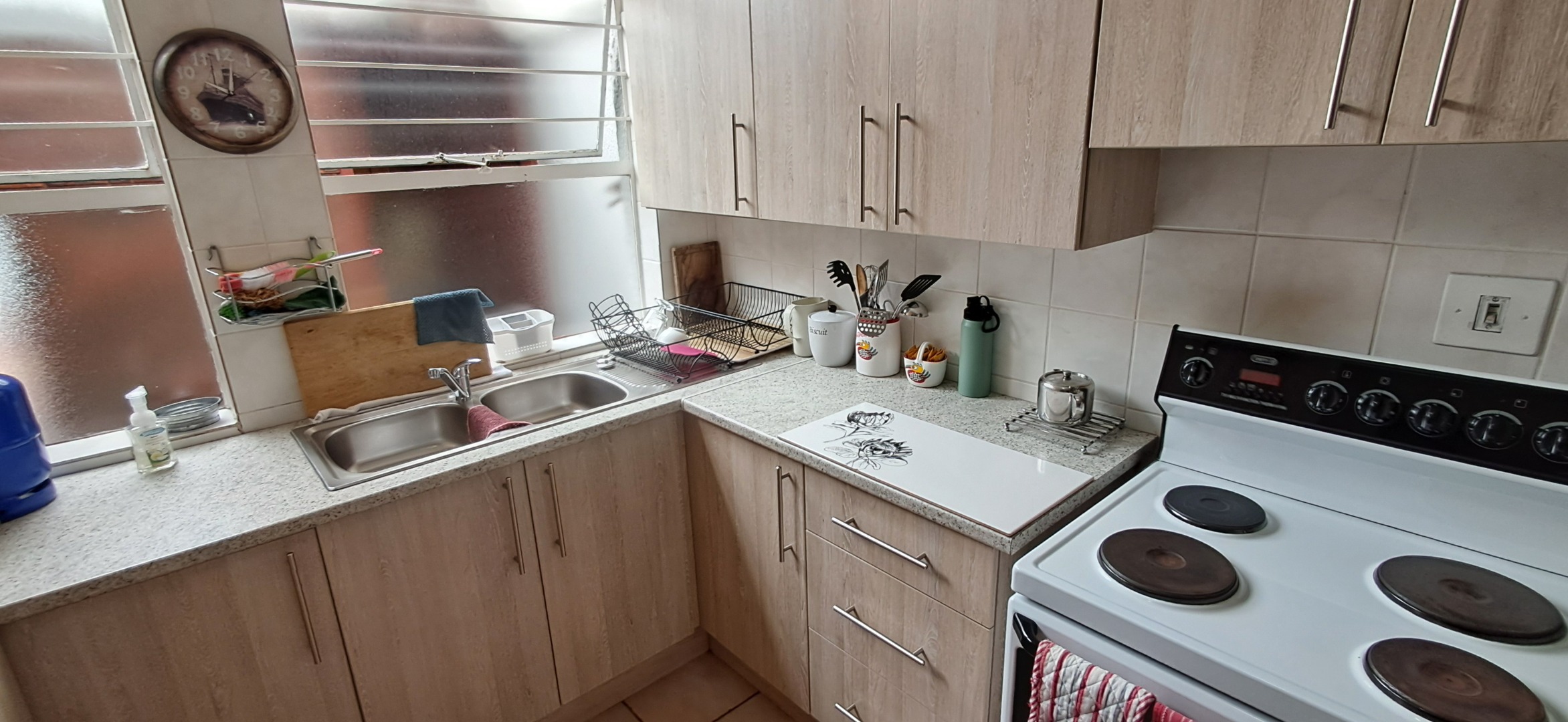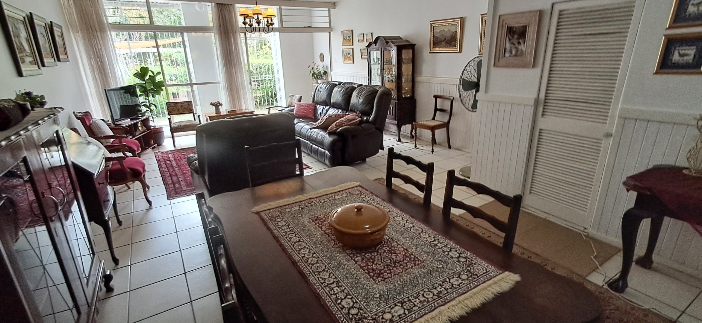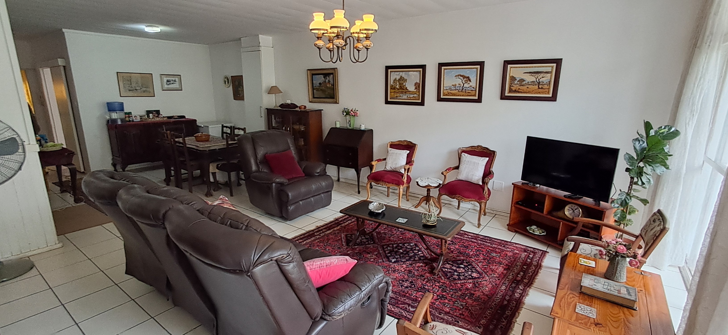 Upon arrival, the property presents a welcoming kerb appeal with its white exterior, accented by classic arched windows. Security is paramount, featuring burglar bars on all windows and doors, a security gate, and gated carports. The ground level provides convenient paved parking, including a dedicated garage and an additional parking bay, ensuring ample space for vehicles. The property is nestled within a security complex, benefiting from 24-hour CCTV security, an access gate, a security post within the area, and electric fencing, creating a well-protected environment.