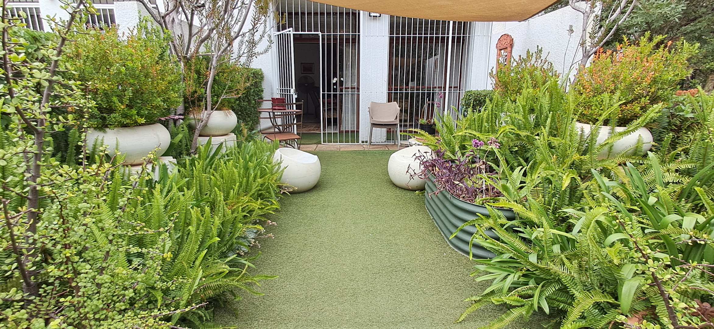 Outdoor living is a highlight, with a private patio and garden area that serves as a tranquil oasis. Adorned with lush greenery, diverse potted plants, and artificial turf, this low-maintenance space is perfect for outdoor relaxation. A shade sail provides comfort during sunny days, and a small outdoor seating area invites alfresco enjoyment. The property also features a balcony, offering additional outdoor access and views. Pets are allowed, making it a perfect home for animal lovers.