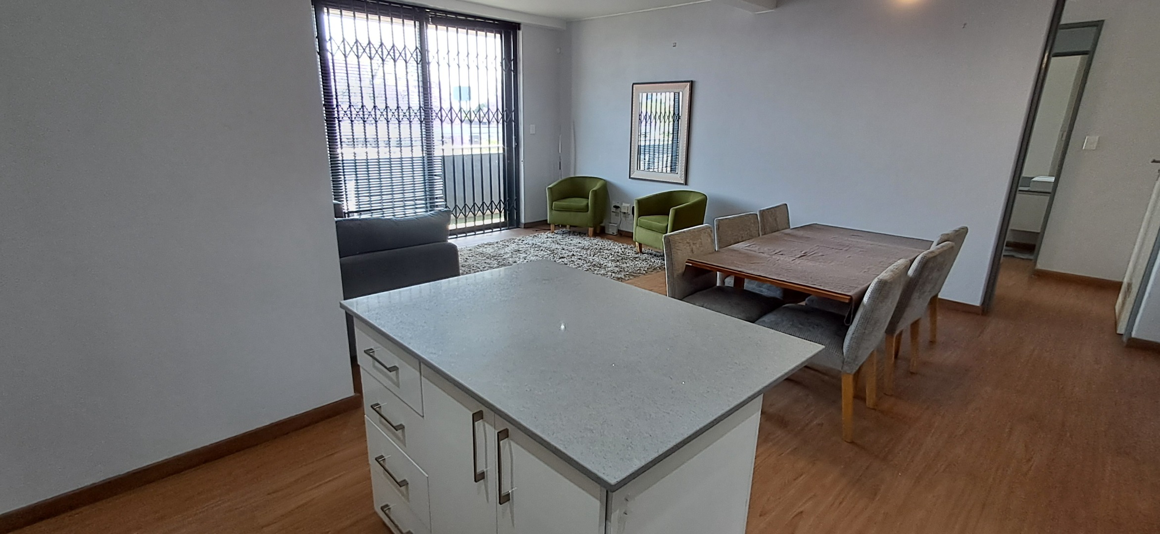 Both bedrooms are spacious and fitted with built-in cupboards. The one bedroom has an en-suite bathroom and the other bathroom services the rest of the apartment.