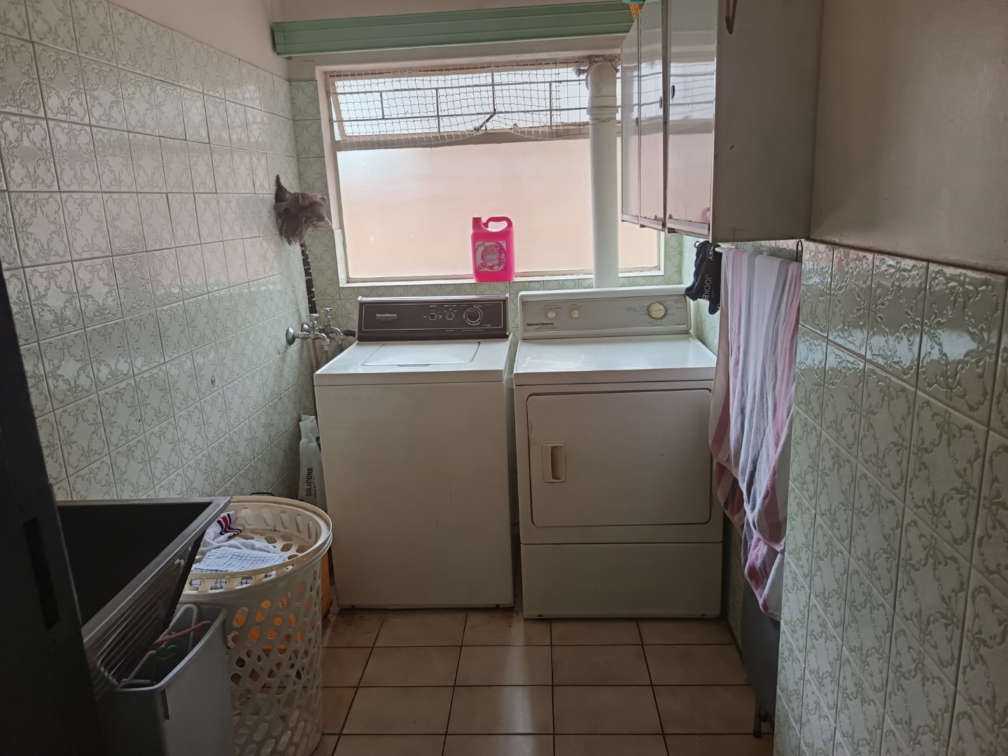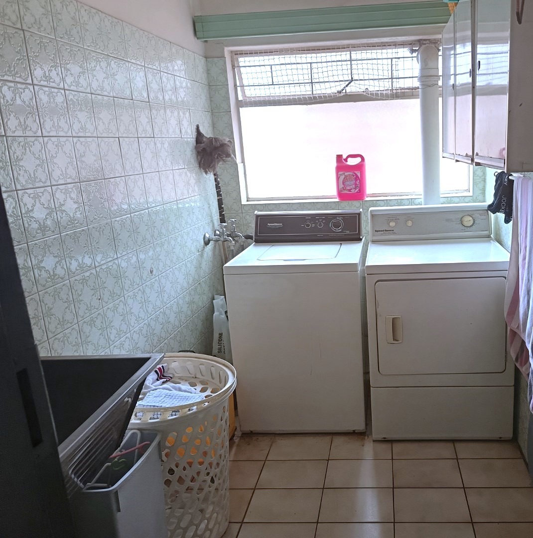 - Dining Room & Kitchen: The dining area flows seamlessly into the kitchen, which is equipped with ample cupboard space, a glass top stove, eye-level oven, and a large walk-in pantry. A separate scullery with a double basin leads to the backyard.
