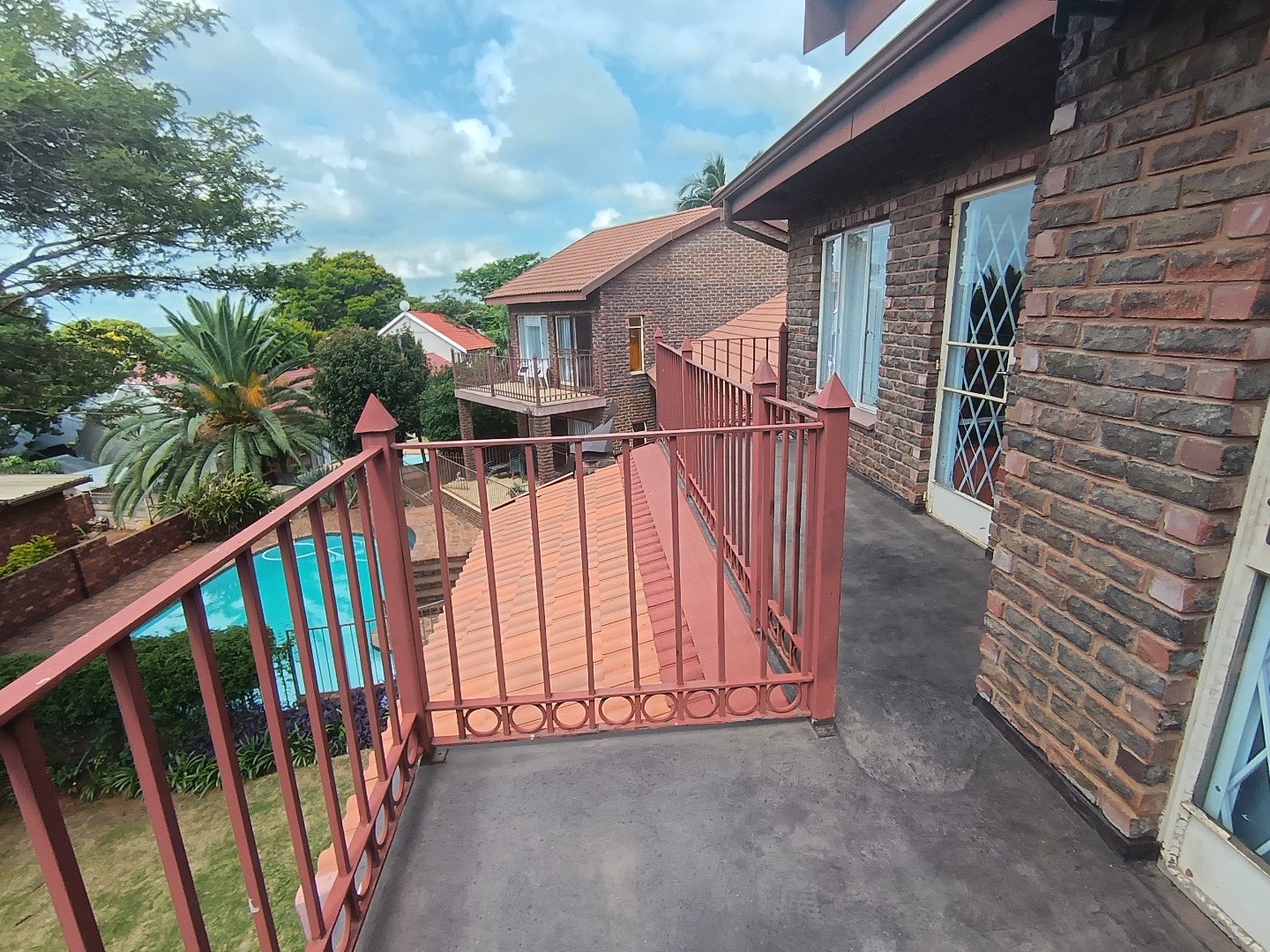 - 5 Bedrooms: Including 2 upstairs bedrooms with an en-suite, walk-in dressing room, and a full bathroom. Both bedrooms open onto a balcony overlooking the lush garden and swimming pool.