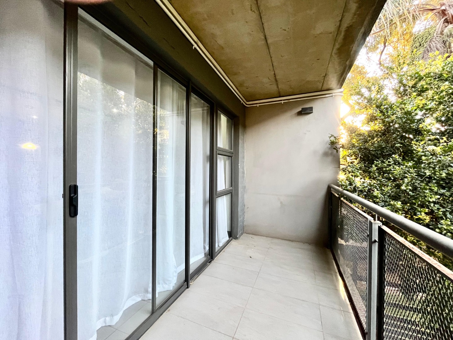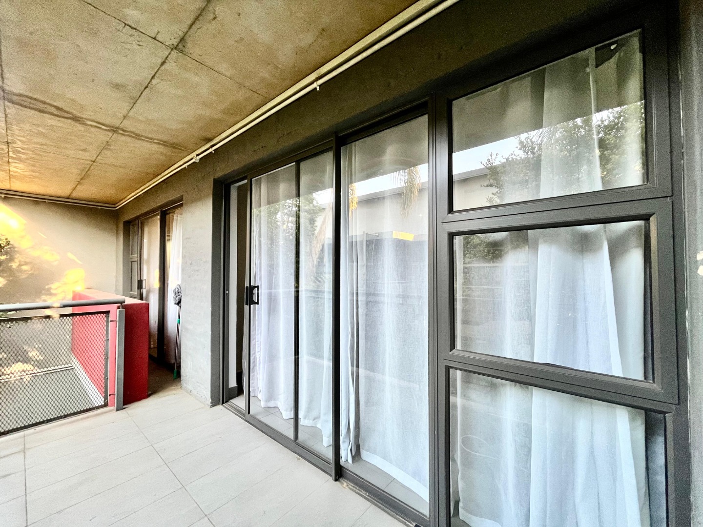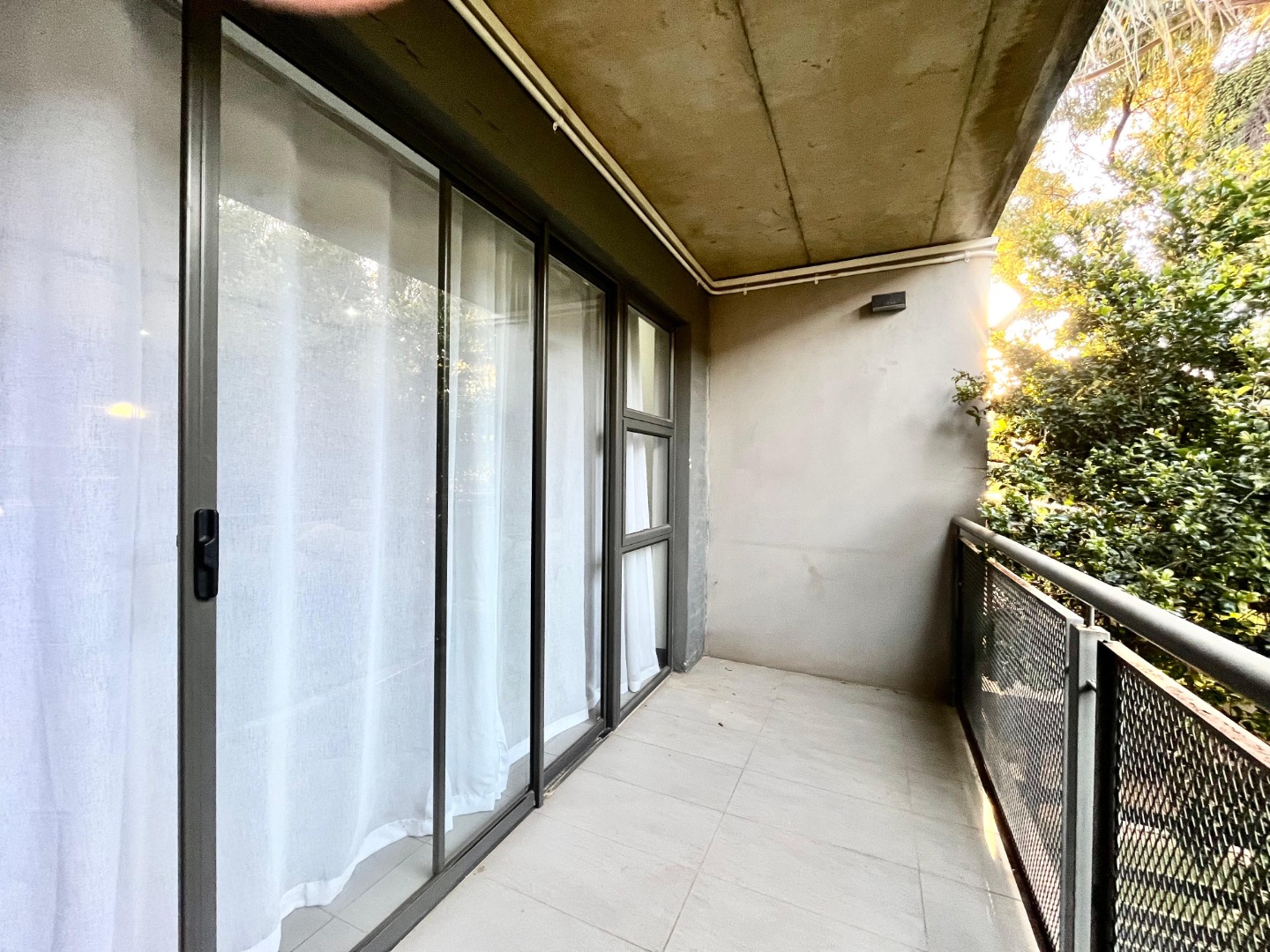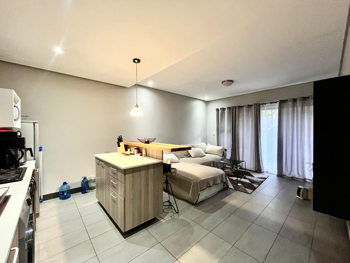 Experience contemporary urban living in this stylish 1-bedroom, 1-bathroom apartment, perfectly located in a secure complex in Menlo Park, Pretoria. Ideal for professionals or investors, this 58 sqm unit features an open-plan living area with tiled flooring, a built-in entertainment unit, and large glass doors opening to a private balcony. The modern kitchen includes integrated appliances—oven, microwave, fridge, and washing machine—with a handy breakfast bar. The bedroom offers built-in wardrobes, wood-look flooring, and balcony access. The en-suite bathroom boasts a walk-in shower and sleek finishes. The complex offers 24-hour security, CCTV, electric fencing, fibre readiness, and a dedicated parking bay.