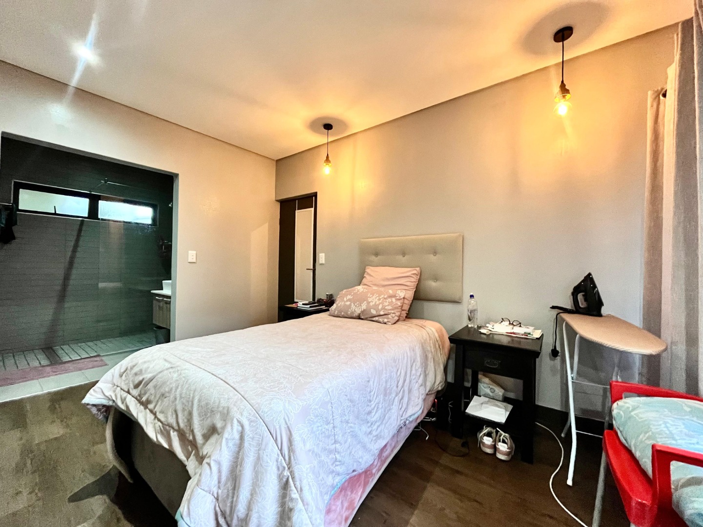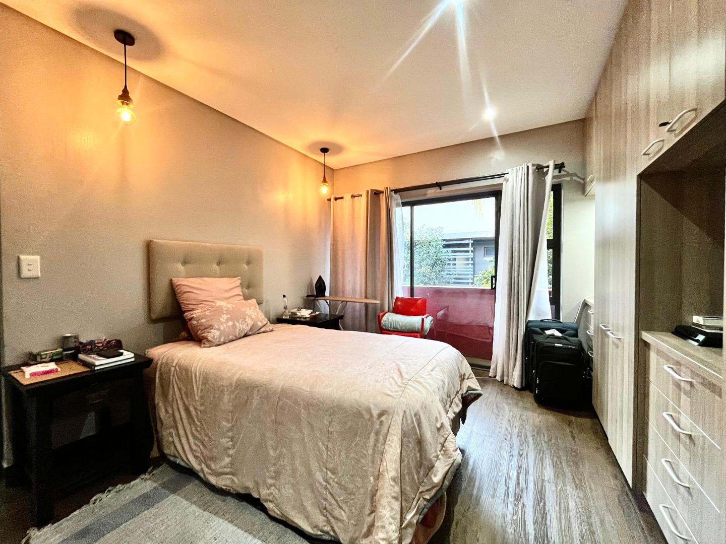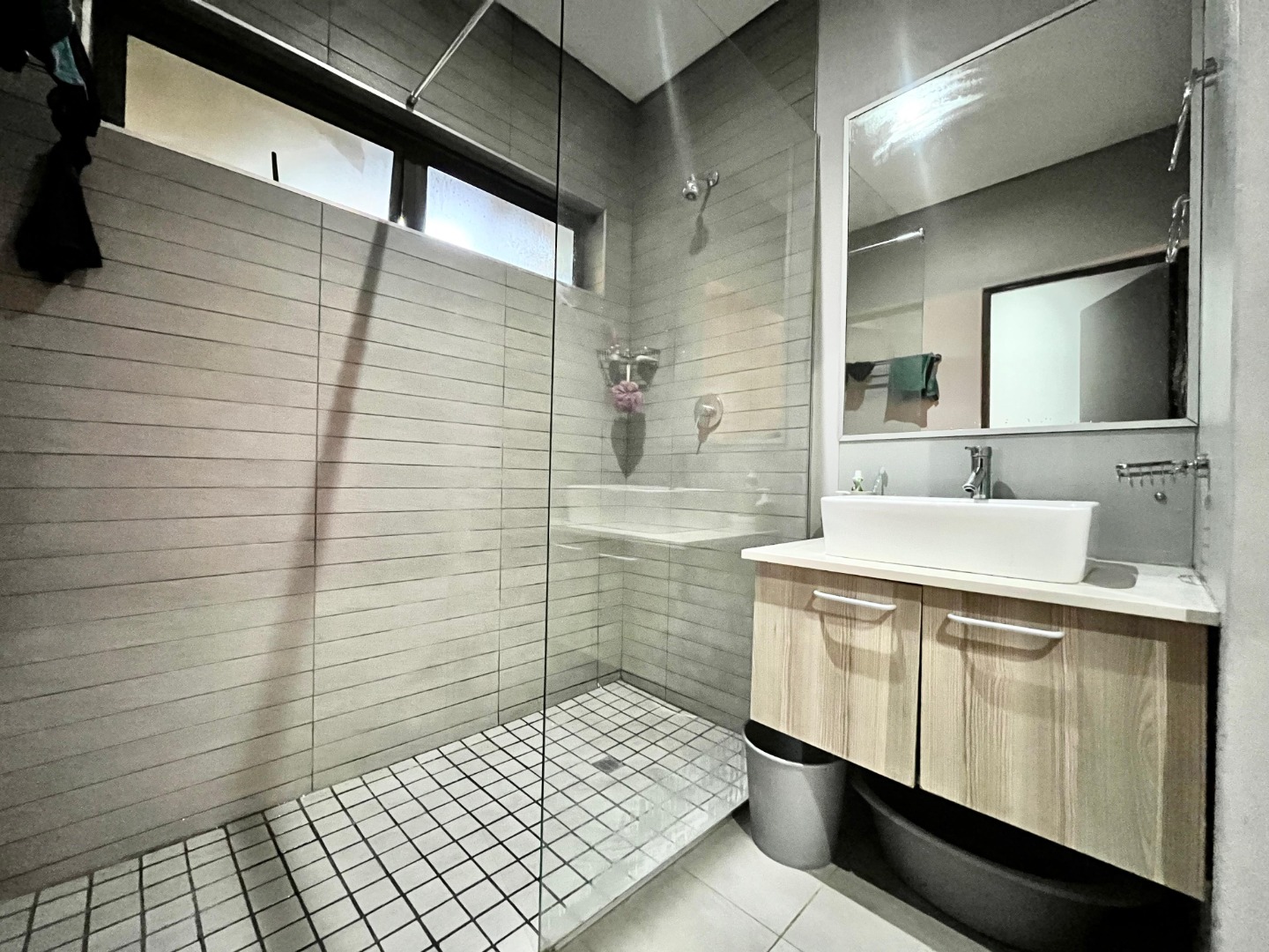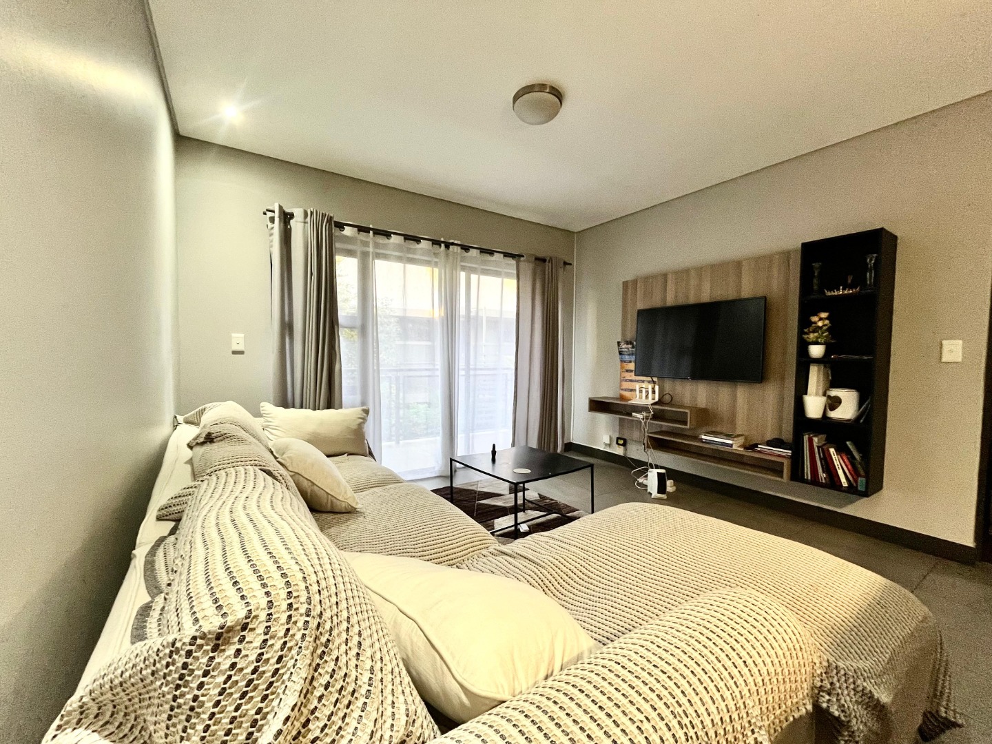Experience contemporary urban living in this stylish 1-bedroom, 1-bathroom apartment, perfectly located in a secure complex in Menlo Park, Pretoria. Ideal for professionals or investors, this 58 sqm unit features an open-plan living area with tiled flooring, a built-in entertainment unit, and large glass doors opening to a private balcony. The modern kitchen includes integrated appliances—oven, microwave, fridge, and washing machine—with a handy breakfast bar. The bedroom offers built-in wardrobes, wood-look flooring, and balcony access. The en-suite bathroom boasts a walk-in shower and sleek finishes. The complex offers 24-hour security, CCTV, electric fencing, fibre readiness, and a dedicated parking bay.