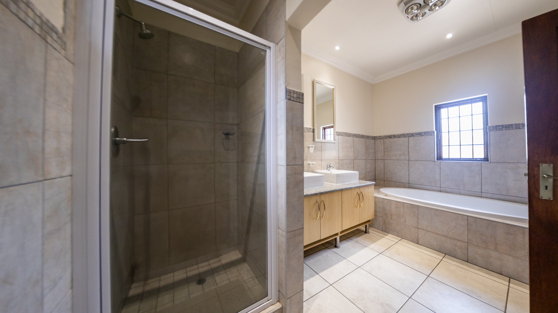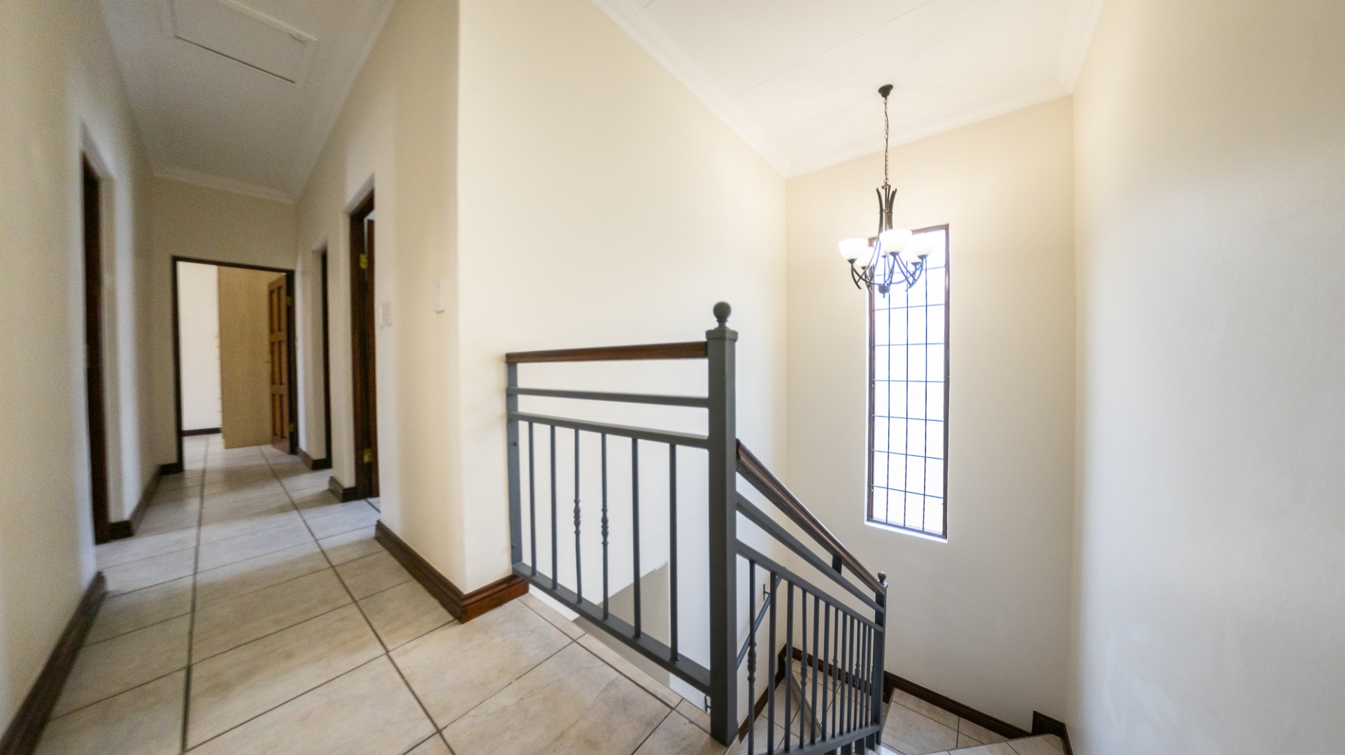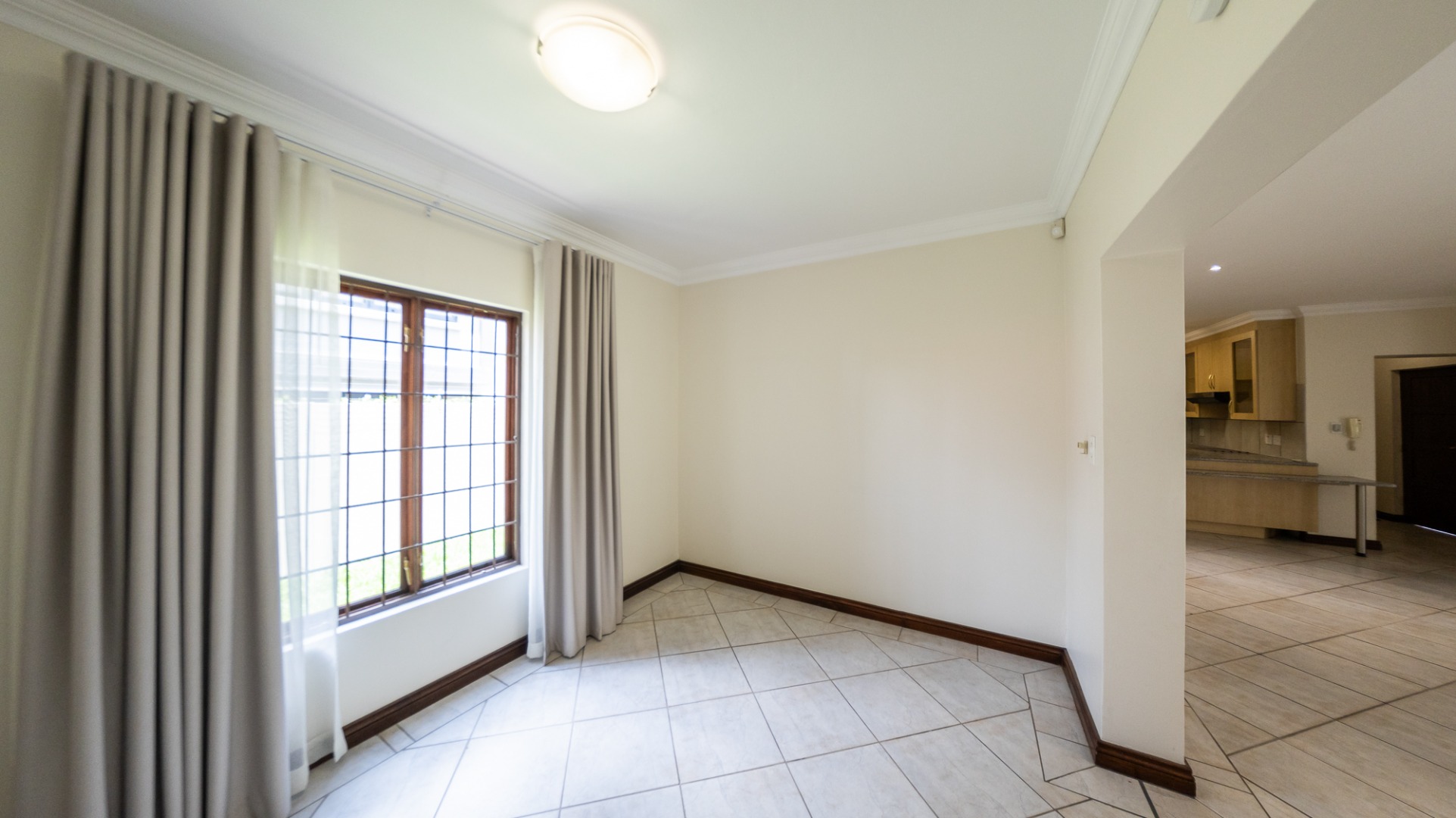 Discover modern living in this appealing 4-bedroom, 2.5-bathroom residential sale property, ideally situated within a secure complex and nestled in a tranquil cul-de-sac. The home immediately impresses with its contemporary design, featuring attractive stone cladding accents and a welcoming covered front entrance. A paved driveway leads to a convenient double garage, offering ample parking and enhancing the property's kerb appeal. Step inside to an inviting entrance hall that flows seamlessly into the open-plan living areas. This spacious home boasts two comfortable lounges, including a dedicated family TV room, and a well-appointed dining area, creating an ideal setting for family meals and entertainment. Air conditioning ensures comfort throughout the year. The residence offers four generously sized bedrooms, with one featuring a private en-suite bathroom, and a total of 2.5 bathrooms catering efficiently to household needs. Sliding doors provide access to a balcony and a deck, perfect for outdoor enjoyment. Security is paramount in this complex, offering peace of mind with features such as 24-hour security, CCTV, an access gate, security post, electric fencing, and an alarm system. The property itself is totally walled and includes burglar bars and security gates for enhanced safety. Sustainability is addressed with a solar geyser, contributing to energy efficiency. Fibre connectivity is available, ensuring high-speed internet access. Pets are allowed, making this a truly family-friendly environment. Key Features: * 4 Bedrooms, 2.5 Bathrooms (1 En-suite) * 2 Lounges (including Family TV Room) & Dining Area * Double Garage & Paved Driveway * Modern Design with Stone Cladding * Secure Complex in Cul-de-sac * Solar Geyser & Air Conditioning * Fibre Ready & Pet-Friendly * Balcony and Deck
