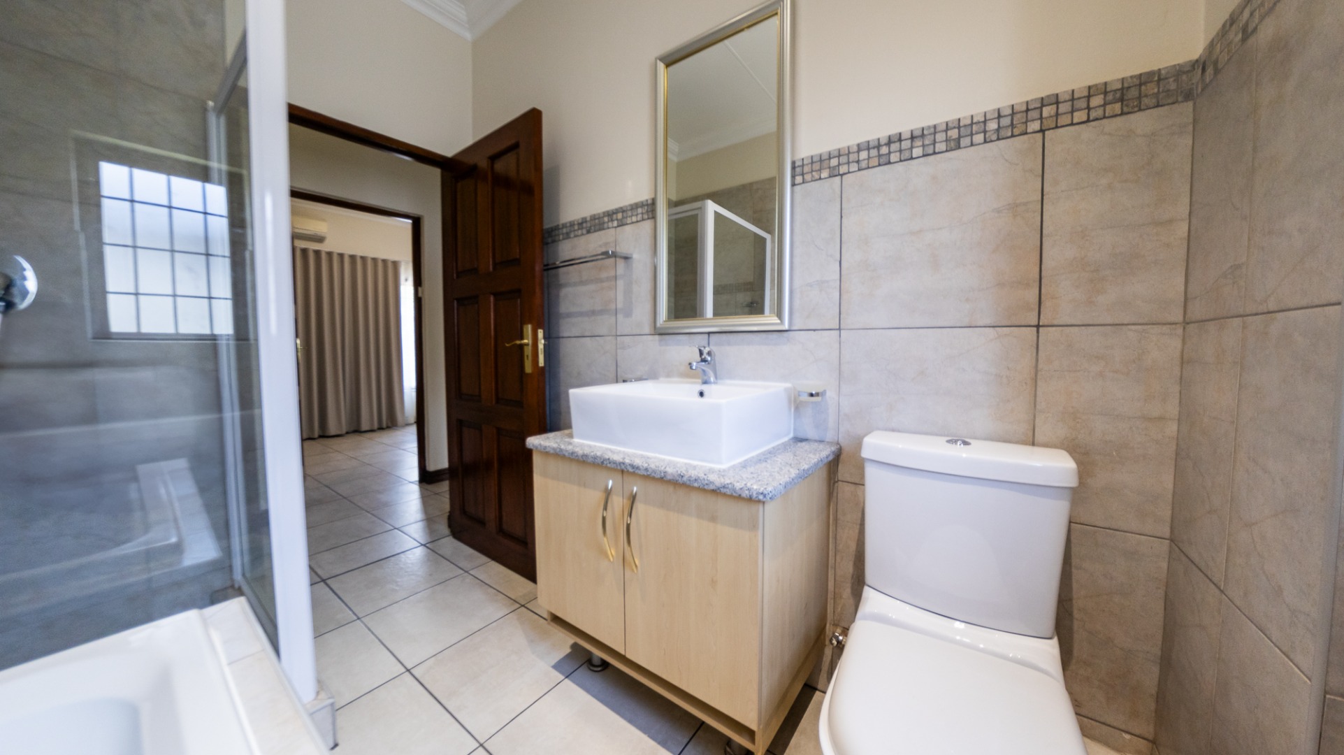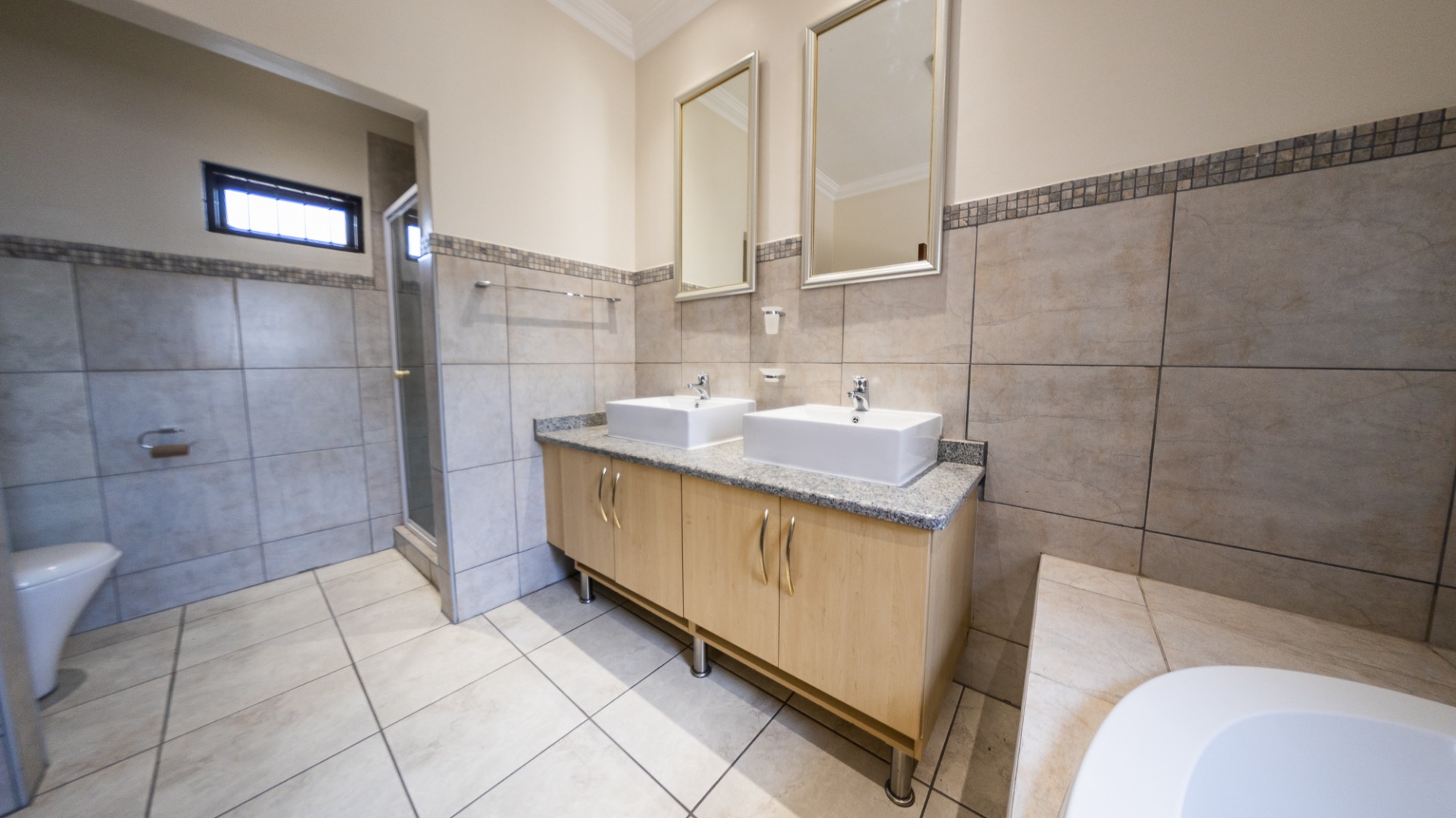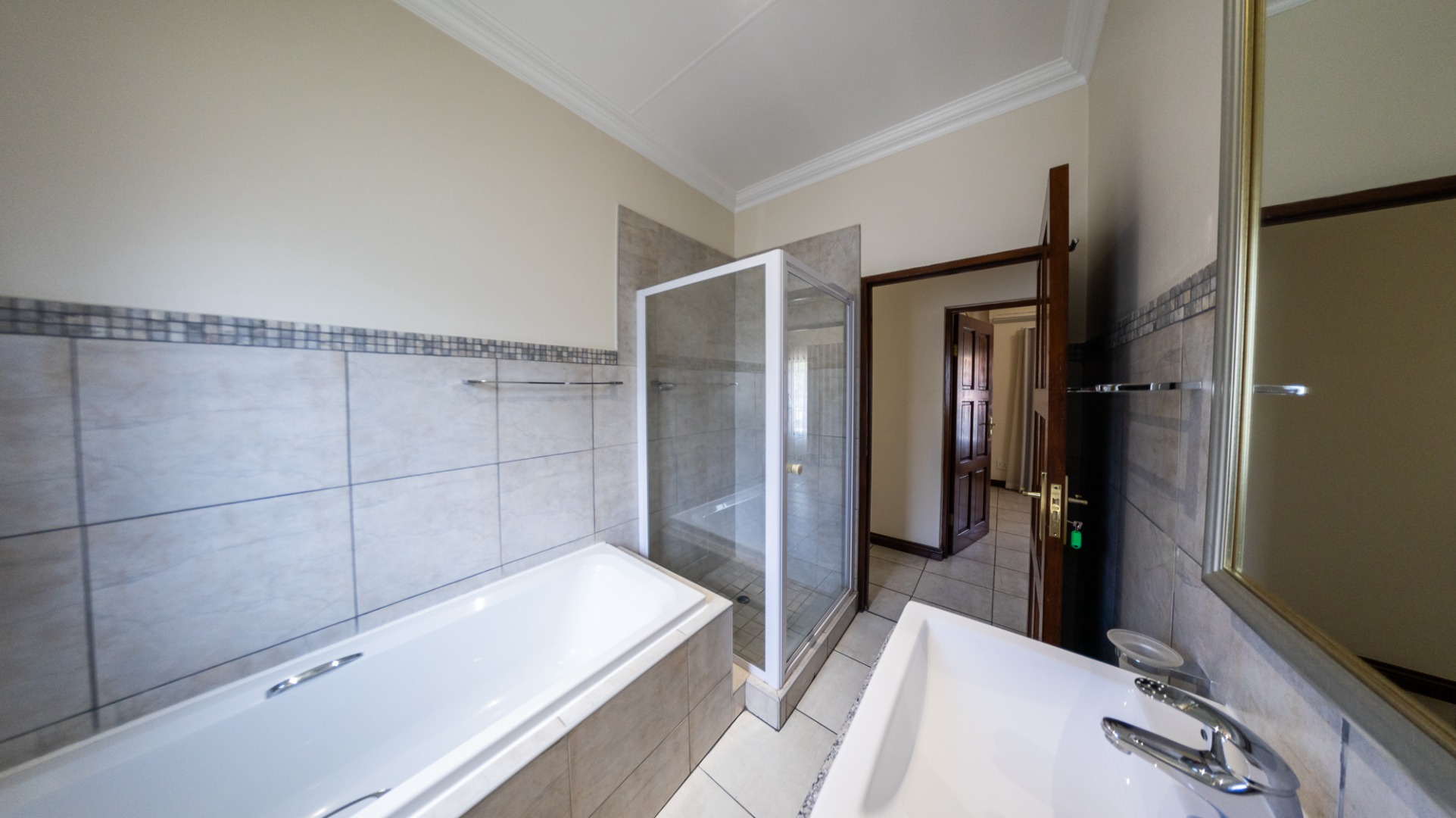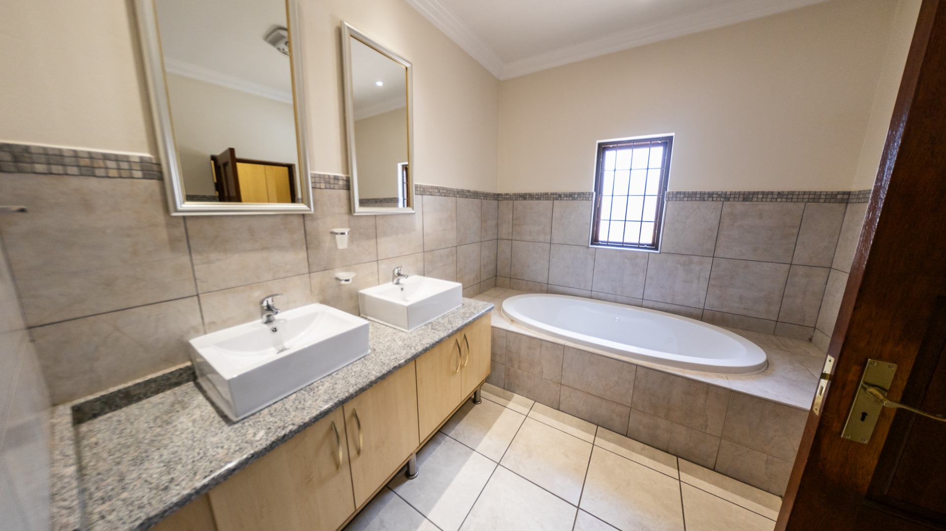 Discover modern living in this appealing 4-bedroom, 2.5-bathroom residential sale property, ideally situated within a secure complex and nestled in a tranquil cul-de-sac. The home immediately impresses with its contemporary design, featuring attractive stone cladding accents and a welcoming covered front entrance. A paved driveway leads to a convenient double garage, offering ample parking and enhancing the property's kerb appeal. Step inside to an inviting entrance hall that flows seamlessly into the open-plan living areas. This spacious home boasts two comfortable lounges, including a dedicated family TV room, and a well-appointed dining area, creating an ideal setting for family meals and entertainment. Air conditioning ensures comfort throughout the year. The residence offers four generously sized bedrooms, with one featuring a private en-suite bathroom, and a total of 2.5 bathrooms catering efficiently to household needs. Sliding doors provide access to a balcony and a deck, perfect for outdoor enjoyment. Security is paramount in this complex, offering peace of mind with features such as 24-hour security, CCTV, an access gate, security post, electric fencing, and an alarm system. The property itself is totally walled and includes burglar bars and security gates for enhanced safety. Sustainability is addressed with a solar geyser, contributing to energy efficiency. Fibre connectivity is available, ensuring high-speed internet access. Pets are allowed, making this a truly family-friendly environment. Key Features: * 4 Bedrooms, 2.5 Bathrooms (1 En-suite) * 2 Lounges (including Family TV Room) & Dining Area * Double Garage & Paved Driveway * Modern Design with Stone Cladding * Secure Complex in Cul-de-sac * Solar Geyser & Air Conditioning * Fibre Ready & Pet-Friendly * Balcony and Deck