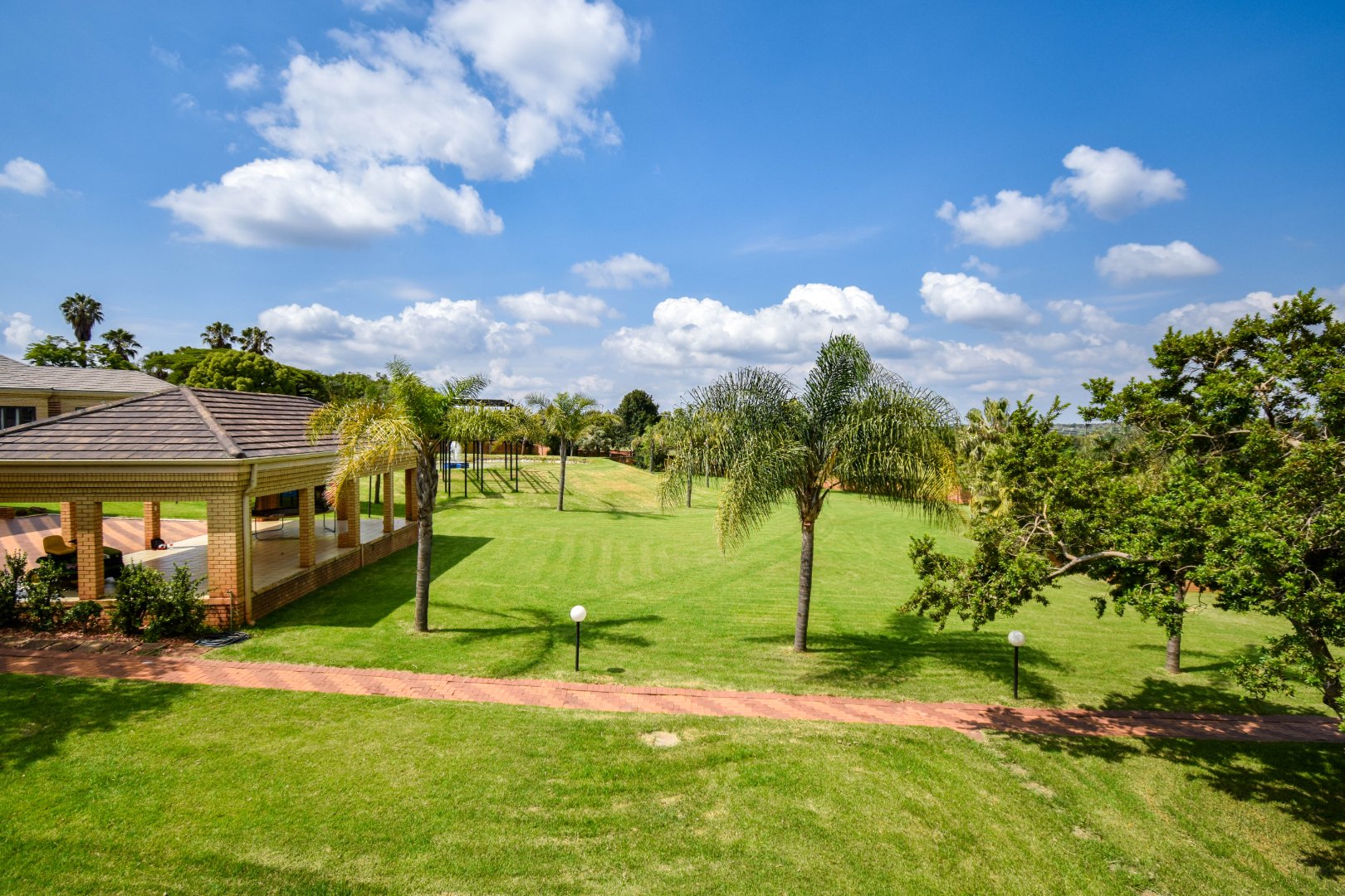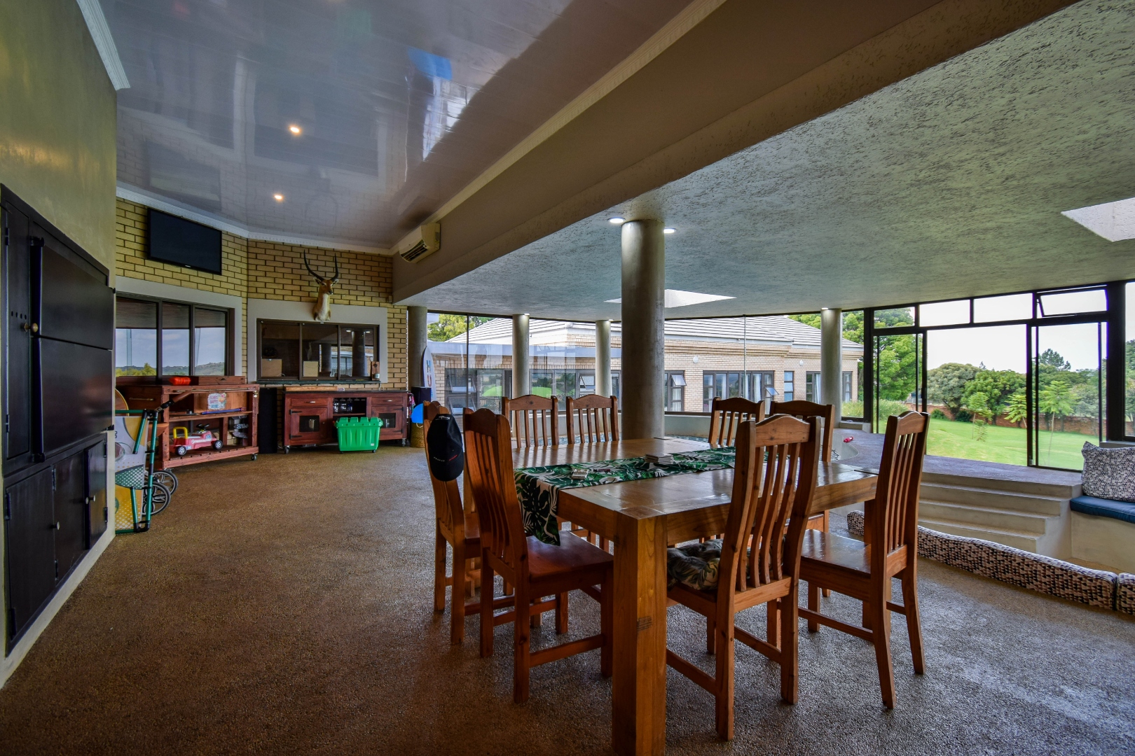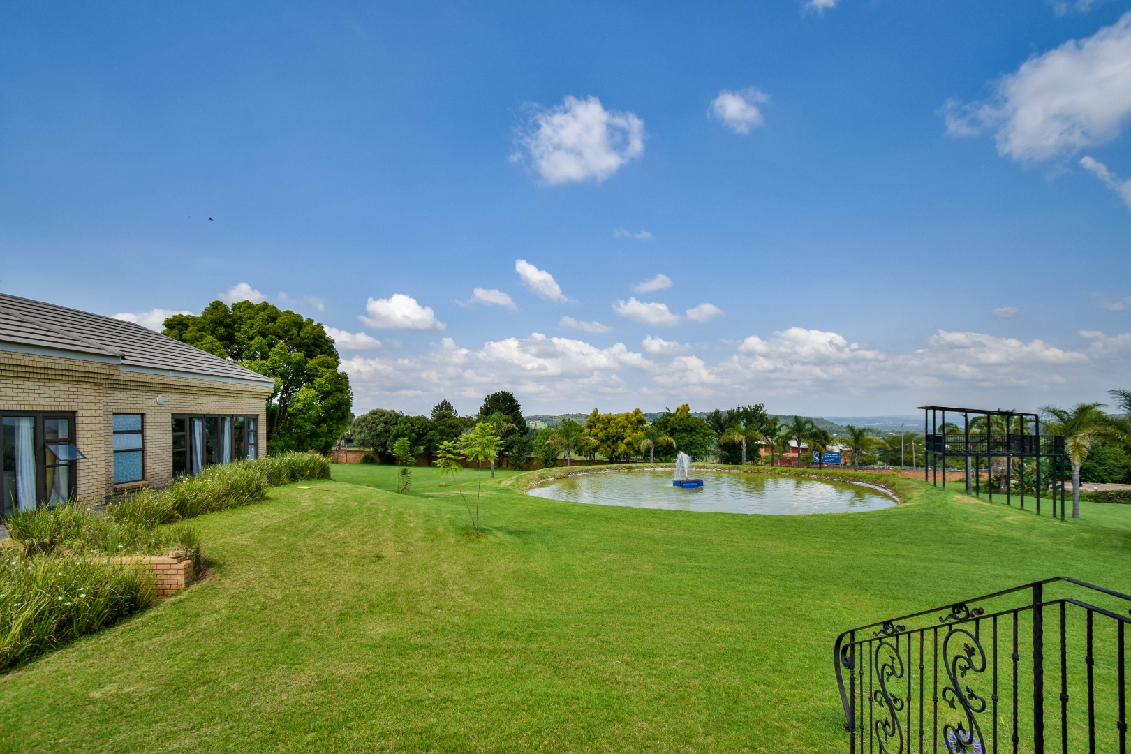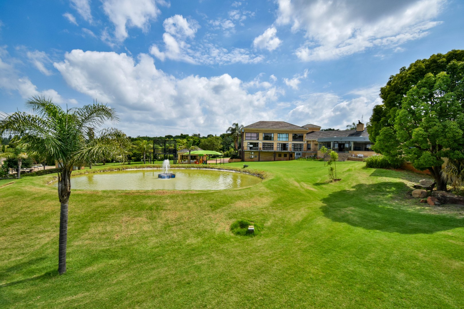 Additional features include five garages, four carports constructed with brick walls, slab flooring and tiled roofing measuring approximately 102 square metres, domestic accommodation, a strong borehole with filtration system, irrigation, a large dam with established koi fish and a generator, allowing for largely independent living. The outside buildings and tennis house measure approximately 104 square metres.
