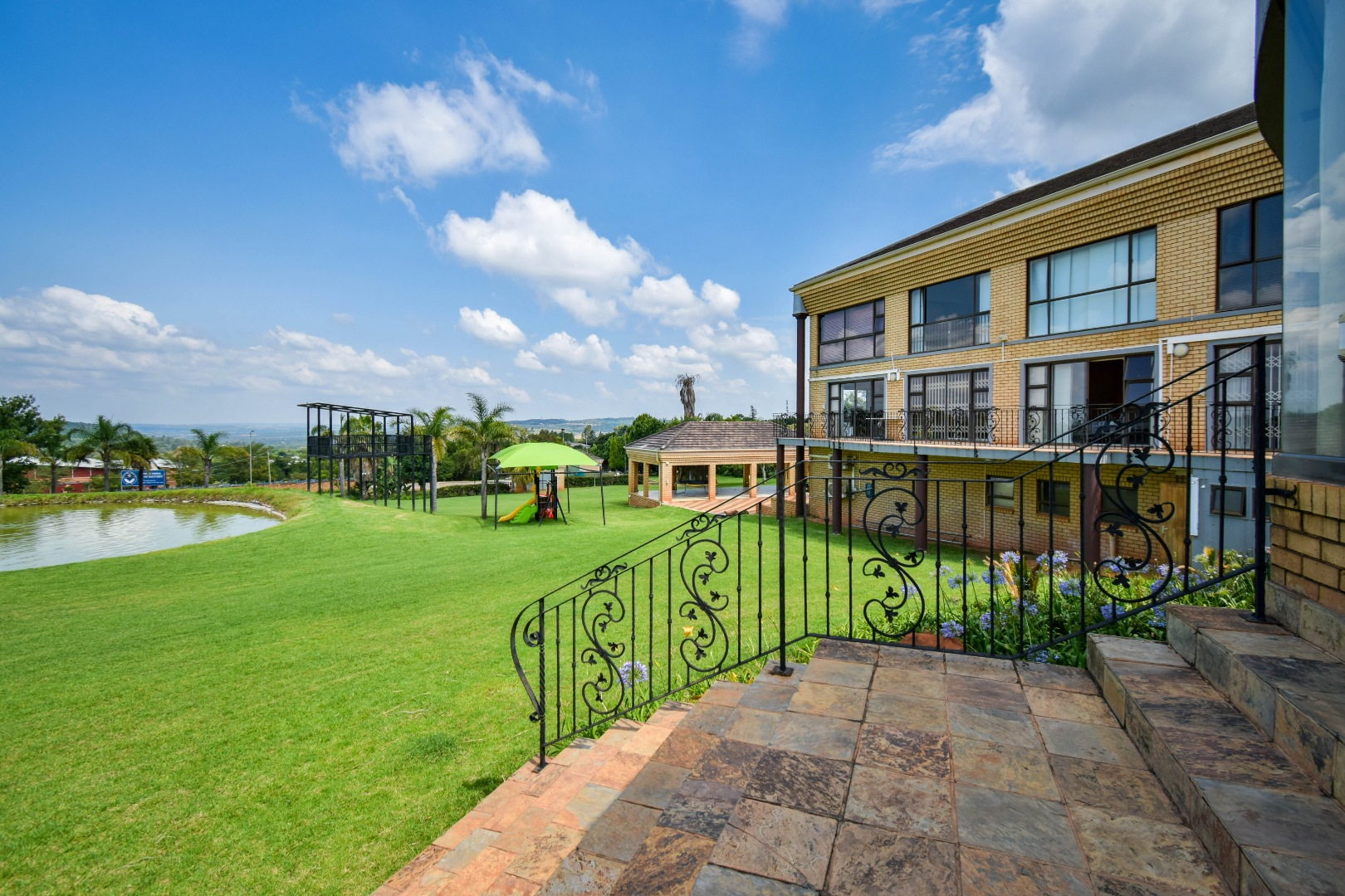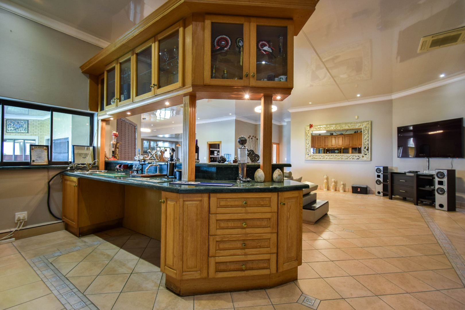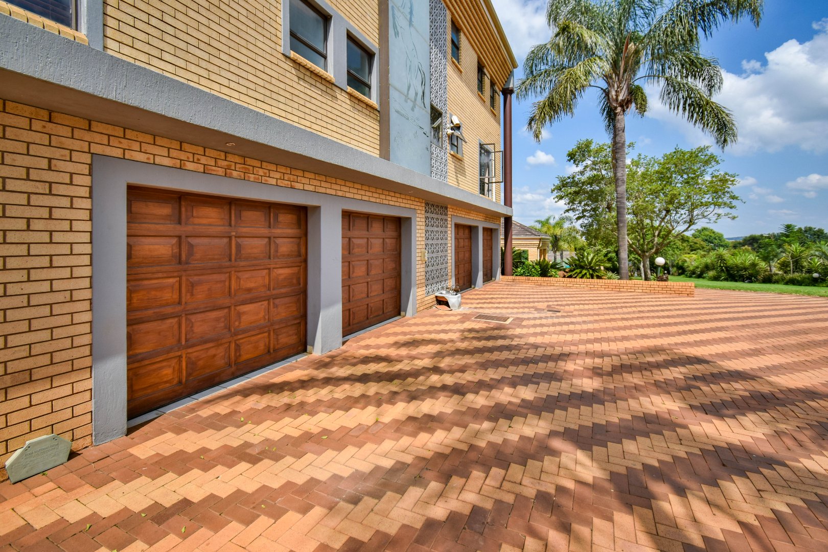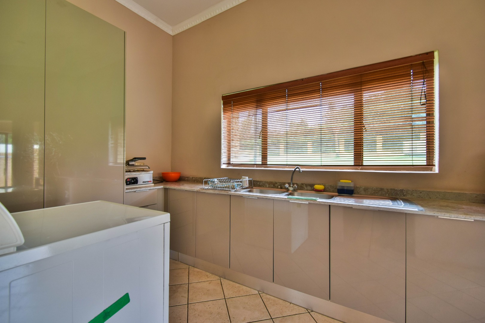 Additional features include five garages, four carports constructed with brick walls, slab flooring and tiled roofing measuring approximately 102 square metres, domestic accommodation, a strong borehole with filtration system, irrigation, a large dam with established koi fish and a generator, allowing for largely independent living. The outside buildings and tennis house measure approximately 104 square metres.