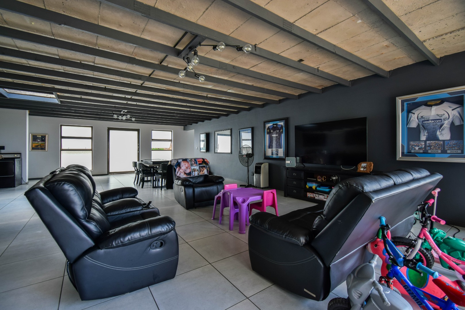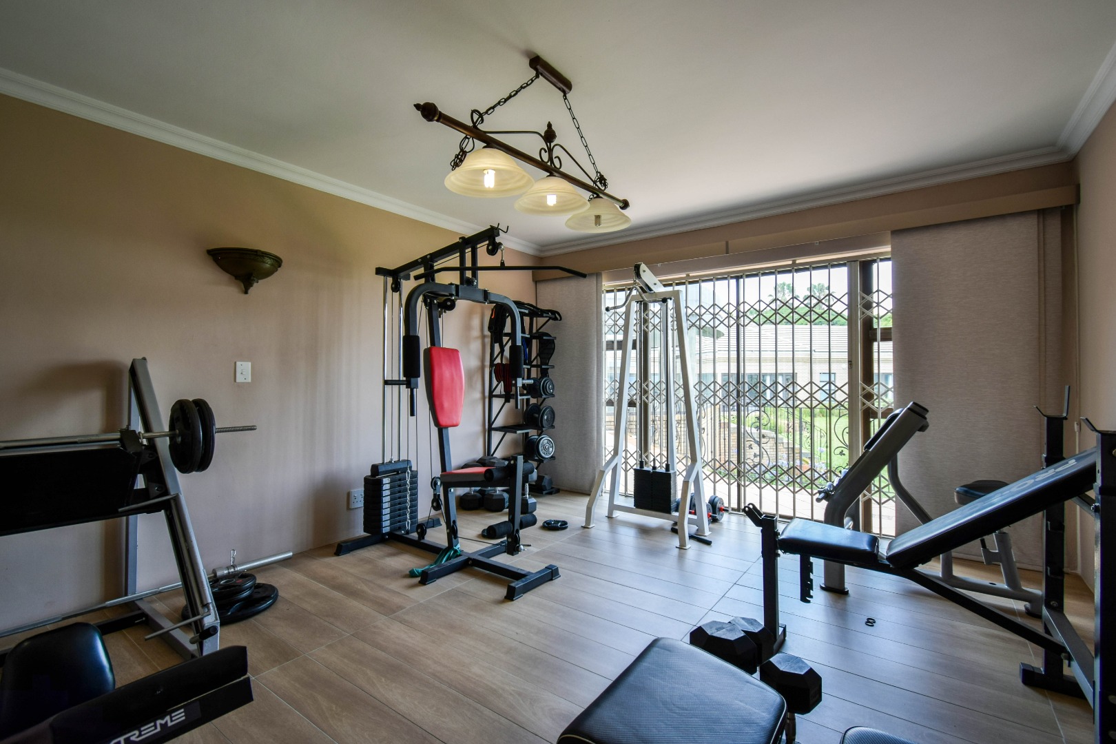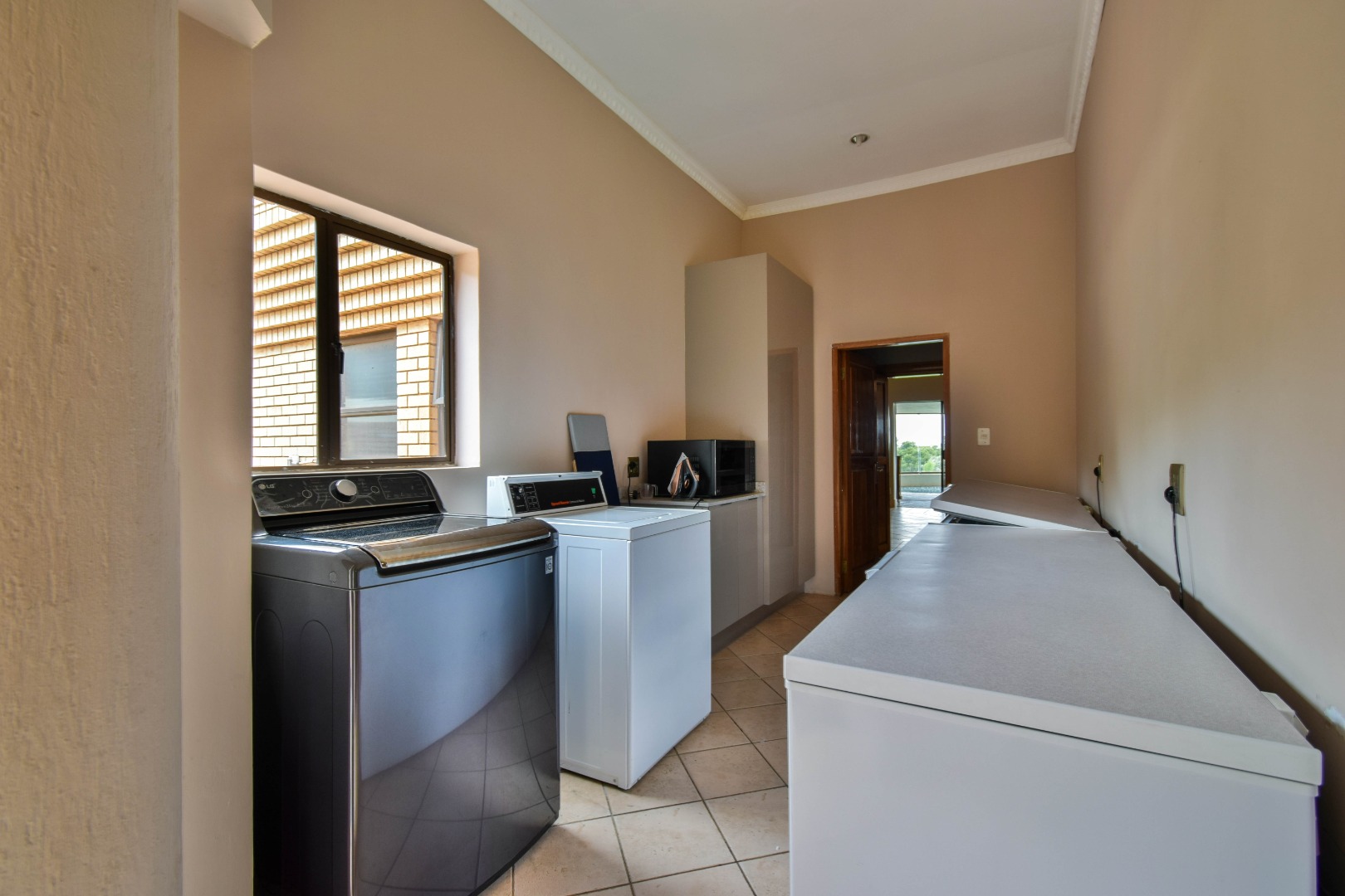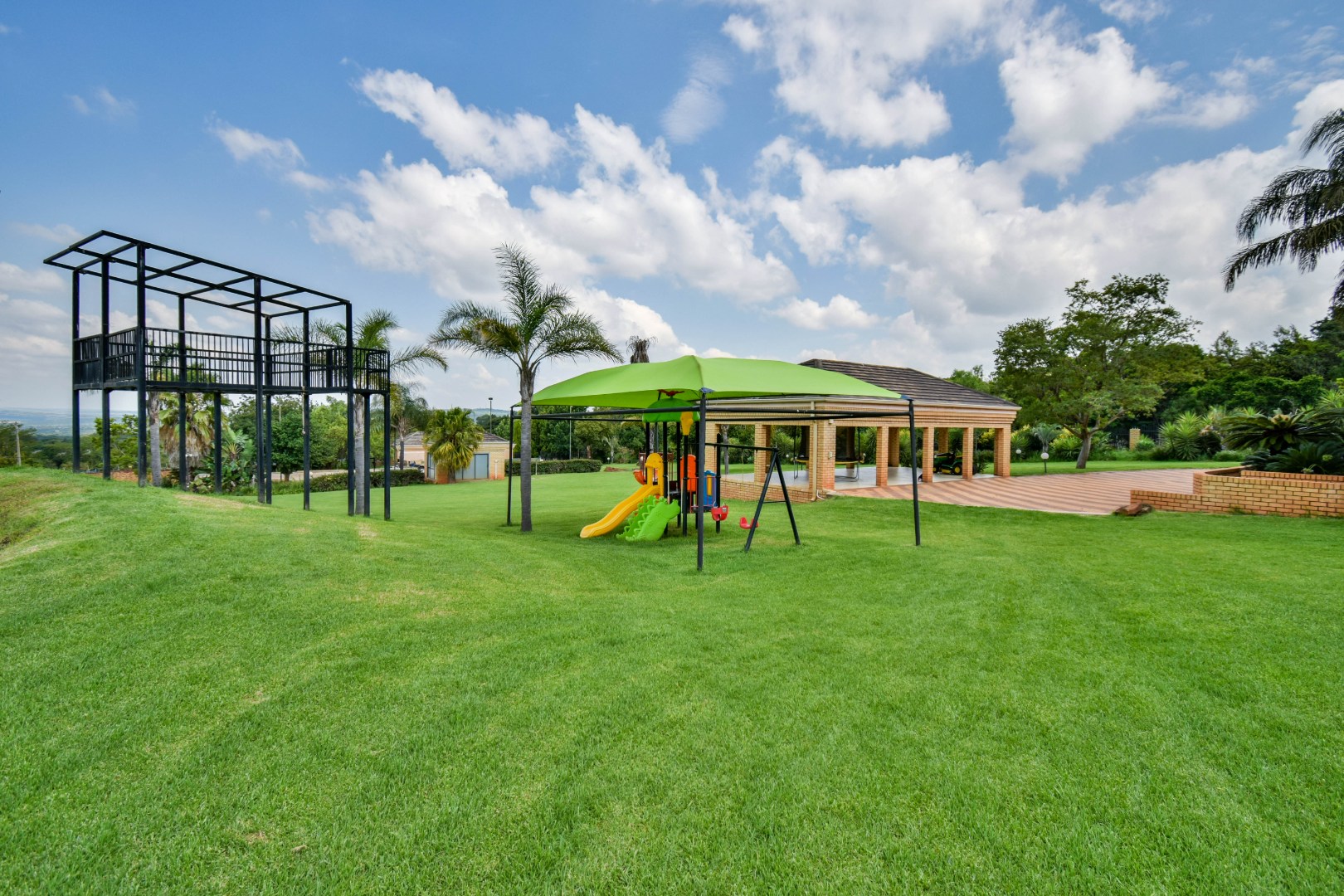 Additional features include five garages, four carports constructed with brick walls, slab flooring and tiled roofing measuring approximately 102 square metres, domestic accommodation, a strong borehole with filtration system, irrigation, a large dam with established koi fish and a generator, allowing for largely independent living. The outside buildings and tennis house measure approximately 104 square metres.