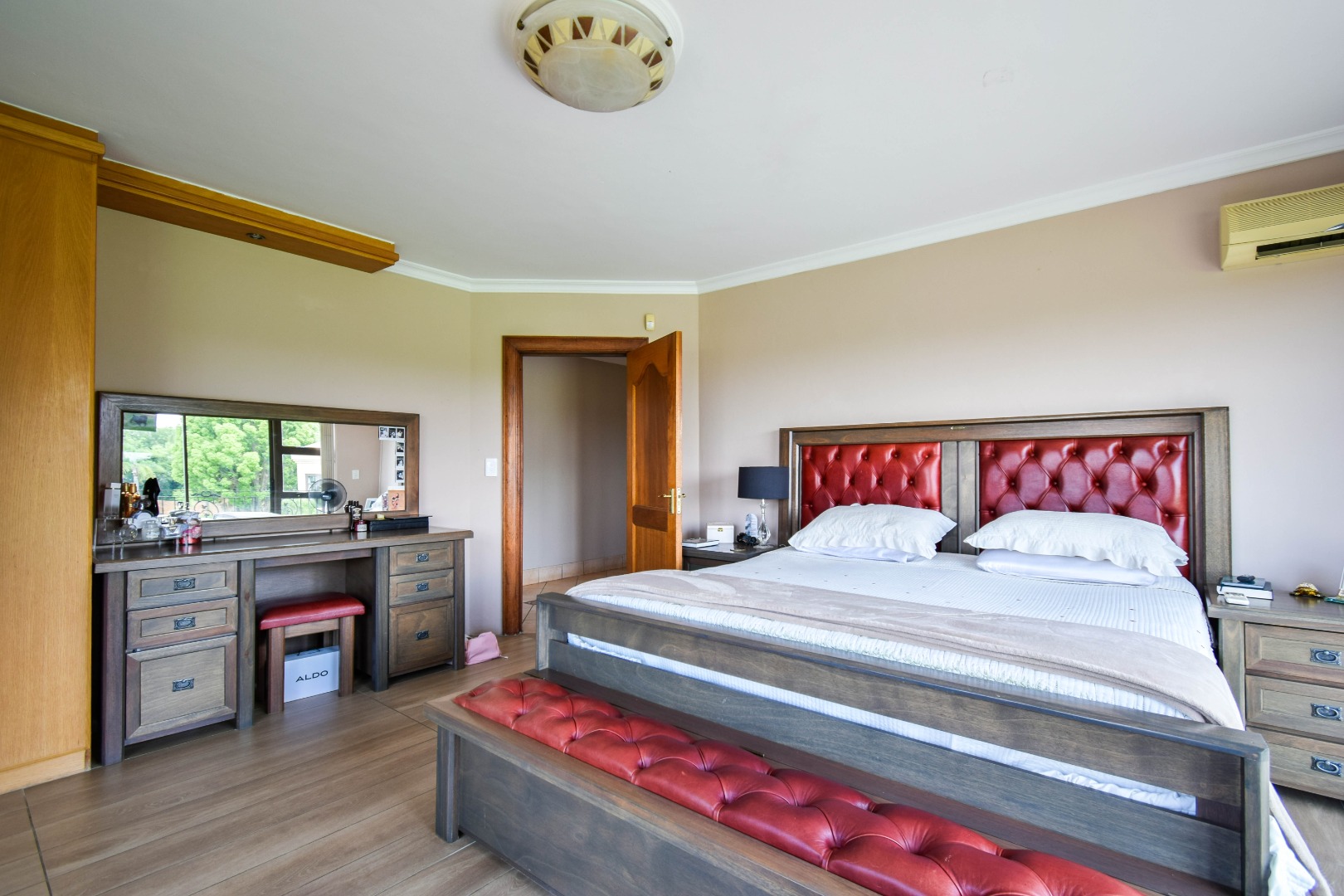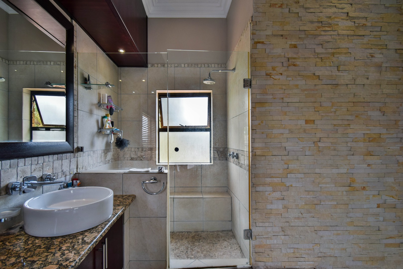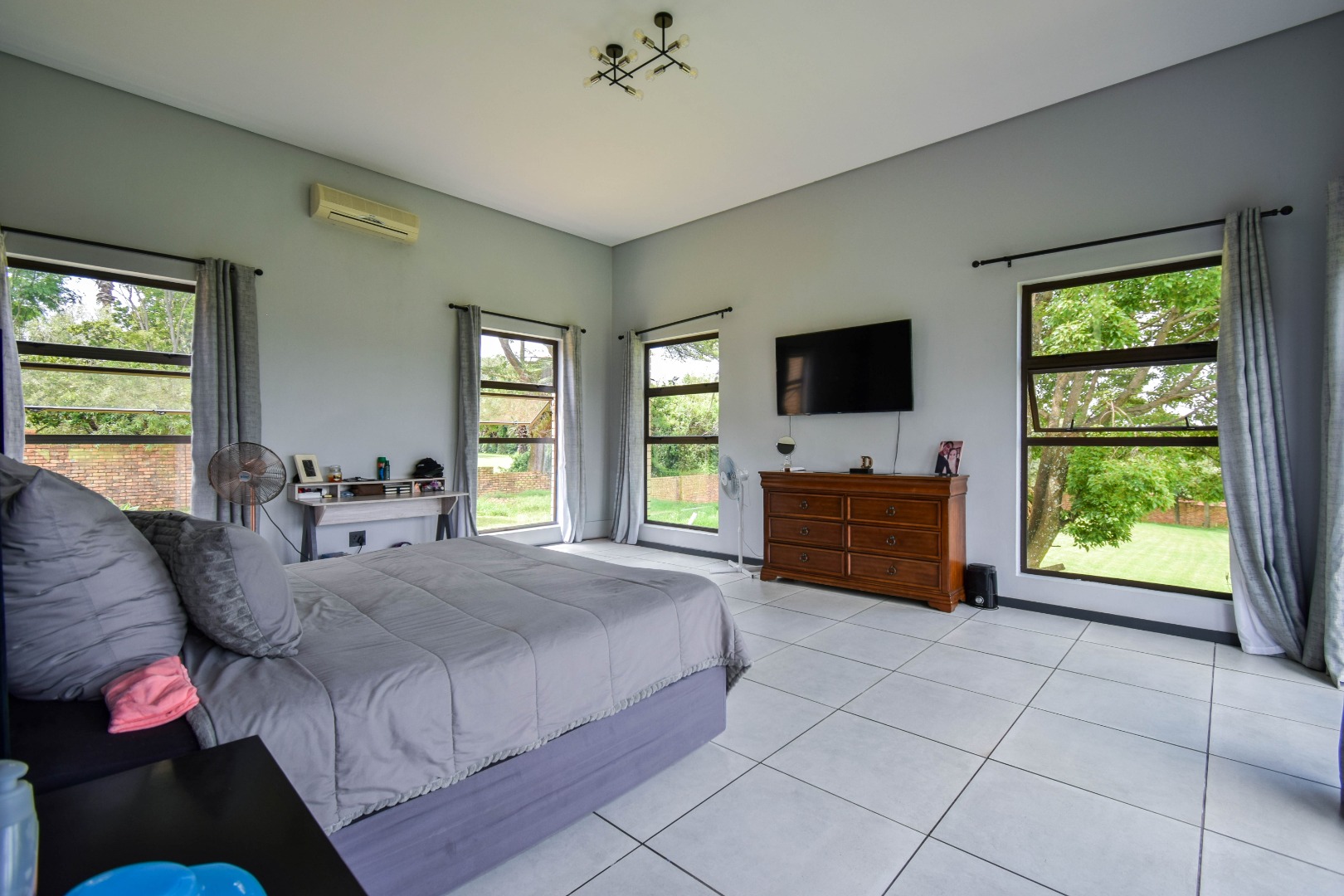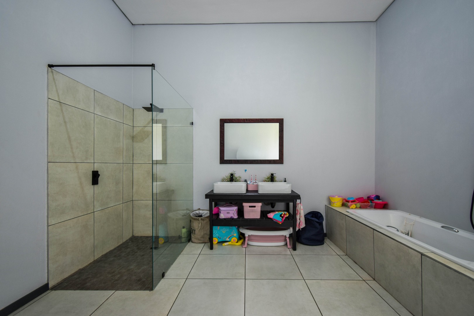 The main bedroom occupies the upper level and is exceptionally spacious, easily accommodating a king size bed, bedside pedestals and a lounge area. This suite enjoys beautiful views over the private dam and garden, a powerful air conditioning system, a full en suite bathroom and an additional private lounge or sunroom area. All bedrooms enjoy tranquil garden views.