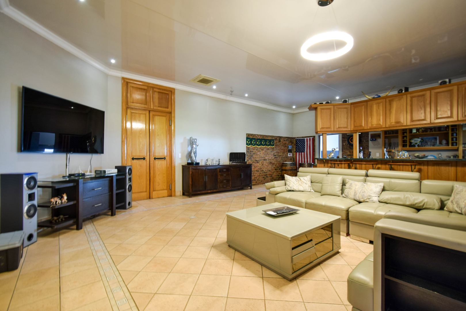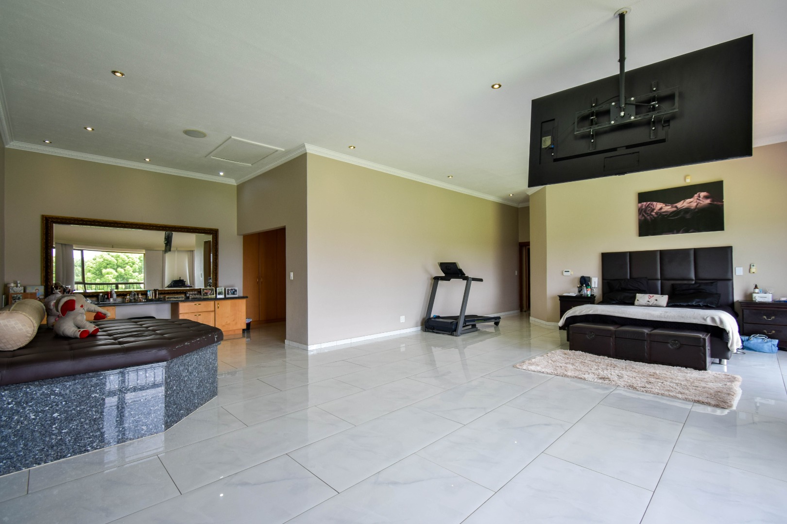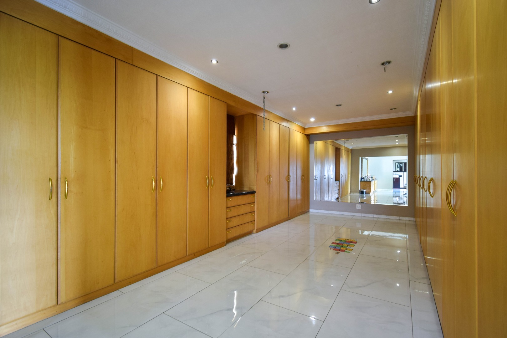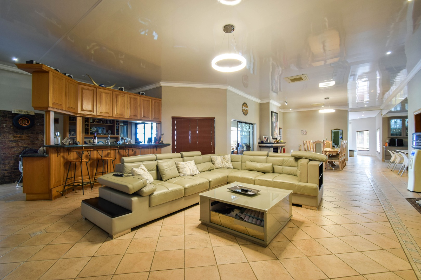 The main residence comprises six spacious bedrooms, four bathrooms and two guest toilets. Living areas are generous and varied, including formal and informal lounges, a dining room, a private bar, a pajama lounge and multiple entertainment spaces.