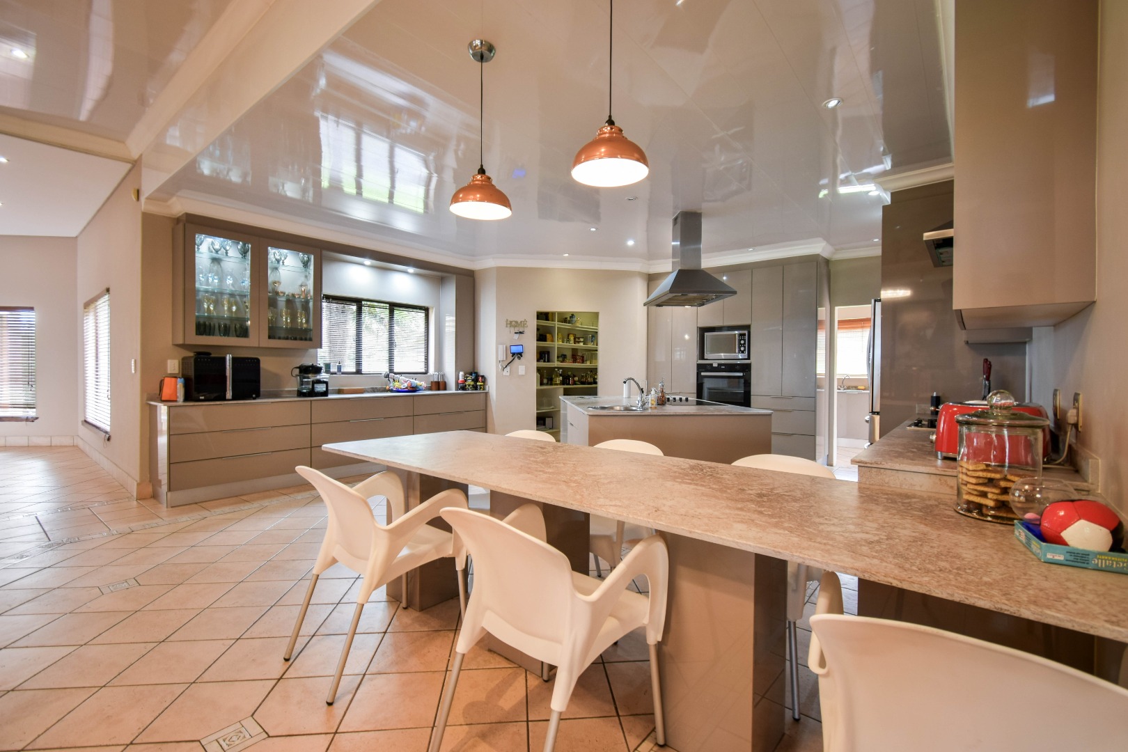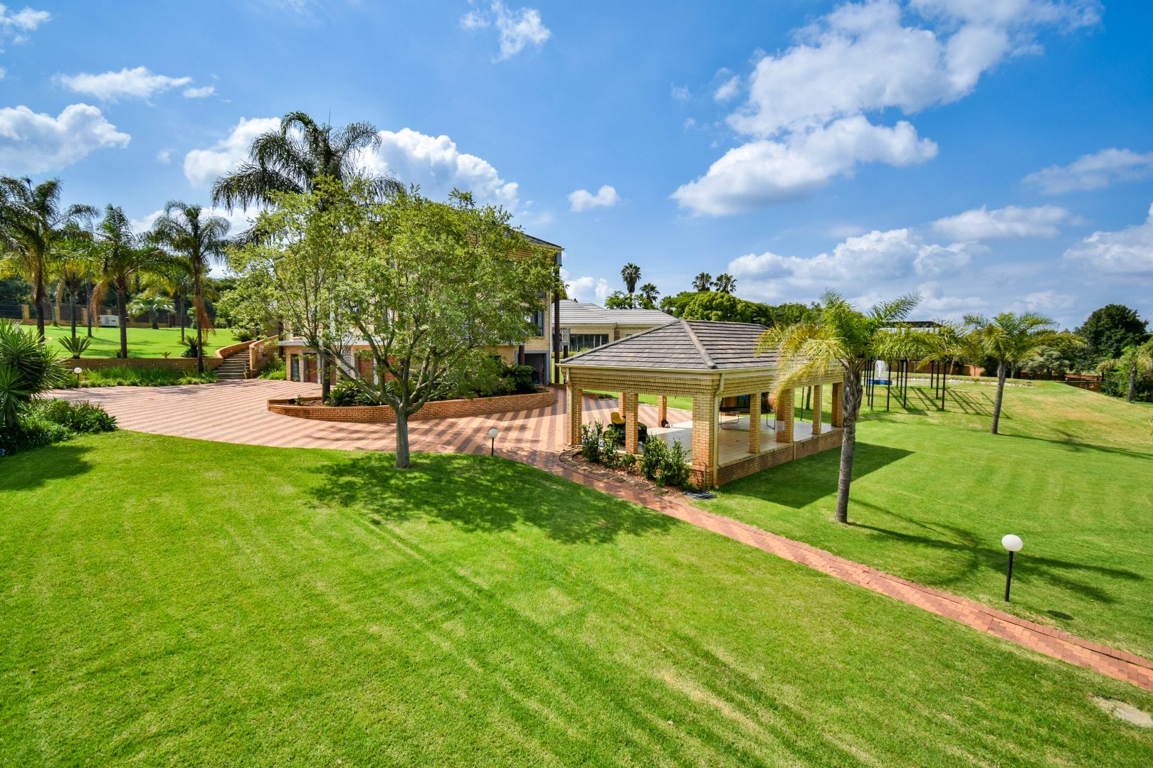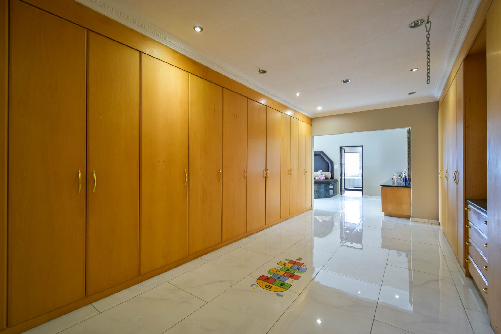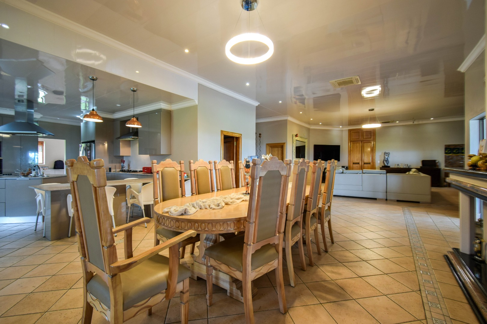 The main residence comprises six spacious bedrooms, four bathrooms and two guest toilets. Living areas are generous and varied, including formal and informal lounges, a dining room, a private bar, a pajama lounge and multiple entertainment spaces.