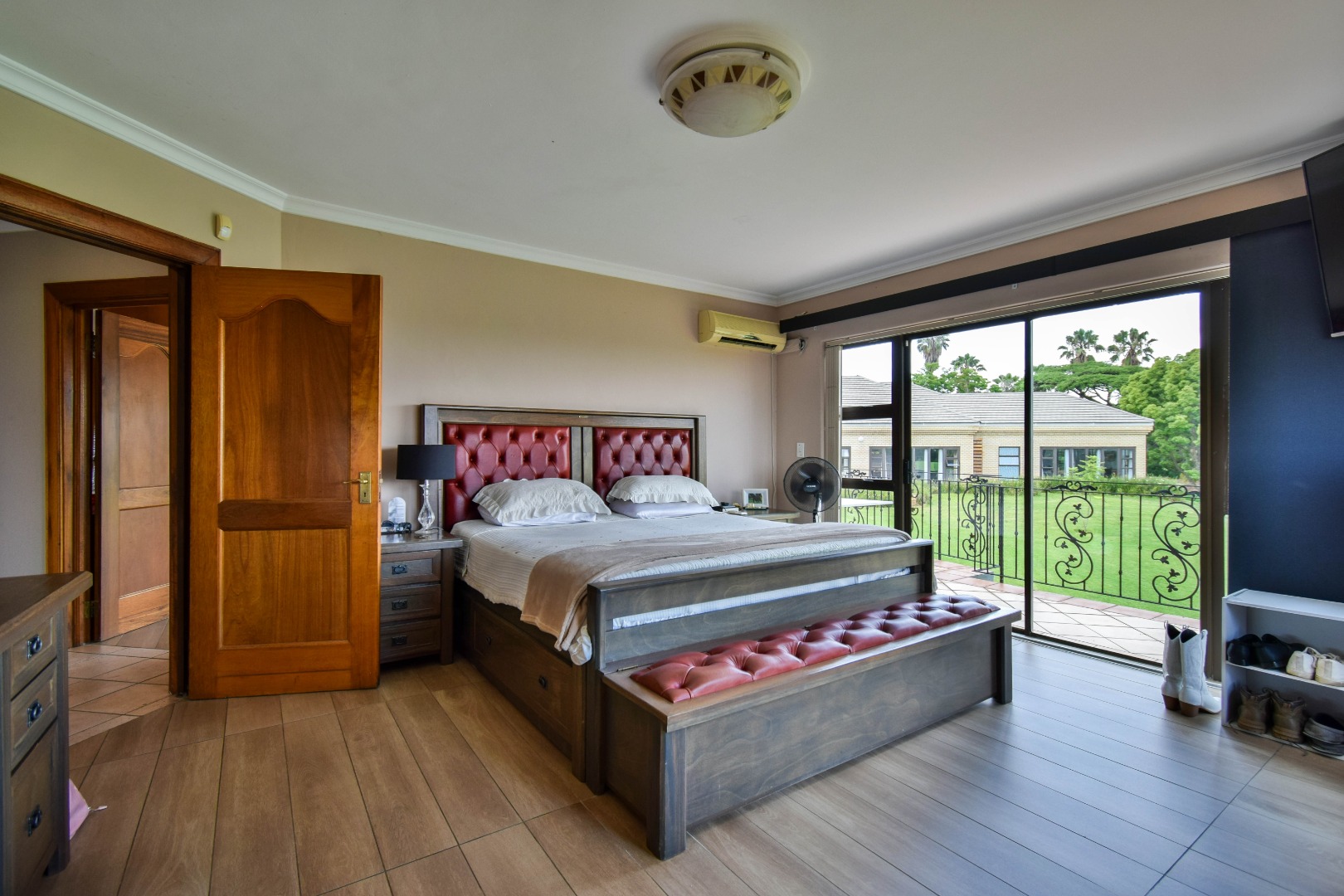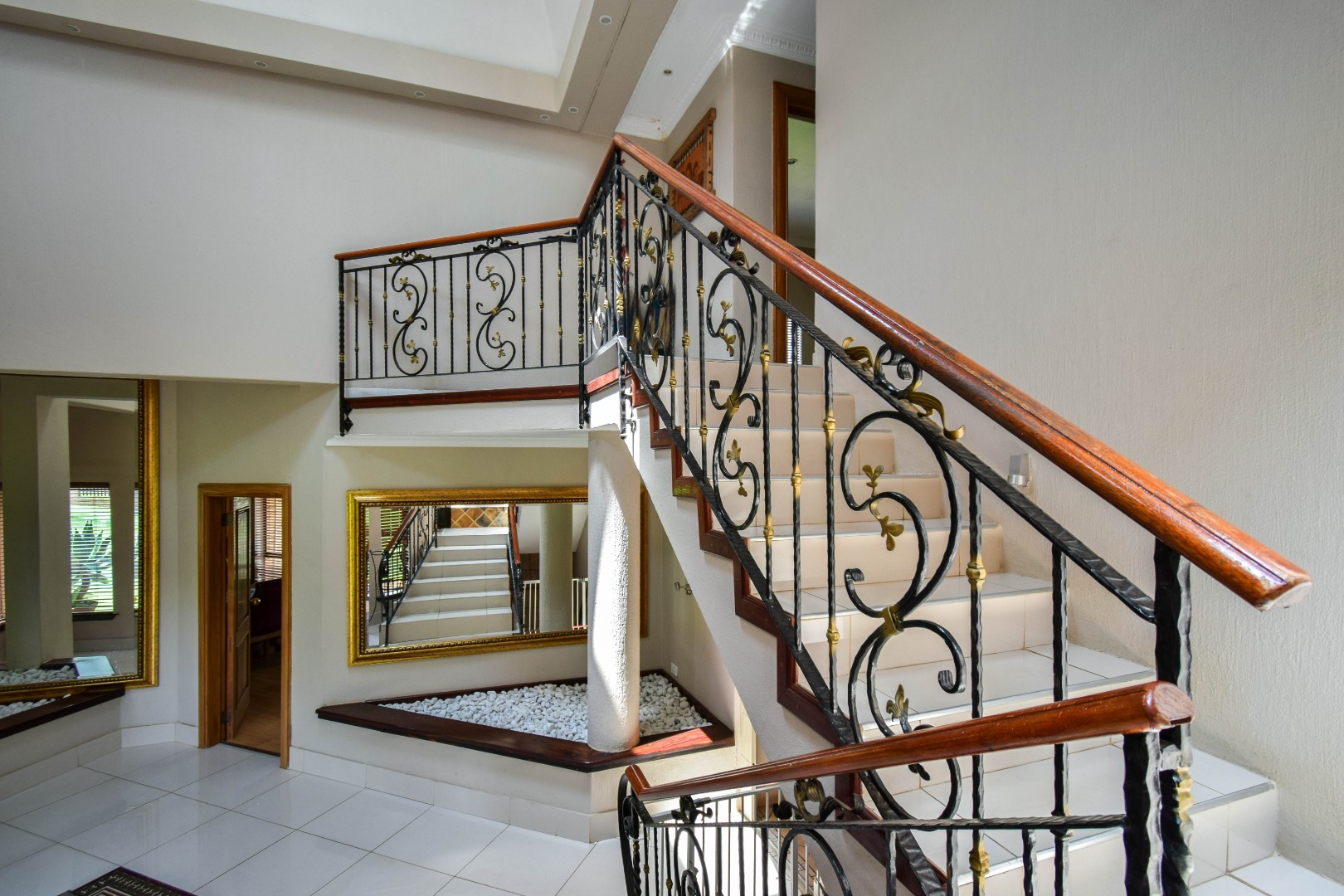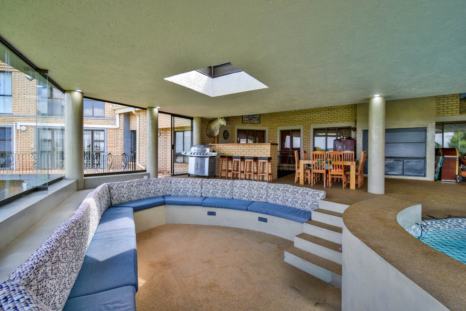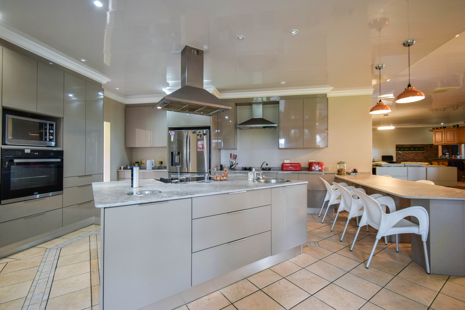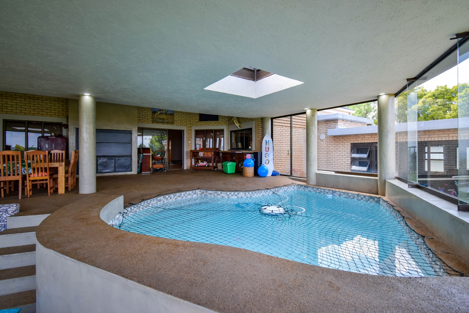 The main residence comprises six spacious bedrooms, four bathrooms and two guest toilets. Living areas are generous and varied, including formal and informal lounges, a dining room, a private bar, a pajama lounge and multiple entertainment spaces.