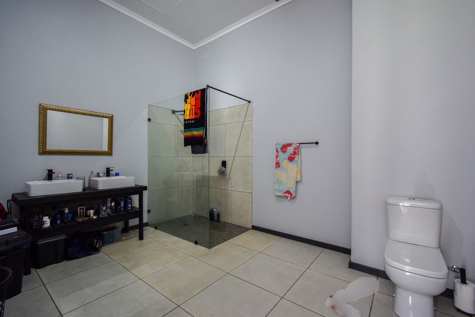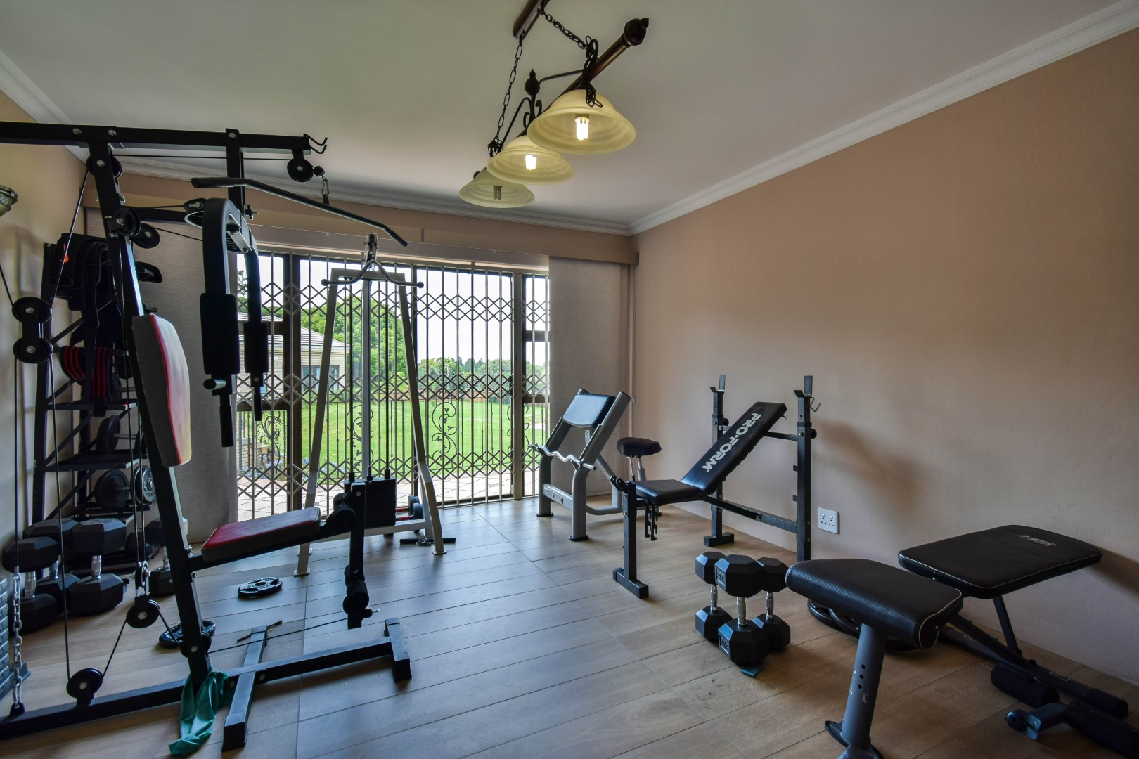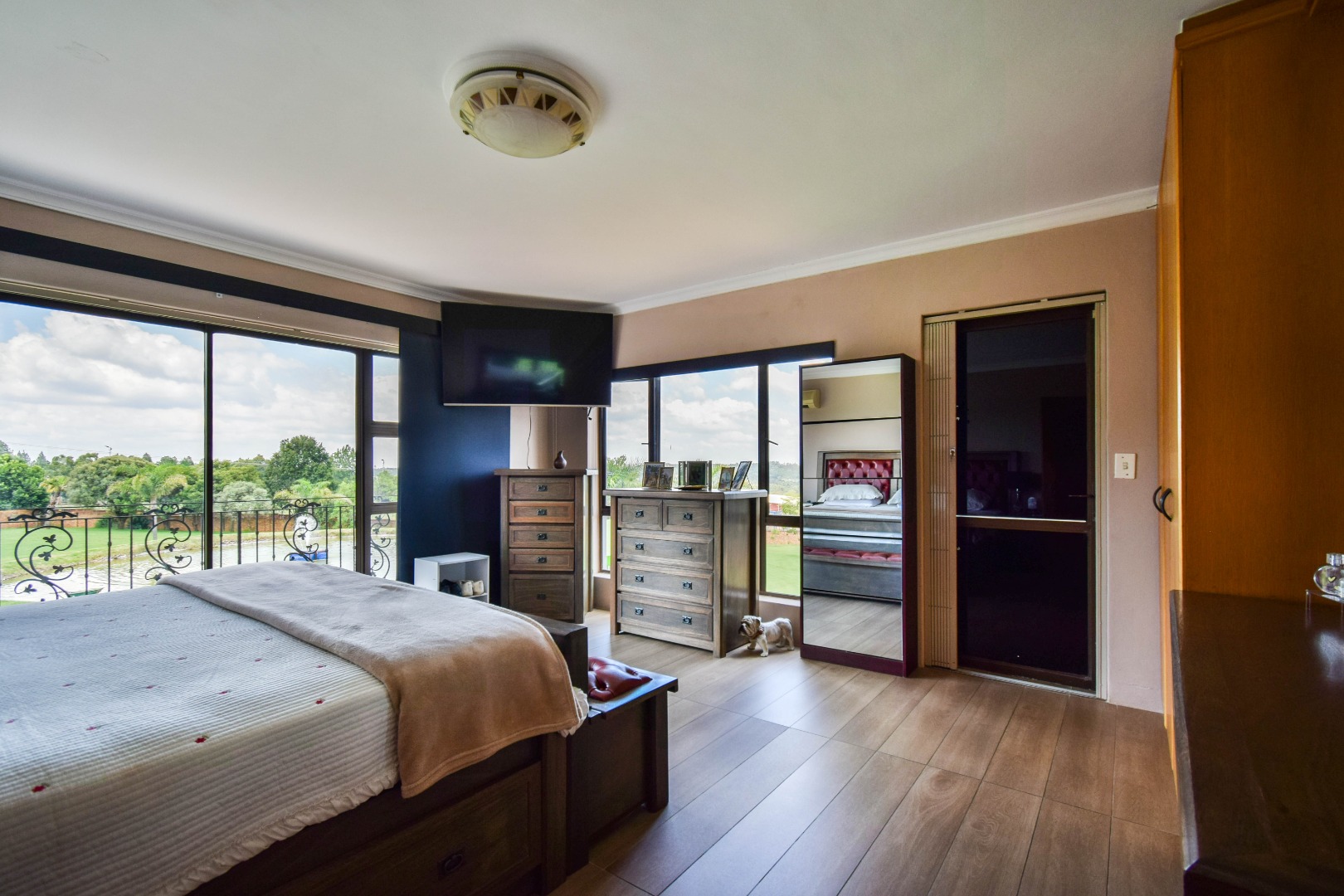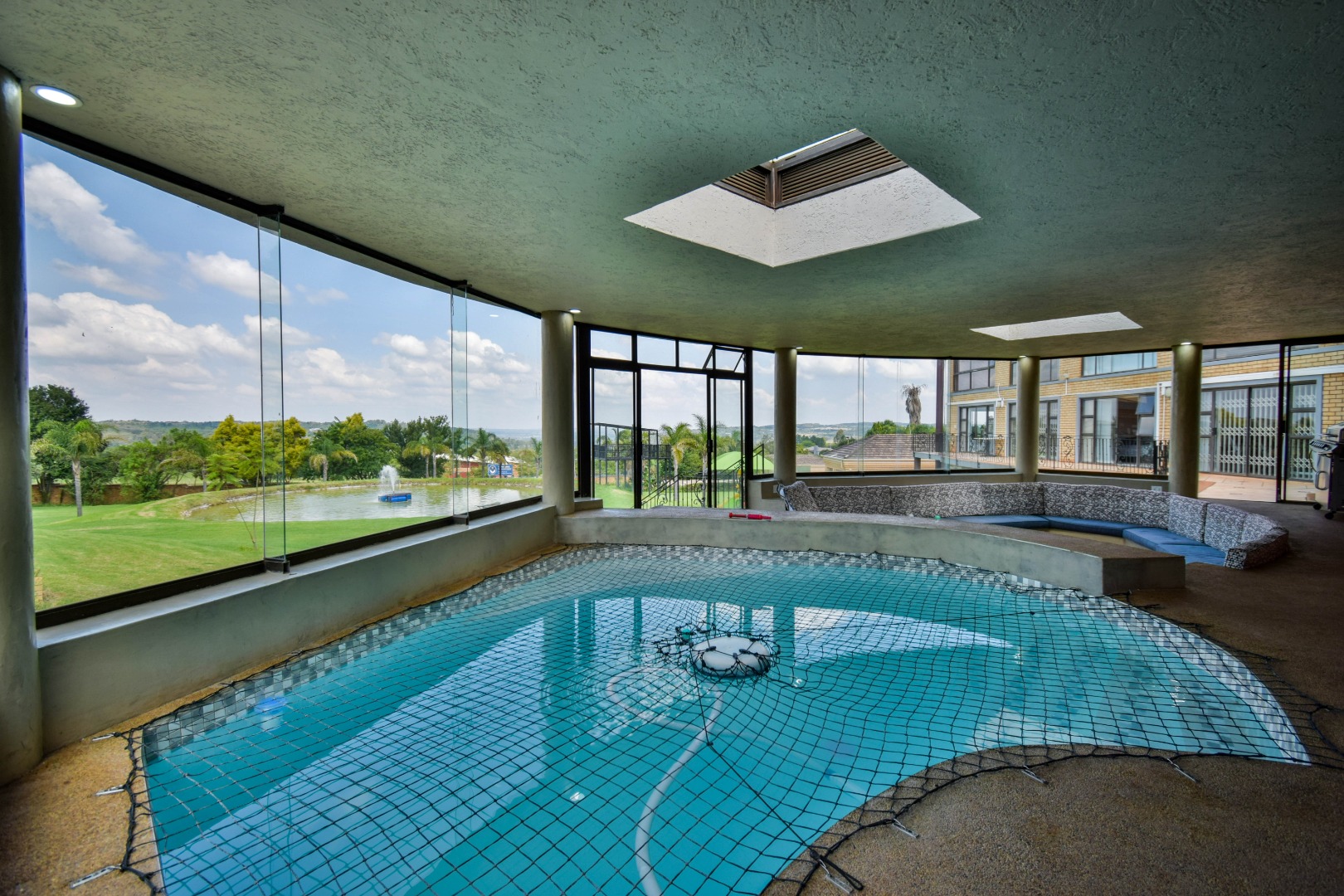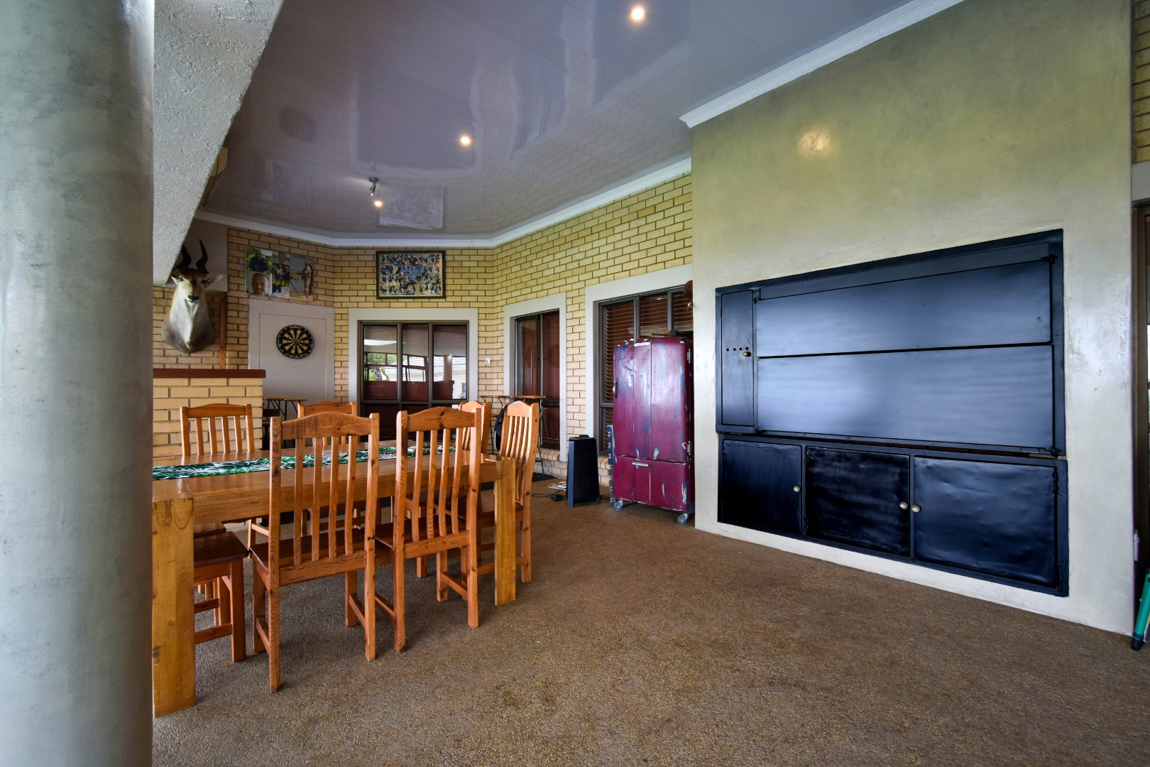 Additional features include five garages, four carports constructed with brick walls, slab flooring and tiled roofing measuring approximately 102 square metres, domestic accommodation, a strong borehole with filtration system, irrigation, a large dam with established koi fish and a generator, allowing for largely independent living. The outside buildings and tennis house measure approximately 104 square metres.