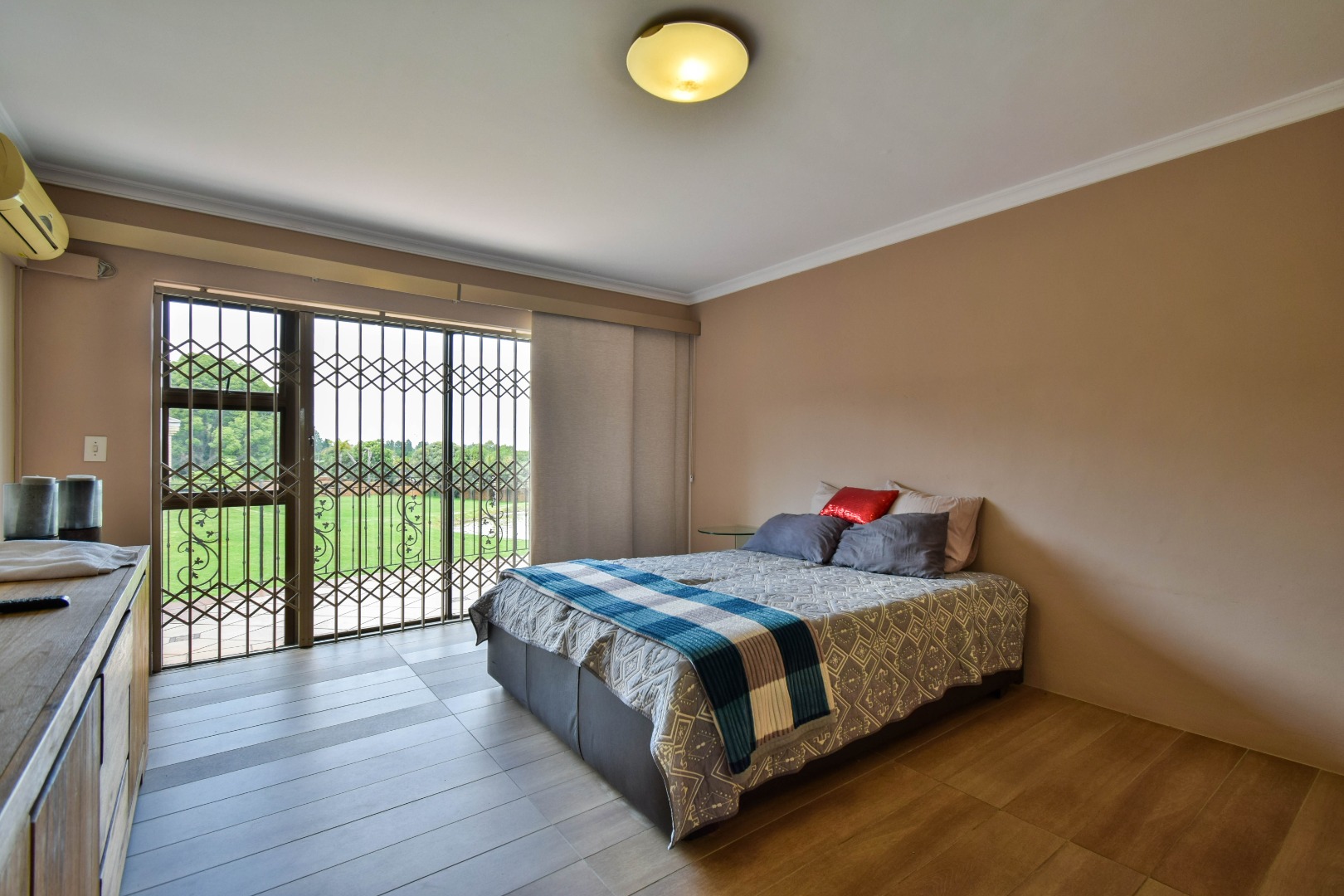The main bedroom occupies the upper level and is exceptionally spacious, easily accommodating a king size bed, bedside pedestals and a lounge area. This suite enjoys beautiful views over the private dam and garden, a powerful air conditioning system, a full en suite bathroom and an additional private lounge or sunroom area. All bedrooms enjoy tranquil garden views.
