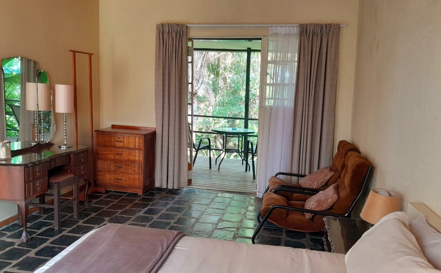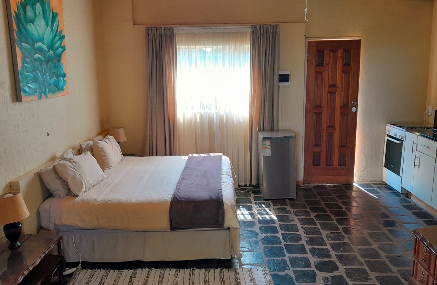 Each of the four guest units has a deck or patio overlooking the gardens and the valley. Both self-catering and non-self-catering units are available. All have a coffee station and a fridge.
