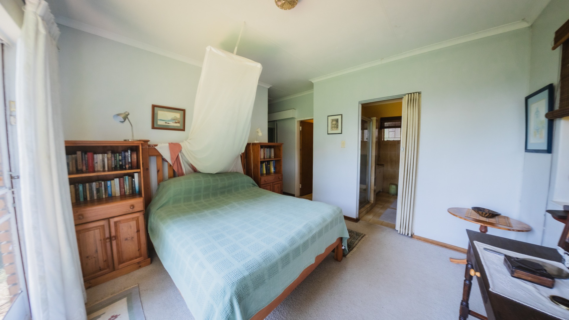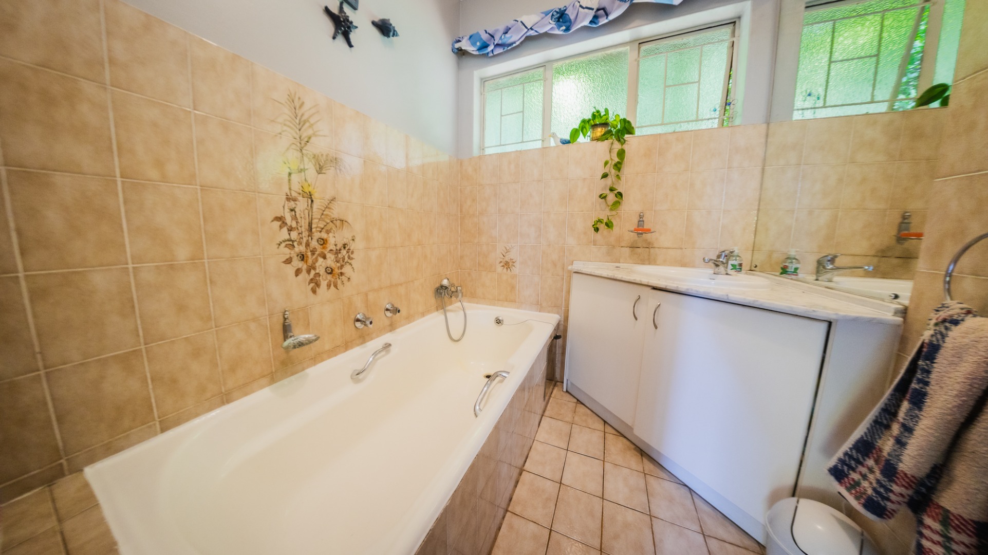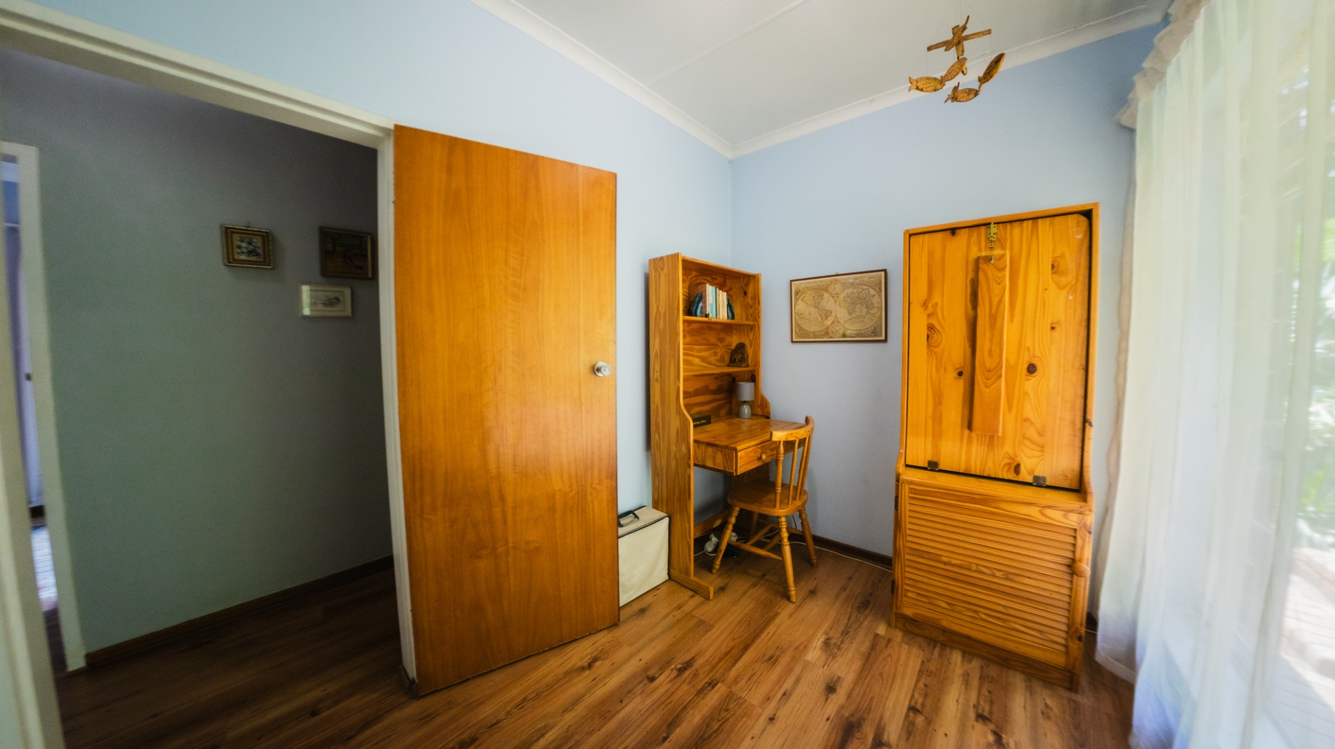 As I step inside, I find three well-appointed bedrooms and two bathrooms. The main bedroom is on suite and truly special, featuring large windows that frame the scenic outlook, walk-in cupboards, and a separate toilet for added convenience. The main bathroom is fitted with both a bath and a shower. The remaining bedrooms offer warm wooden floors and share a bathroom, making them comfortable and practical spaces.