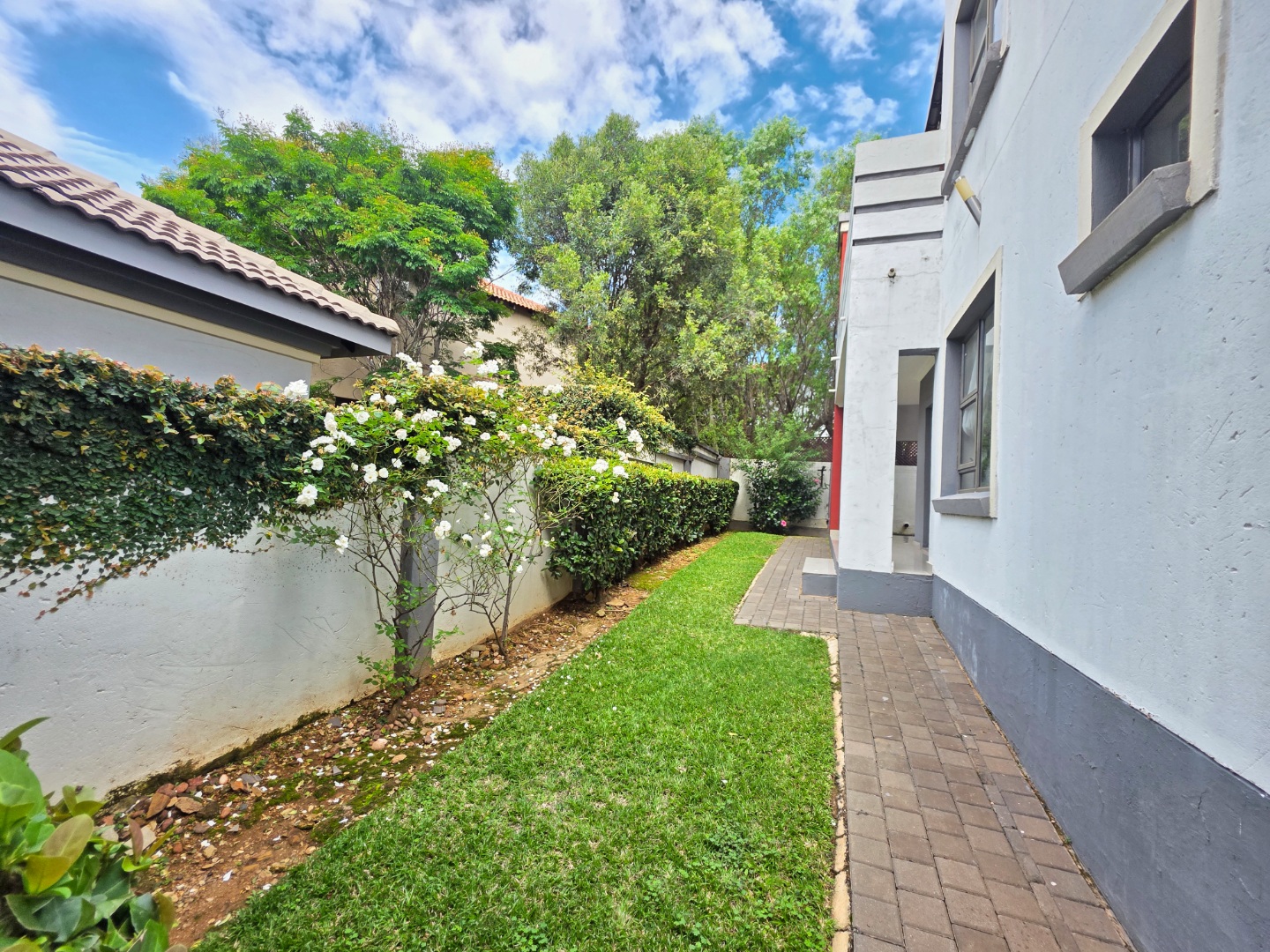 Outside, the property features a small, easy-to-maintain garden that adds a touch of greenery and calm to the home. The patio area creates the perfect setting for outdoor entertaining, whether hosting a braai or enjoying relaxed summer afternoons with family and friends.