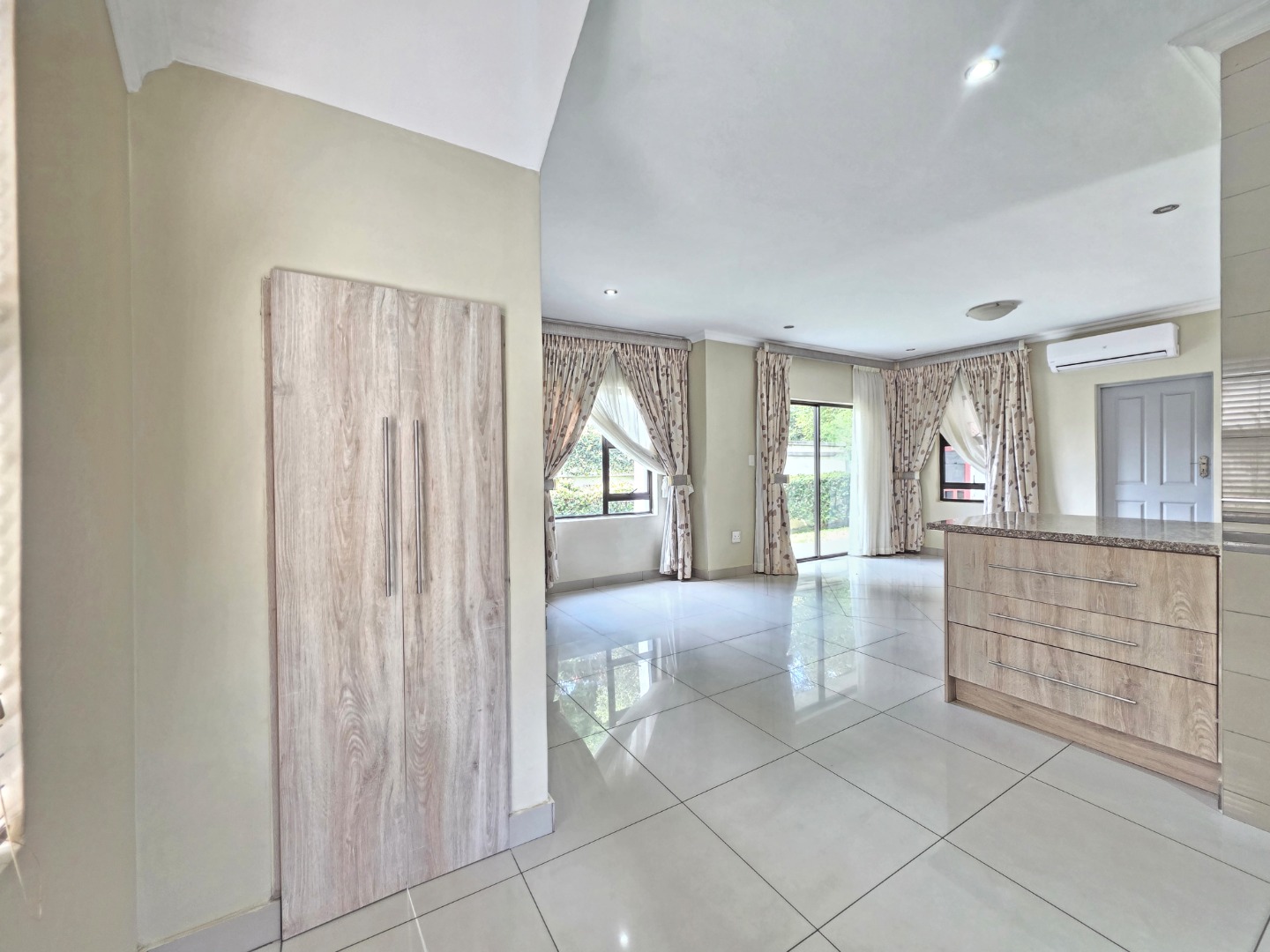 As you enter the home, you are welcomed by a bright and inviting living area designed for both relaxation and everyday comfort. Large windows allow natural light to fill the space, creating a warm and airy atmosphere. The open layout flows effortlessly through the home, allowing the living areas to feel connected and spacious.