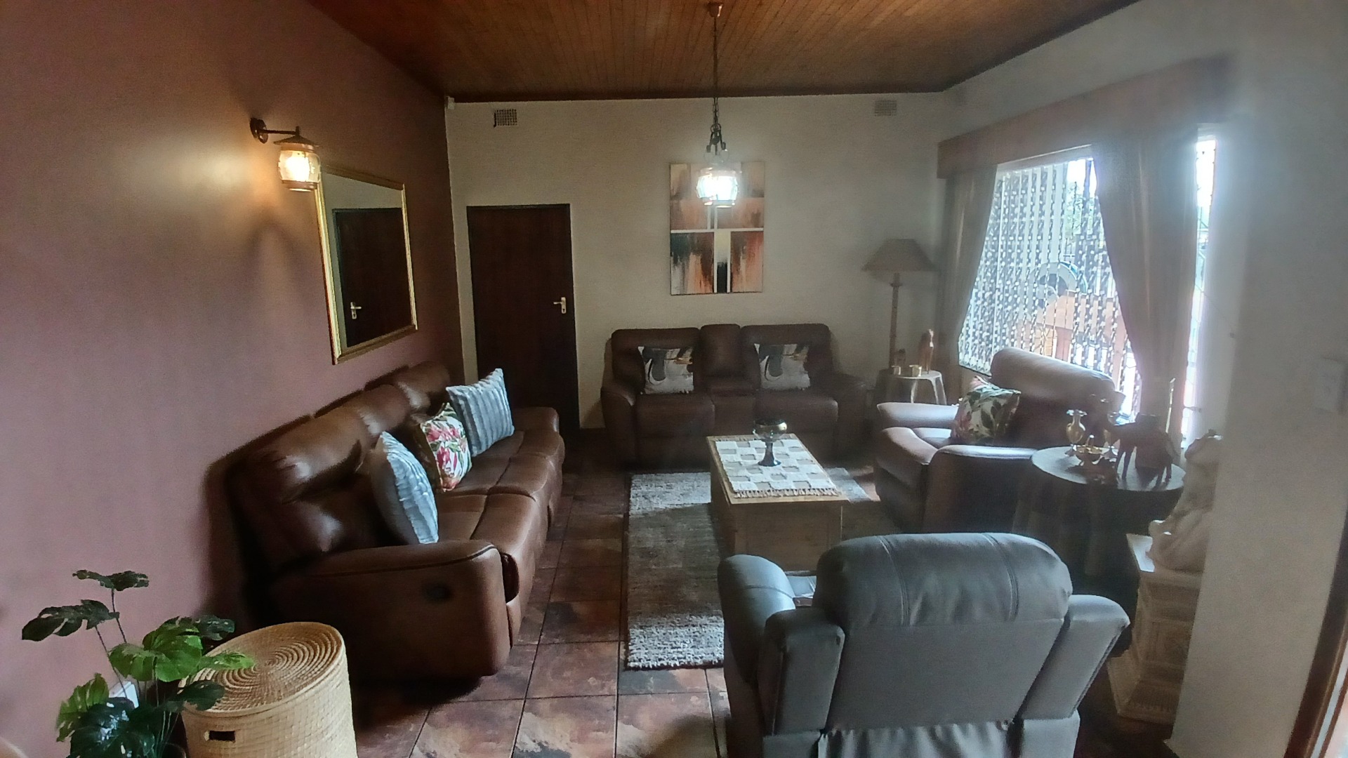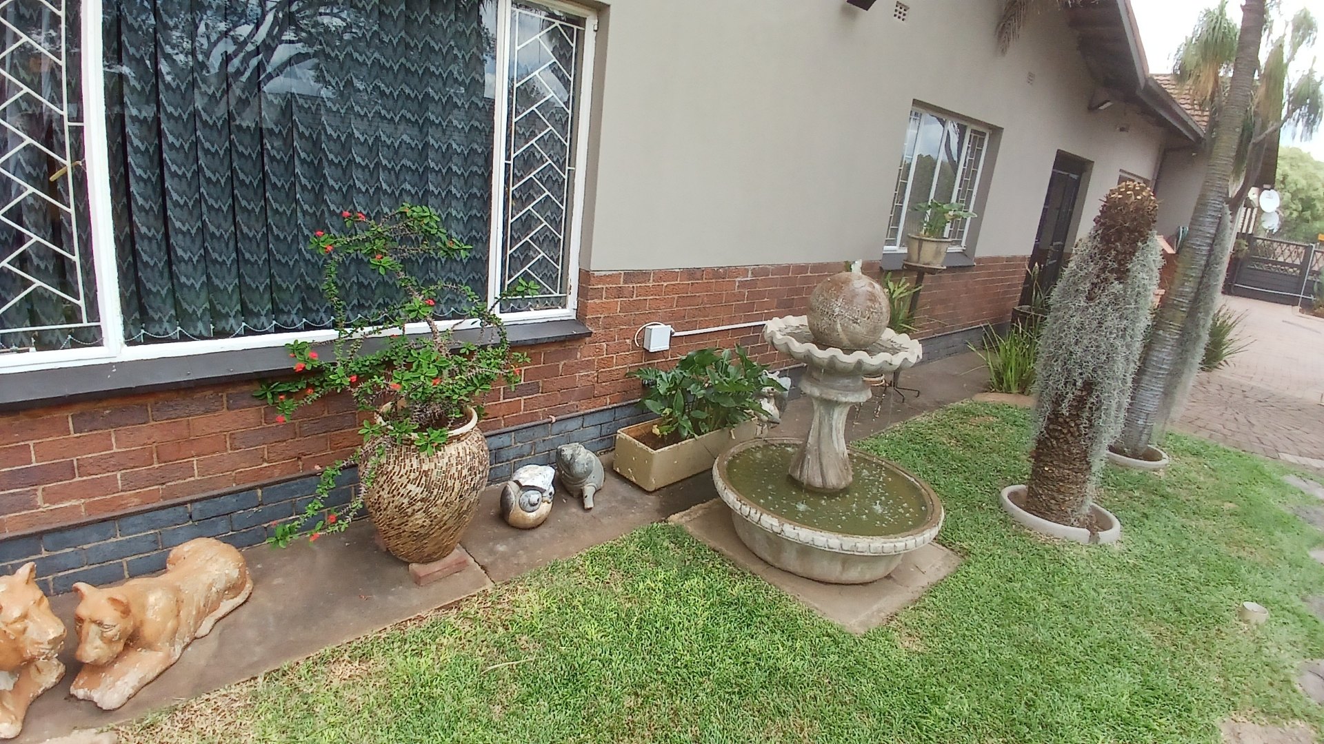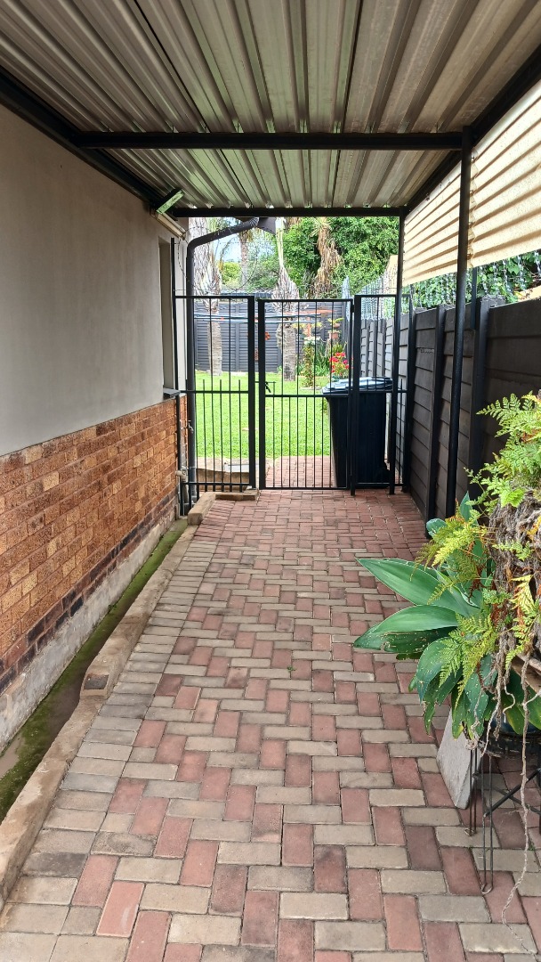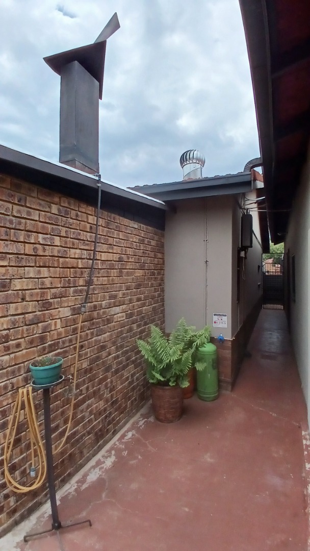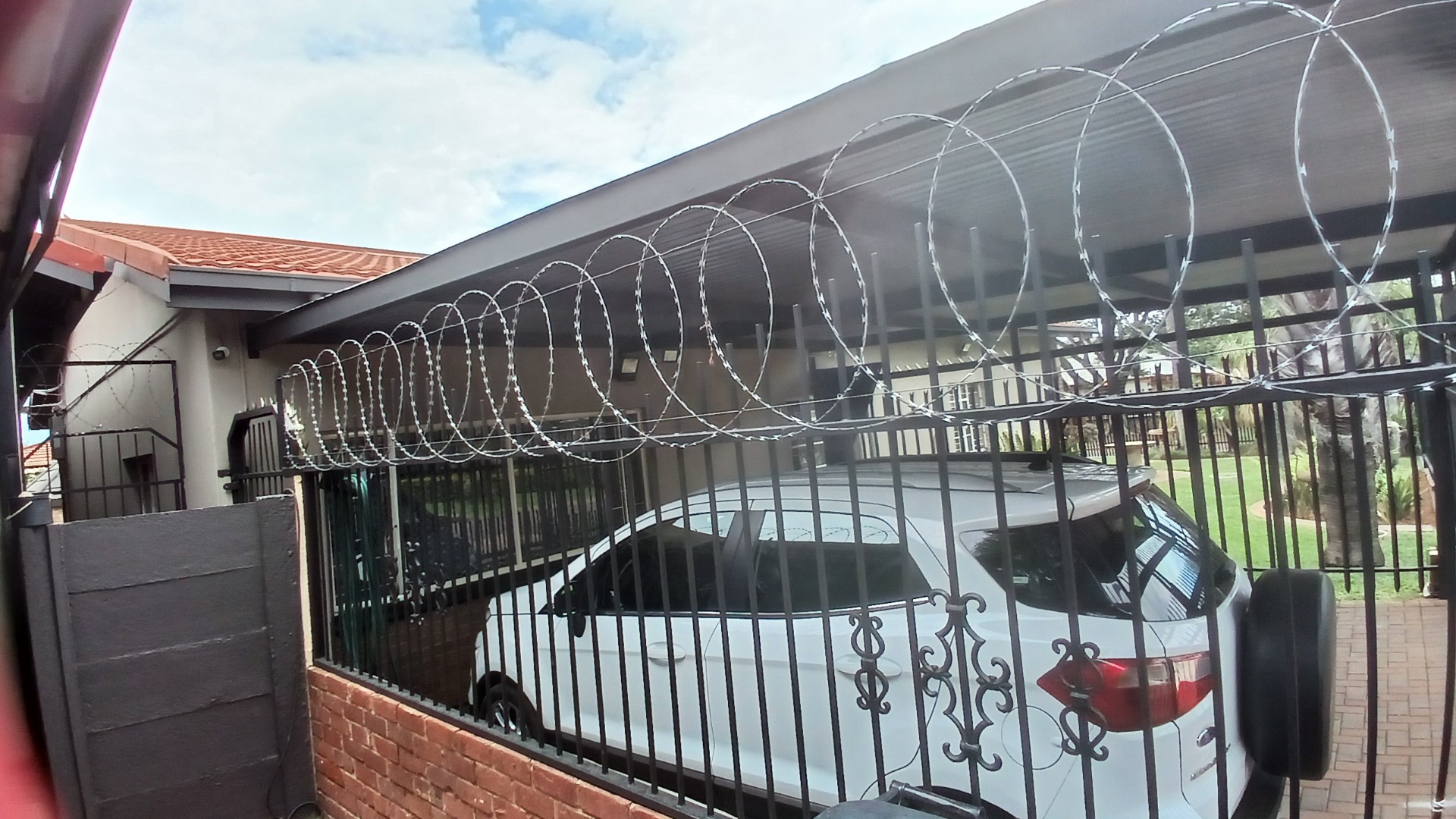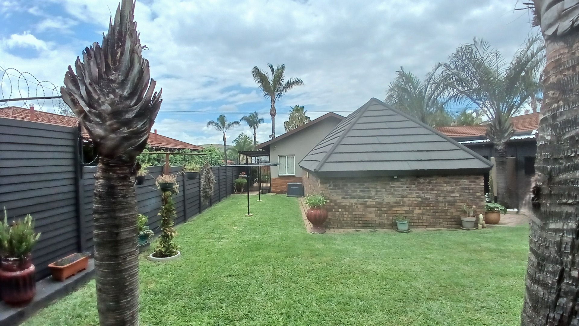 Nestled on a prominent corner lot in Pretoria Gardens, this single-story residence immediately impresses with its well-maintained landscaping, mature palm trees, and attractive tiled roof. The secure black perimeter fencing and access gate provide a welcoming yet protected entrance, setting the stage for a comfortable family lifestyle. Step inside to discover a thoughtfully designed interior spanning 436 sqm, featuring a warm and inviting ambiance. The home boasts a spacious lounge, a dedicated dining room, and an additional family TV room, offering versatile living spaces for relaxation and entertainment. Distinctive wooden panel ceilings add character throughout, complemented by ample natural light from large windows. A functional home office or study provides a quiet space for productivity, complete with built-in wooden cabinetry. The heart of the home, the kitchen, is equipped with extensive dark wooden cabinetry, generous L-shaped counter space, an integrated double oven, and a gas hob on a peninsula, perfect for culinary enthusiasts. A double stainless steel sink and ample storage ensure practicality. Accommodation comprises three comfortable bedrooms, including one with an en-suite bathroom, ensuring privacy and convenience. A total of two well-appointed bathrooms serve the household. The property sits on a generous 991 sqm erf, offering ample outdoor space. Enjoy outdoor living with a charming lapa and a built-in braai, ideal for entertaining. The well-maintained garden, complete with an irrigation system and borehole, ensures lush greenery year-round. Parking is abundant with two garages and additional space for five vehicles, all accessible via a paved driveway. For leisure, a jacuzzi provides a perfect spot for relaxation. Security is paramount, featuring electric fencing, an alarm system, CCTV, burglar bars, and a security gate, providing peace of mind. This home is also equipped for sustainable living with a solar geyser, water tanks, a battery inverter, and solar panels, significantly reducing utility costs. Fibre connectivity is available, catering to modern communication needs. Located in the metropolitan area of Pretoria, Pretoria Gardens offers a convenient and established residential setting, providing easy access to local amenities and transport routes. Key Features: * 3 Bedrooms, 2 Bathrooms (1 En-suite) * Spacious Lounge, Dining Room & Family TV Room * Dedicated Home Study * Well-equipped Kitchen with Integrated Double Oven & Gas Hob * Lapa with Built-in Braai & Jacuzzi * 2 Garages & 5 Additional Parking Spaces * Advanced Security: Electric Fencing, Alarm, CCTV, Burglar Bars * Sustainable Living: Solar Geyser, Solar Panels, Battery Inverter, Borehole, Water Tanks * Fibre Ready * Pets Allowed