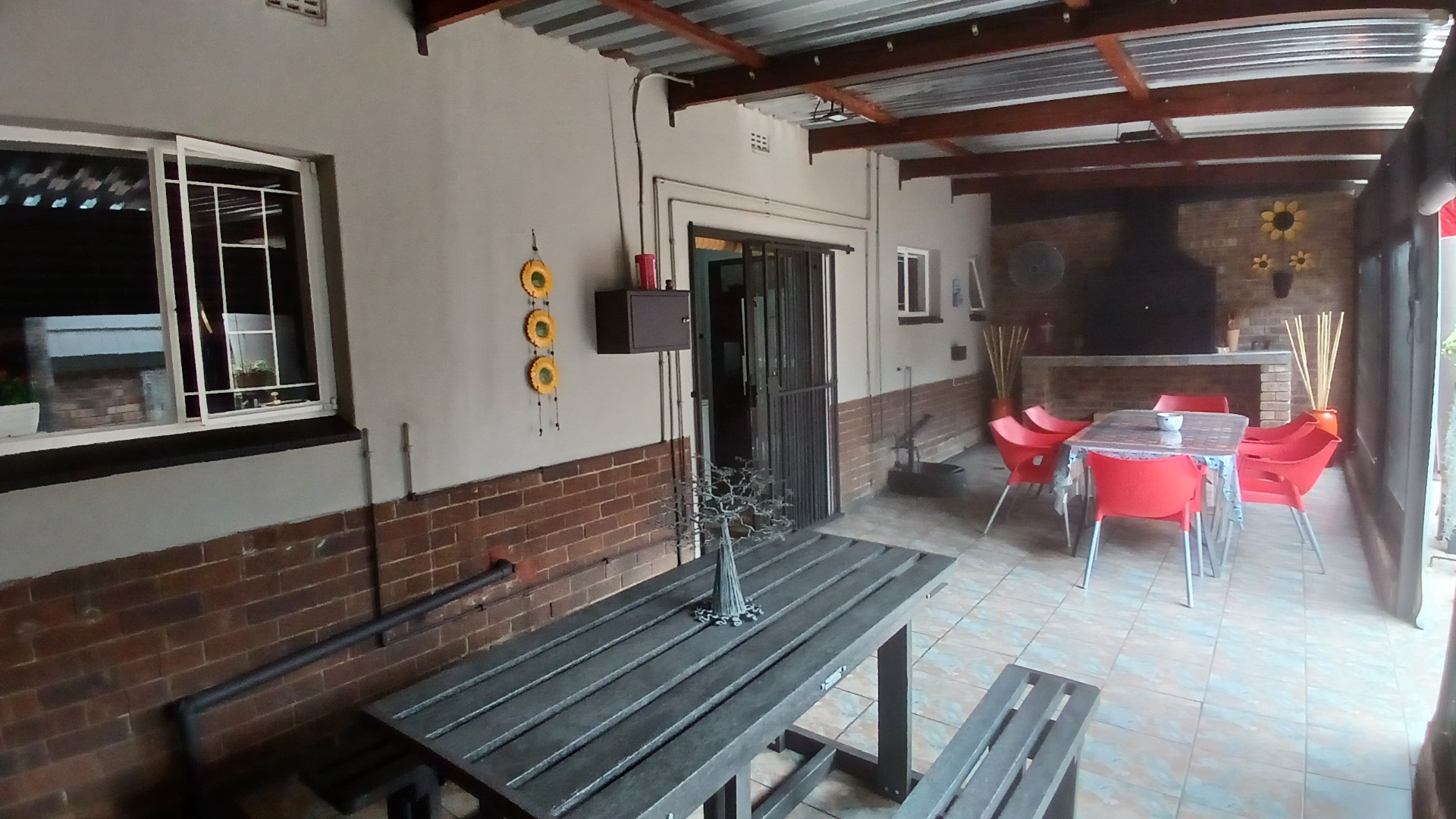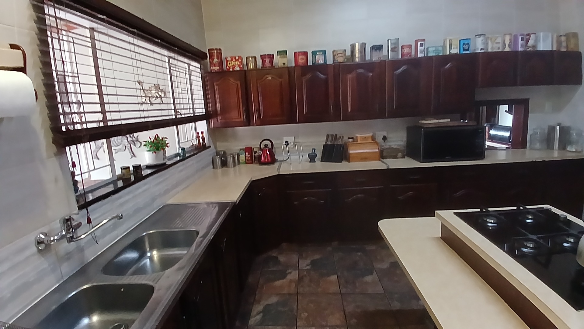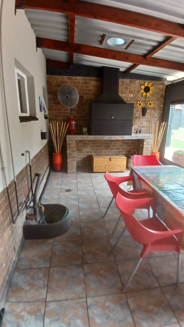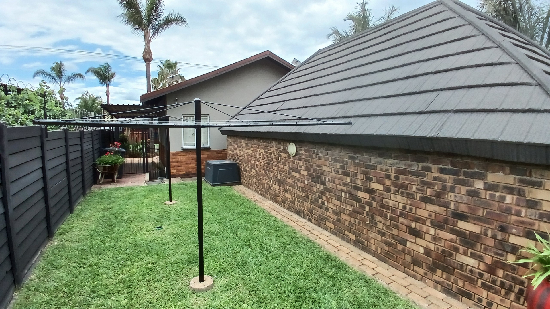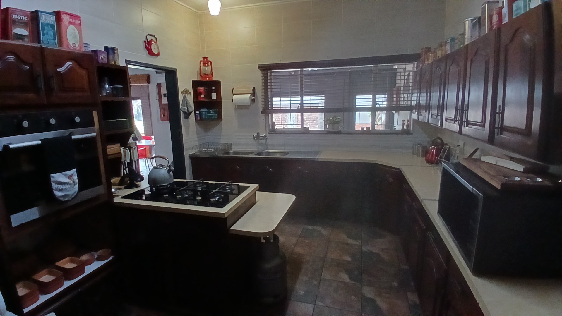 Nestled on a prominent corner lot in Pretoria Gardens, this single-story residence immediately impresses with its well-maintained landscaping, mature palm trees, and attractive tiled roof. The secure black perimeter fencing and access gate provide a welcoming yet protected entrance, setting the stage for a comfortable family lifestyle. Step inside to discover a thoughtfully designed interior spanning 436 sqm, featuring a warm and inviting ambiance. The home boasts a spacious lounge, a dedicated dining room, and an additional family TV room, offering versatile living spaces for relaxation and entertainment. Distinctive wooden panel ceilings add character throughout, complemented by ample natural light from large windows. A functional home office or study provides a quiet space for productivity, complete with built-in wooden cabinetry. The heart of the home, the kitchen, is equipped with extensive dark wooden cabinetry, generous L-shaped counter space, an integrated double oven, and a gas hob on a peninsula, perfect for culinary enthusiasts. A double stainless steel sink and ample storage ensure practicality. Accommodation comprises three comfortable bedrooms, including one with an en-suite bathroom, ensuring privacy and convenience. A total of two well-appointed bathrooms serve the household. The property sits on a generous 991 sqm erf, offering ample outdoor space. Enjoy outdoor living with a charming lapa and a built-in braai, ideal for entertaining. The well-maintained garden, complete with an irrigation system and borehole, ensures lush greenery year-round. Parking is abundant with two garages and additional space for five vehicles, all accessible via a paved driveway. For leisure, a jacuzzi provides a perfect spot for relaxation. Security is paramount, featuring electric fencing, an alarm system, CCTV, burglar bars, and a security gate, providing peace of mind. This home is also equipped for sustainable living with a solar geyser, water tanks, a battery inverter, and solar panels, significantly reducing utility costs. Fibre connectivity is available, catering to modern communication needs. Located in the metropolitan area of Pretoria, Pretoria Gardens offers a convenient and established residential setting, providing easy access to local amenities and transport routes. Key Features: * 3 Bedrooms, 2 Bathrooms (1 En-suite) * Spacious Lounge, Dining Room & Family TV Room * Dedicated Home Study * Well-equipped Kitchen with Integrated Double Oven & Gas Hob * Lapa with Built-in Braai & Jacuzzi * 2 Garages & 5 Additional Parking Spaces * Advanced Security: Electric Fencing, Alarm, CCTV, Burglar Bars * Sustainable Living: Solar Geyser, Solar Panels, Battery Inverter, Borehole, Water Tanks * Fibre Ready * Pets Allowed