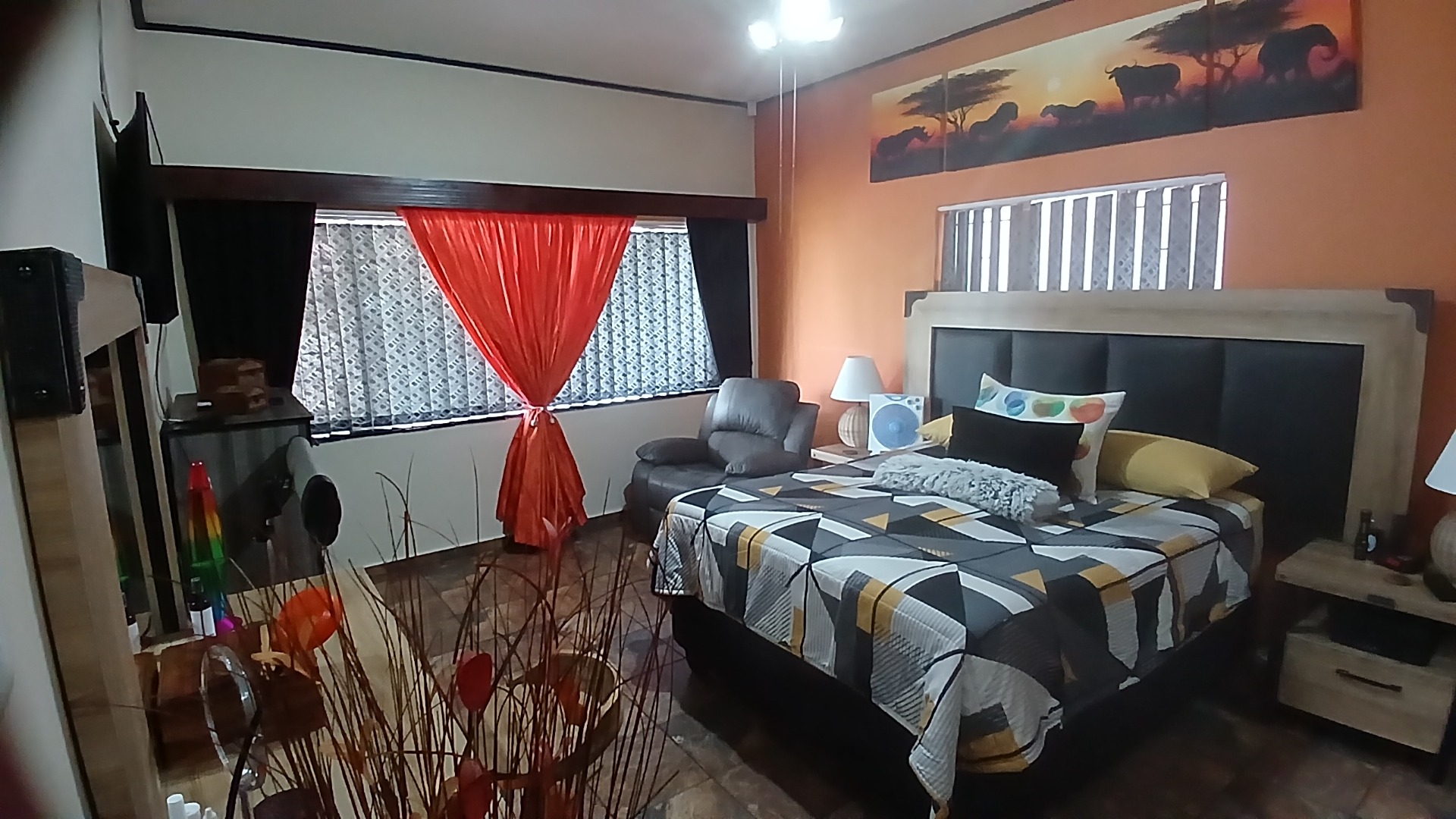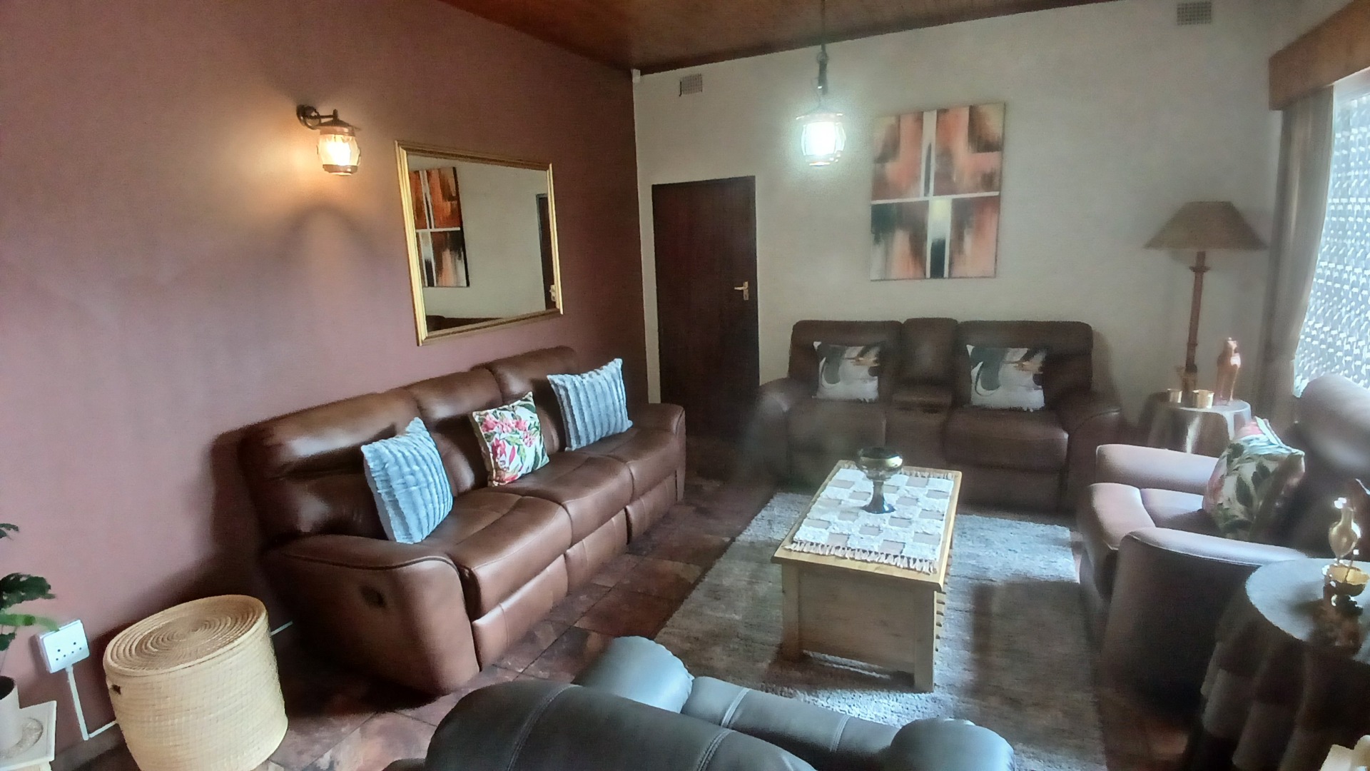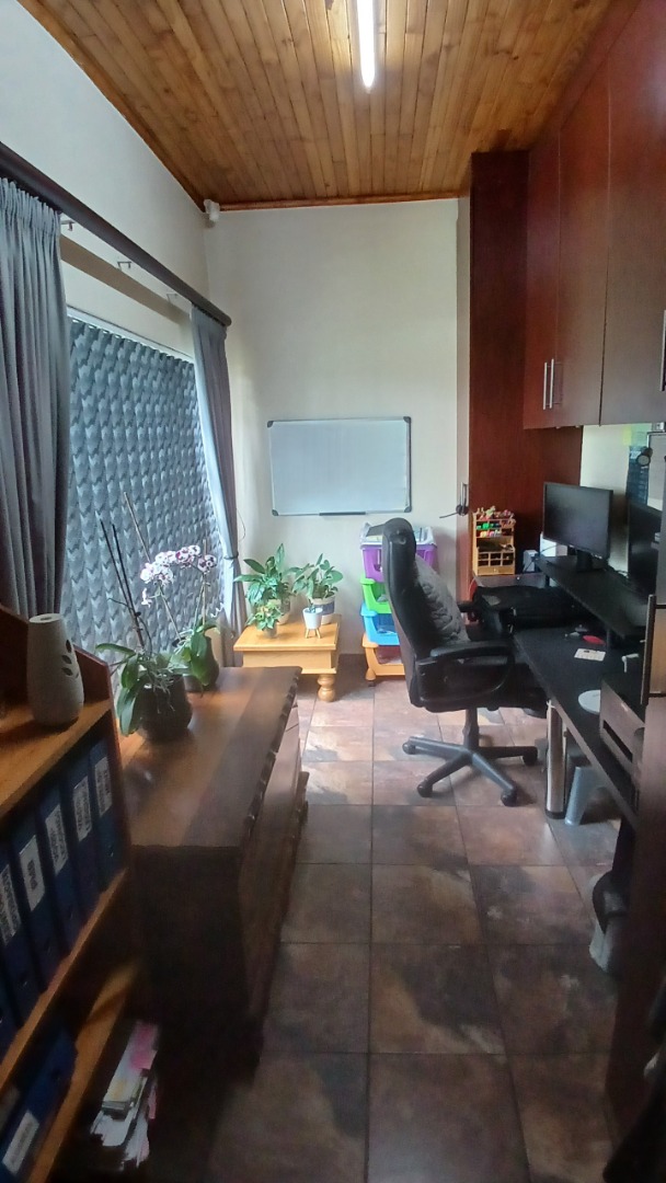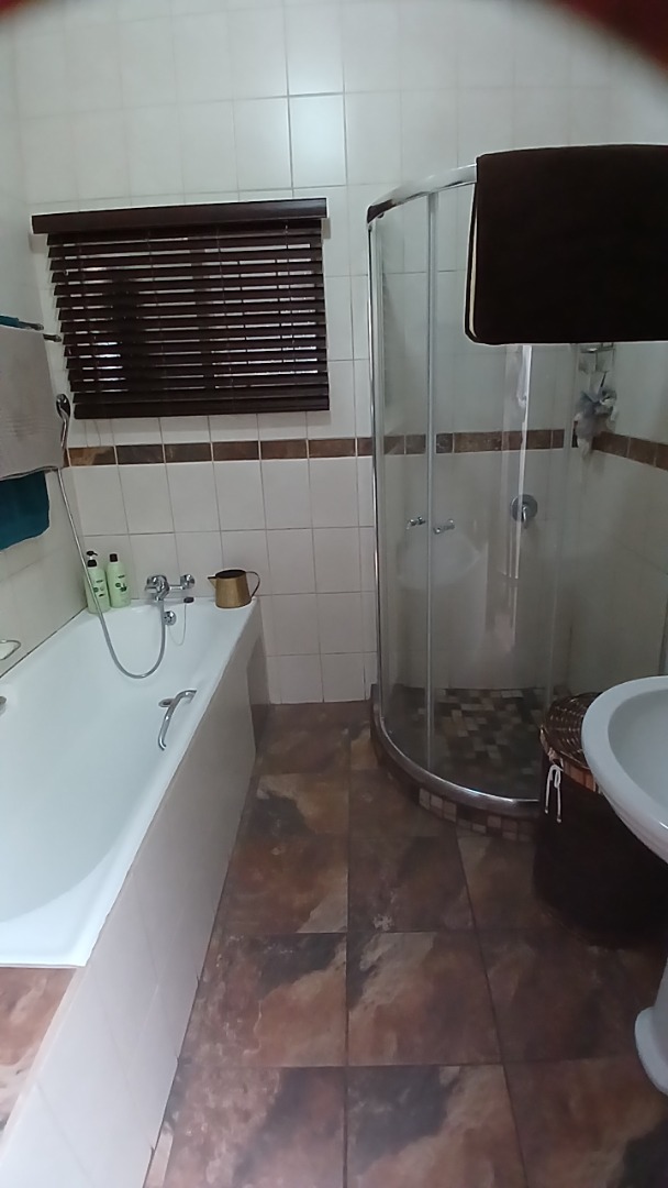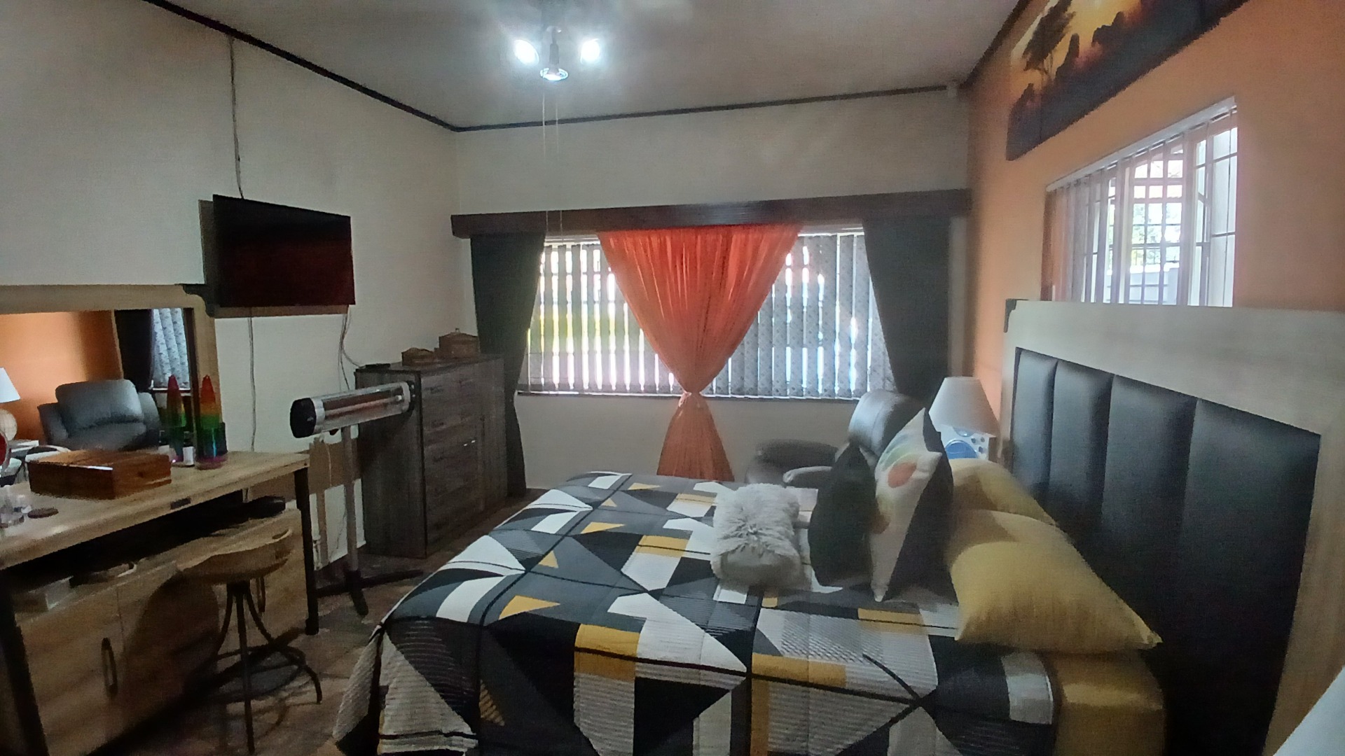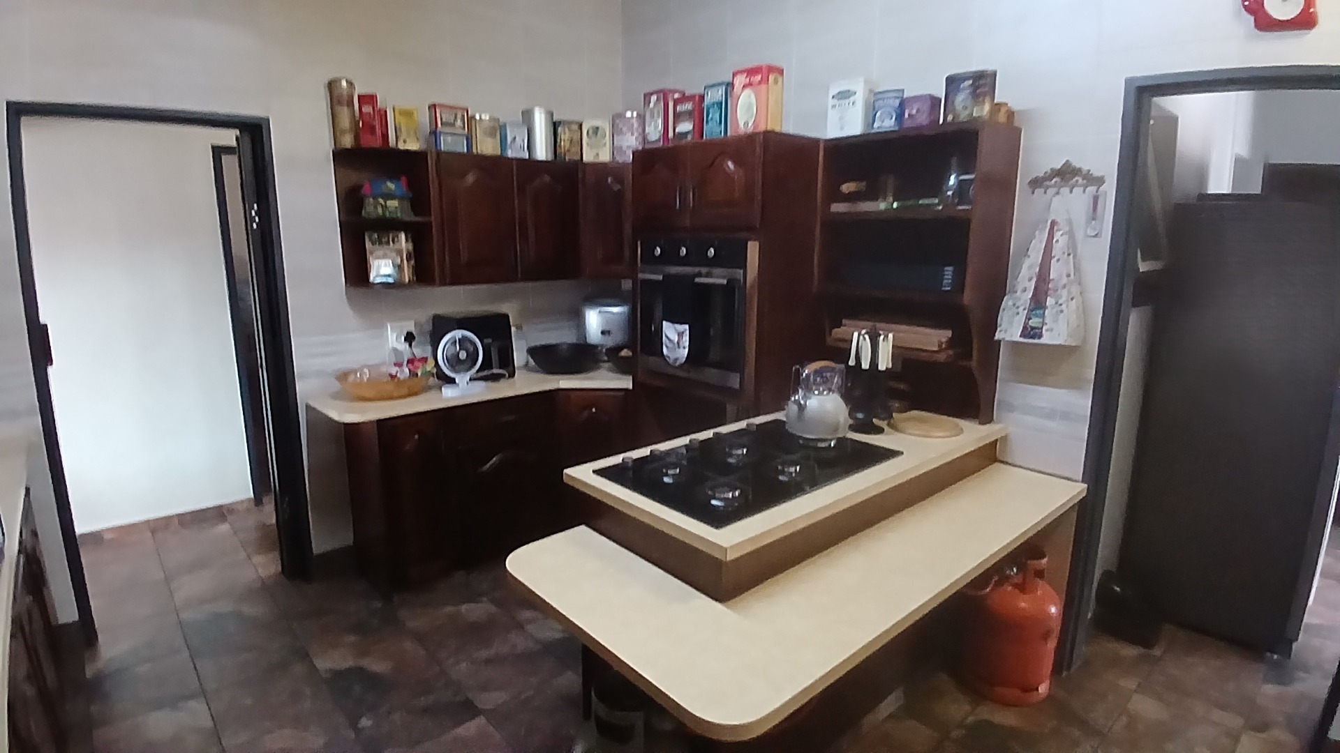Nestled on a prominent corner lot in Pretoria Gardens, this single-story residence immediately impresses with its well-maintained landscaping, mature palm trees, and attractive tiled roof. The secure black perimeter fencing and access gate provide a welcoming yet protected entrance, setting the stage for a comfortable family lifestyle. Step inside to discover a thoughtfully designed interior spanning 436 sqm, featuring a warm and inviting ambiance. The home boasts a spacious lounge, a dedicated dining room, and an additional family TV room, offering versatile living spaces for relaxation and entertainment. Distinctive wooden panel ceilings add character throughout, complemented by ample natural light from large windows. A functional home office or study provides a quiet space for productivity, complete with built-in wooden cabinetry. The heart of the home, the kitchen, is equipped with extensive dark wooden cabinetry, generous L-shaped counter space, an integrated double oven, and a gas hob on a peninsula, perfect for culinary enthusiasts. A double stainless steel sink and ample storage ensure practicality. Accommodation comprises three comfortable bedrooms, including one with an en-suite bathroom, ensuring privacy and convenience. A total of two well-appointed bathrooms serve the household. The property sits on a generous 991 sqm erf, offering ample outdoor space. Enjoy outdoor living with a charming lapa and a built-in braai, ideal for entertaining. The well-maintained garden, complete with an irrigation system and borehole, ensures lush greenery year-round. Parking is abundant with two garages and additional space for five vehicles, all accessible via a paved driveway. For leisure, a jacuzzi provides a perfect spot for relaxation. Security is paramount, featuring electric fencing, an alarm system, CCTV, burglar bars, and a security gate, providing peace of mind. This home is also equipped for sustainable living with a solar geyser, water tanks, a battery inverter, and solar panels, significantly reducing utility costs. Fibre connectivity is available, catering to modern communication needs. Located in the metropolitan area of Pretoria, Pretoria Gardens offers a convenient and established residential setting, providing easy access to local amenities and transport routes. Key Features: * 3 Bedrooms, 2 Bathrooms (1 En-suite) * Spacious Lounge, Dining Room & Family TV Room * Dedicated Home Study * Well-equipped Kitchen with Integrated Double Oven & Gas Hob * Lapa with Built-in Braai & Jacuzzi * 2 Garages & 5 Additional Parking Spaces * Advanced Security: Electric Fencing, Alarm, CCTV, Burglar Bars * Sustainable Living: Solar Geyser, Solar Panels, Battery Inverter, Borehole, Water Tanks * Fibre Ready * Pets Allowed