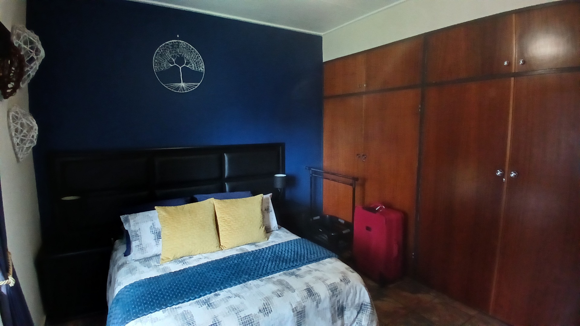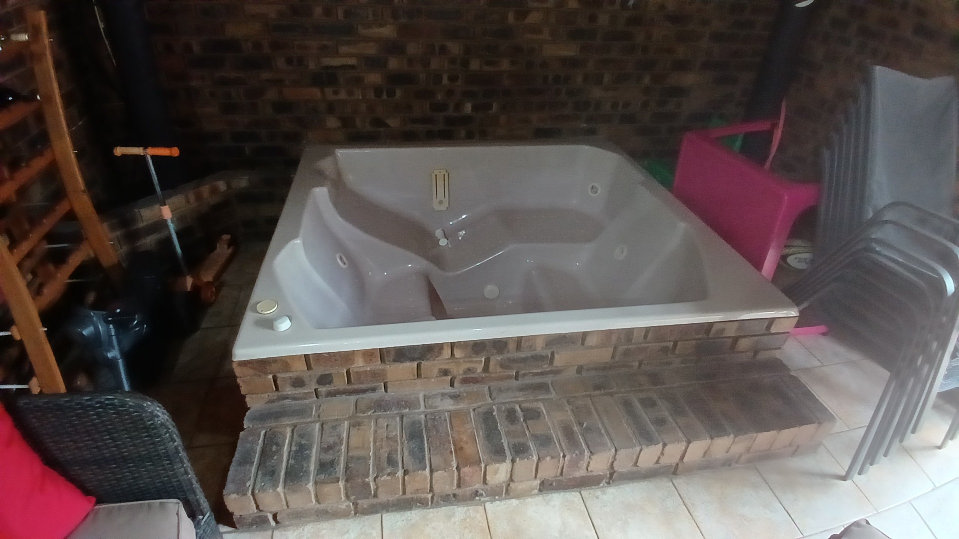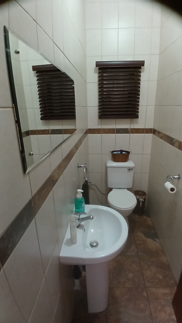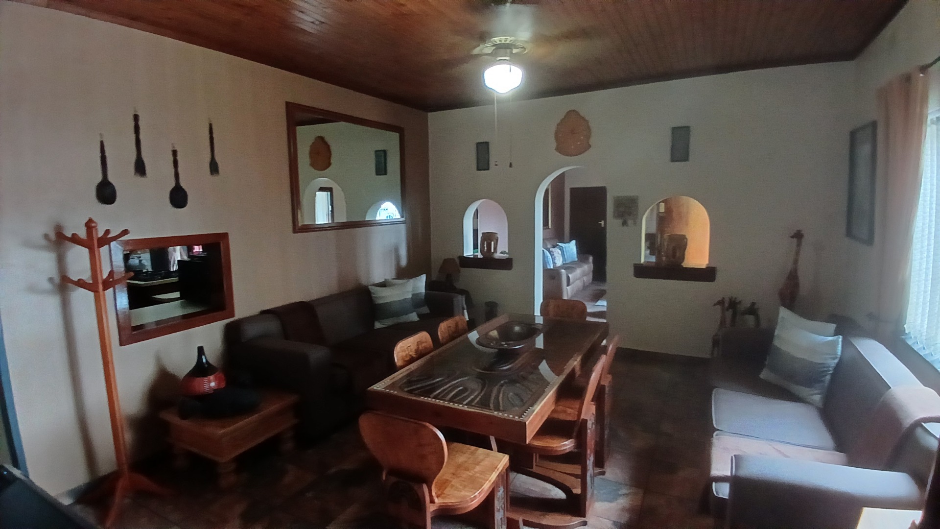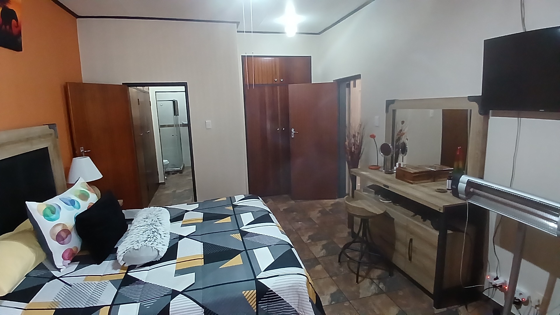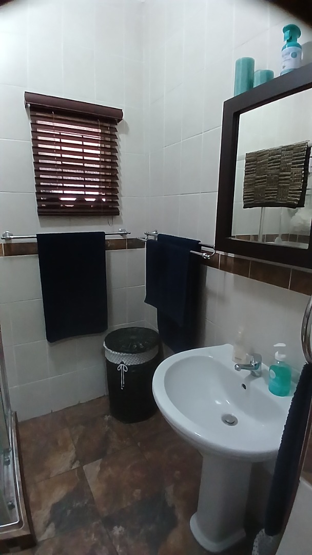 Nestled on a prominent corner lot in Pretoria Gardens, this single-story residence immediately impresses with its well-maintained landscaping, mature palm trees, and attractive tiled roof. The secure black perimeter fencing and access gate provide a welcoming yet protected entrance, setting the stage for a comfortable family lifestyle. Step inside to discover a thoughtfully designed interior spanning 436 sqm, featuring a warm and inviting ambiance. The home boasts a spacious lounge, a dedicated dining room, and an additional family TV room, offering versatile living spaces for relaxation and entertainment. Distinctive wooden panel ceilings add character throughout, complemented by ample natural light from large windows. A functional home office or study provides a quiet space for productivity, complete with built-in wooden cabinetry. The heart of the home, the kitchen, is equipped with extensive dark wooden cabinetry, generous L-shaped counter space, an integrated double oven, and a gas hob on a peninsula, perfect for culinary enthusiasts. A double stainless steel sink and ample storage ensure practicality. Accommodation comprises three comfortable bedrooms, including one with an en-suite bathroom, ensuring privacy and convenience. A total of two well-appointed bathrooms serve the household. The property sits on a generous 991 sqm erf, offering ample outdoor space. Enjoy outdoor living with a charming lapa and a built-in braai, ideal for entertaining. The well-maintained garden, complete with an irrigation system and borehole, ensures lush greenery year-round. Parking is abundant with two garages and additional space for five vehicles, all accessible via a paved driveway. For leisure, a jacuzzi provides a perfect spot for relaxation. Security is paramount, featuring electric fencing, an alarm system, CCTV, burglar bars, and a security gate, providing peace of mind. This home is also equipped for sustainable living with a solar geyser, water tanks, a battery inverter, and solar panels, significantly reducing utility costs. Fibre connectivity is available, catering to modern communication needs. Located in the metropolitan area of Pretoria, Pretoria Gardens offers a convenient and established residential setting, providing easy access to local amenities and transport routes. Key Features: * 3 Bedrooms, 2 Bathrooms (1 En-suite) * Spacious Lounge, Dining Room & Family TV Room * Dedicated Home Study * Well-equipped Kitchen with Integrated Double Oven & Gas Hob * Lapa with Built-in Braai & Jacuzzi * 2 Garages & 5 Additional Parking Spaces * Advanced Security: Electric Fencing, Alarm, CCTV, Burglar Bars * Sustainable Living: Solar Geyser, Solar Panels, Battery Inverter, Borehole, Water Tanks * Fibre Ready * Pets Allowed