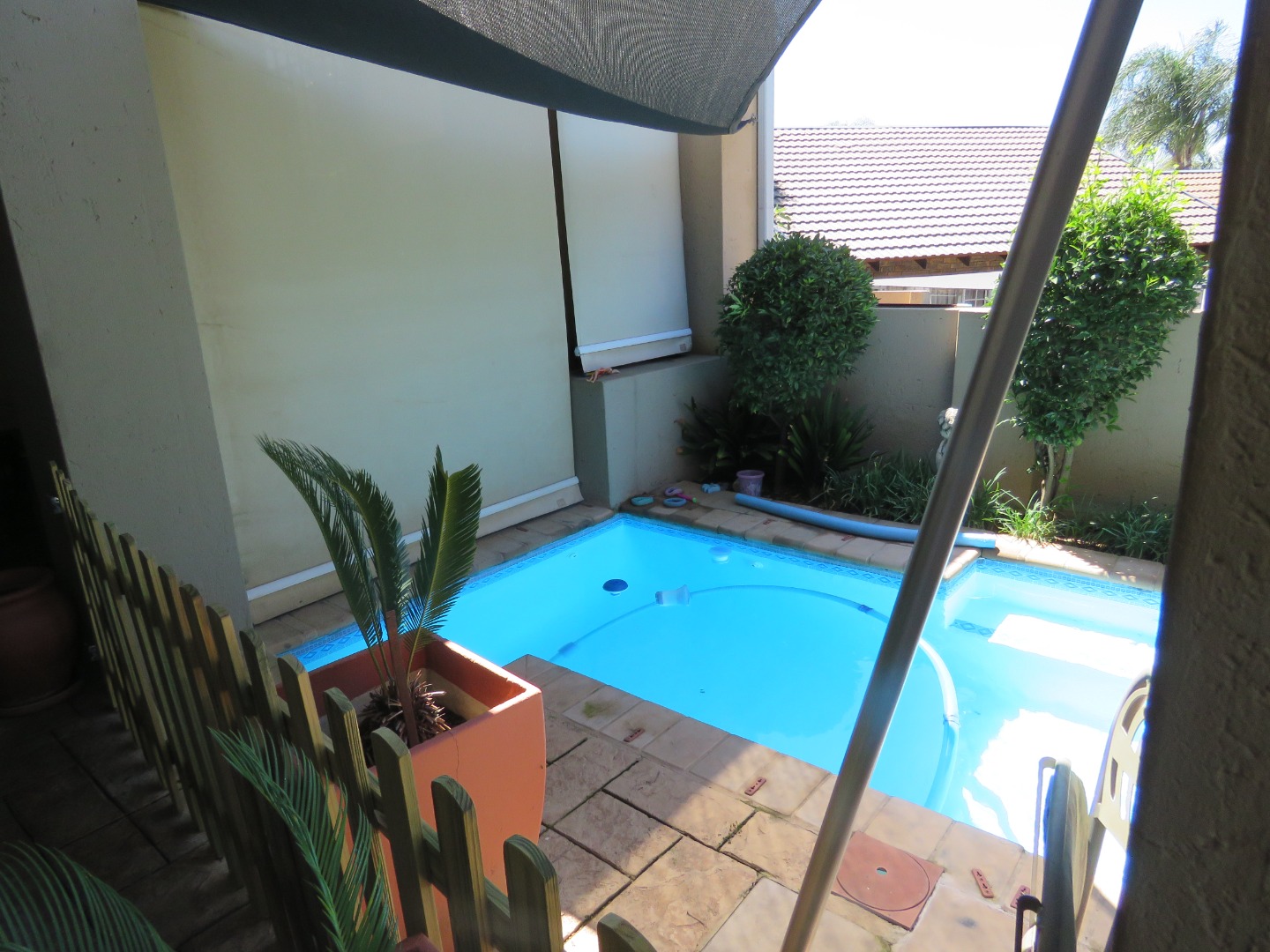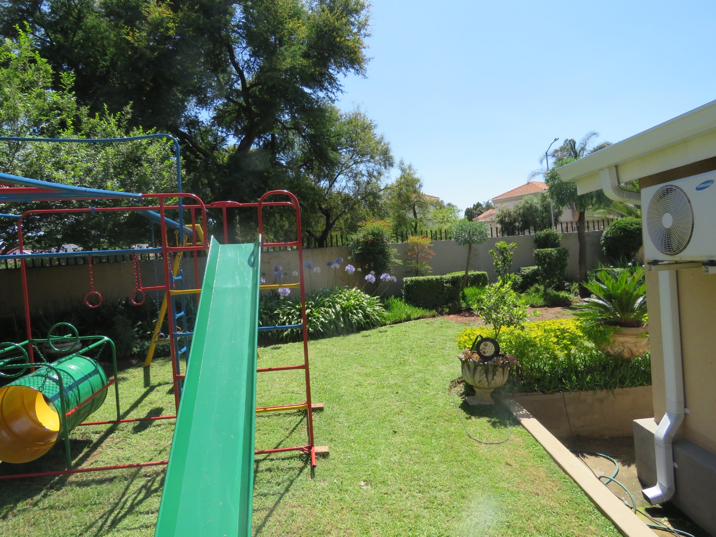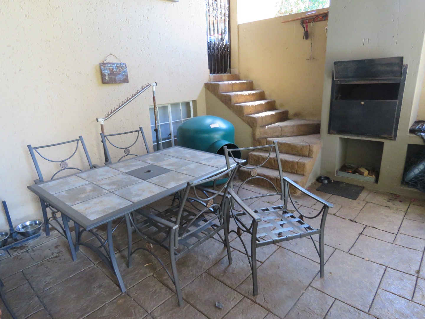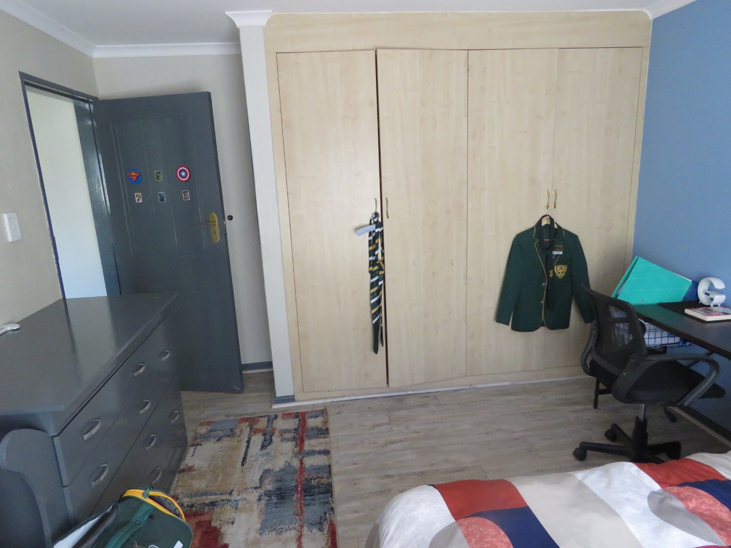 The exterior boasts a private patio, a refreshing swimming pool, and a lapa with a built-in braai, perfect for outdoor leisure. The 1081 sqm erf includes a well-maintained garden, paving, and a wendy house. This wendy house was equiped with electricity. A double garage provides secure parking, complemented by staff quarters and outside toilet with shower.