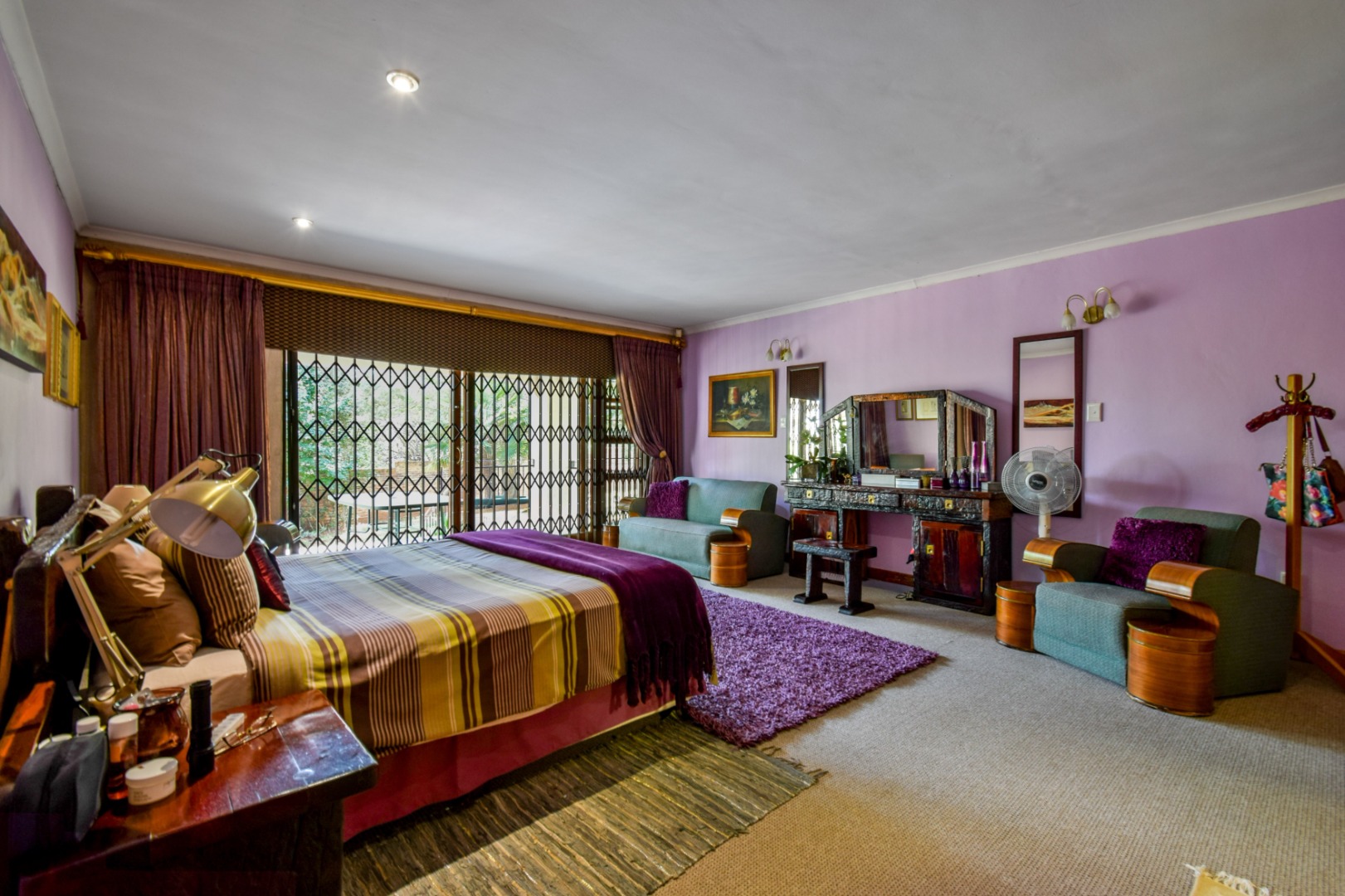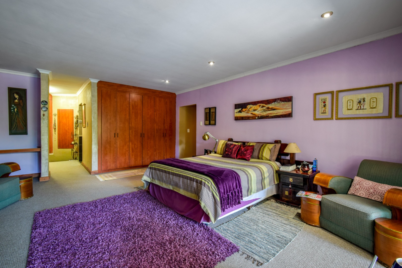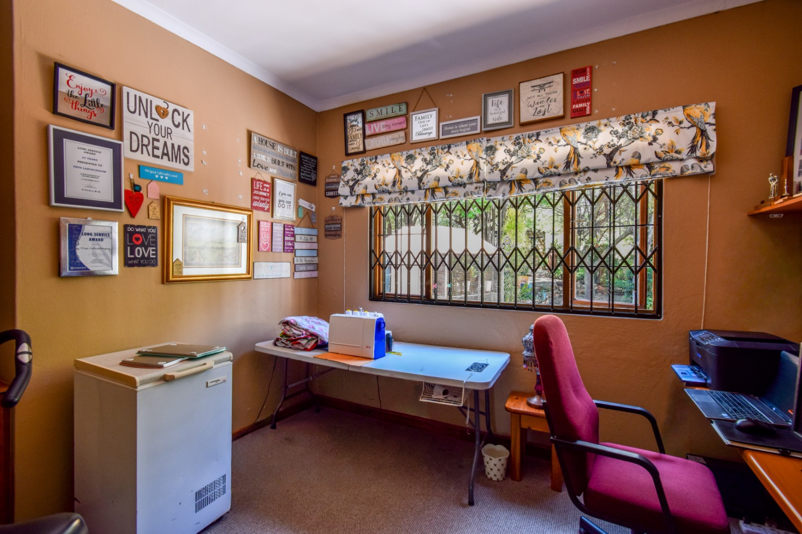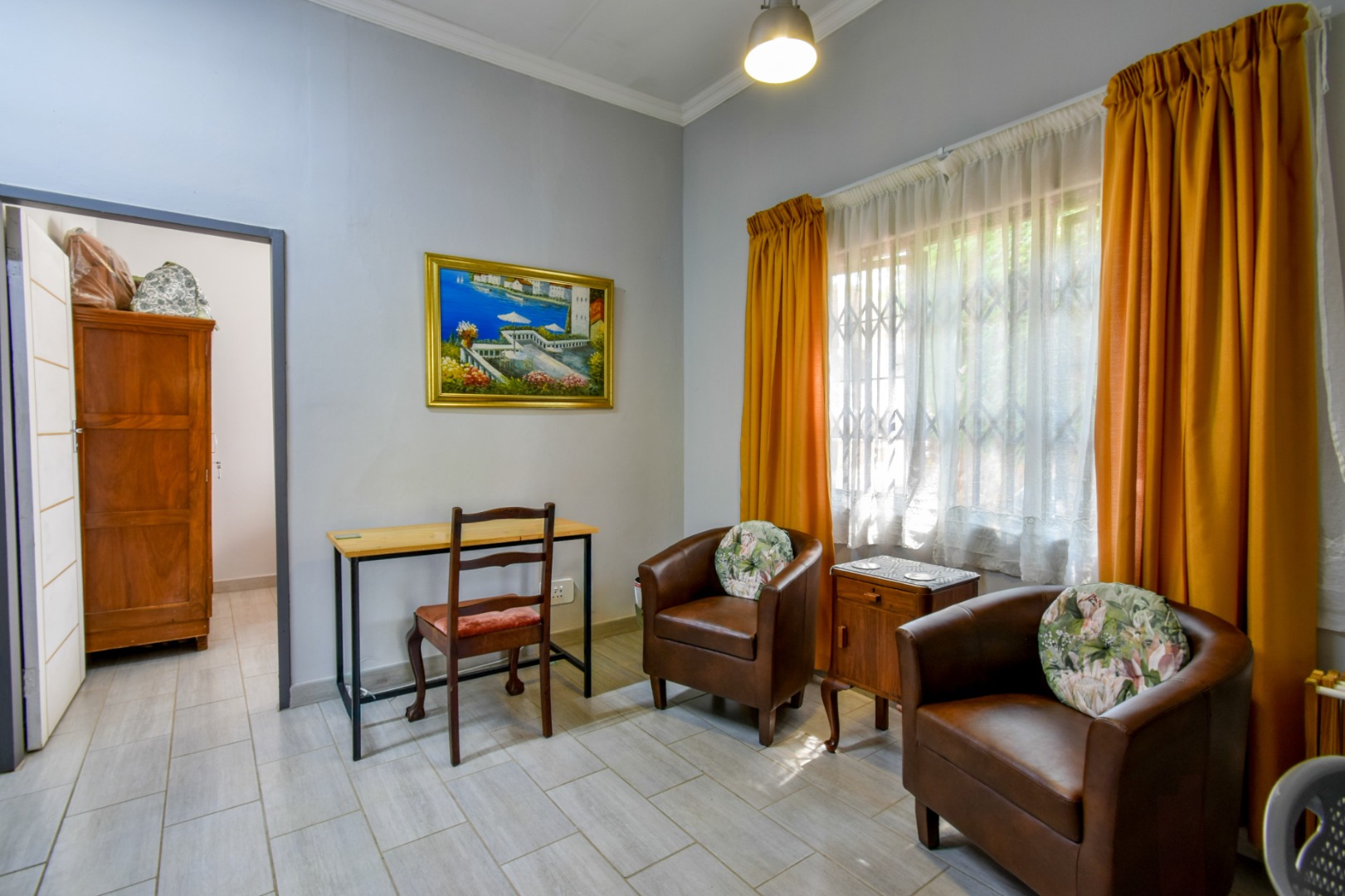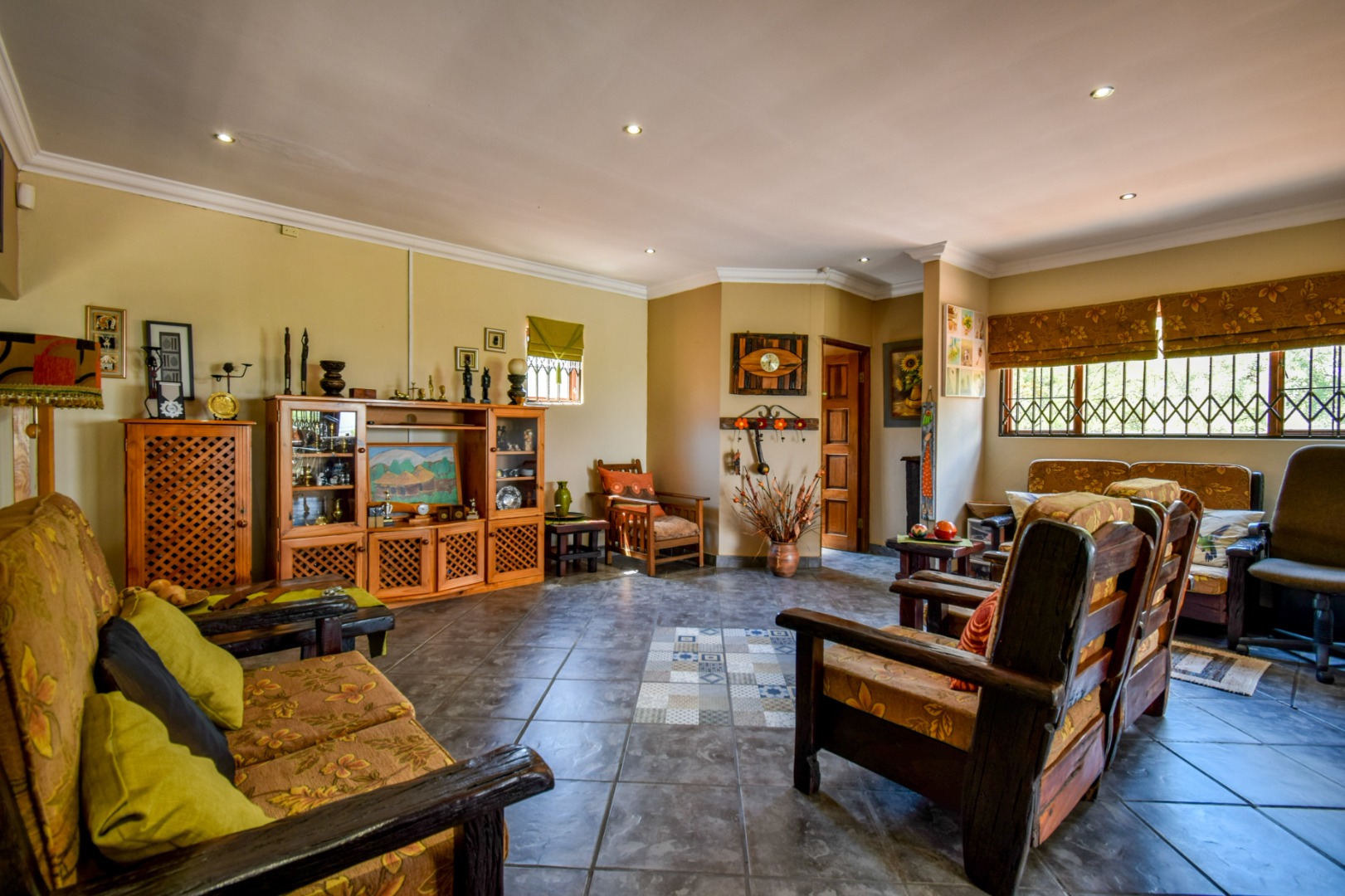 Upstairs, an impressive entertainment area awaits, boasting a lounge, built-in braai, kitchenette, and bathroom. Sliding doors open onto a balcony overlooking the property and the scenic Rietvlei Dam — the perfect setting for relaxed gatherings with family and friends.