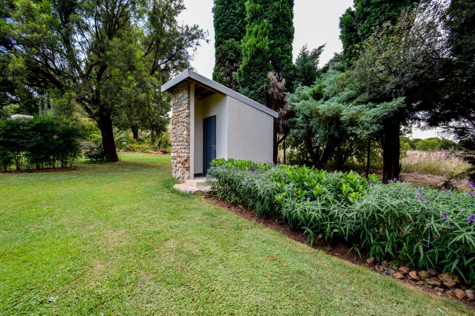Additional features of the main house include a cellar with exterior access, a storage facility, an outside bathroom, and burglar bars fitted to every window for enhanced security.