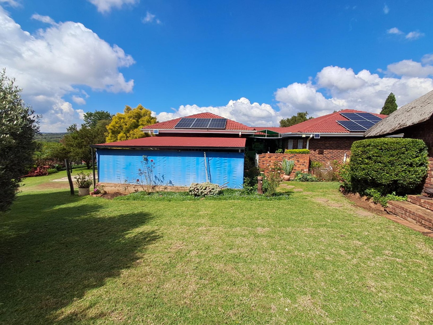 Embracing sustainable living, this home is equipped with solar panels, a solar geyser, a battery inverter, a borehole, and water tanks, promoting self-sufficiency. Additional features include a Wendy house, staff quarters, domestic rooms, outside toilets, a built-in bar, and a paved driveway. This property truly combines the best of country charm with modern conveniences.