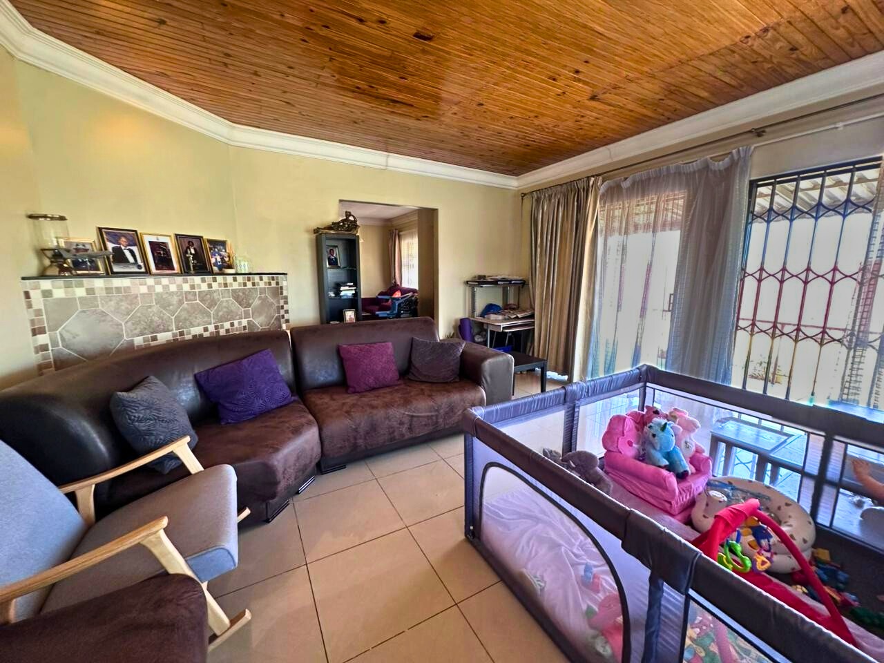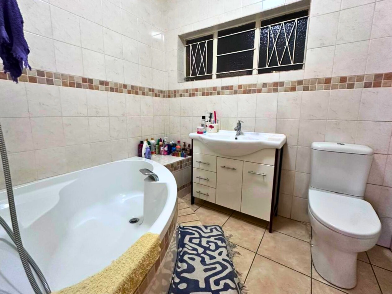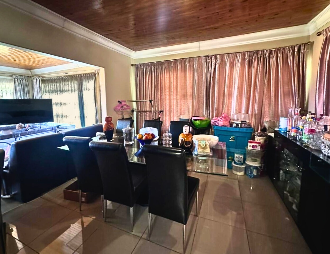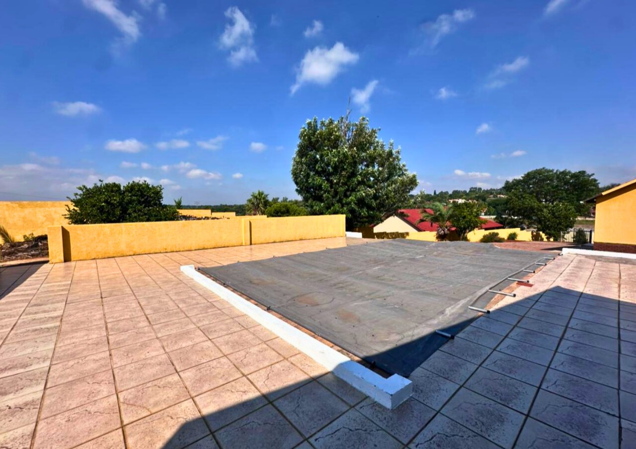Discover this distinctive two-story residence in the suburban enclave of Waterkloof Ridge, Pretoria. Set on a generous 1999 sqm erf, this 349 sqm home presents a unique architectural presence with a prominent overhanging roof and an expansive covered top-floor balcony, ideal for outdoor living. A paved driveway leads to multiple garage doors, ensuring ample parking. Inside, the home offers versatile living with two lounges, a dedicated dining room, and an additional family TV room. Tiled flooring throughout the main areas ensures practicality and easy maintenance.