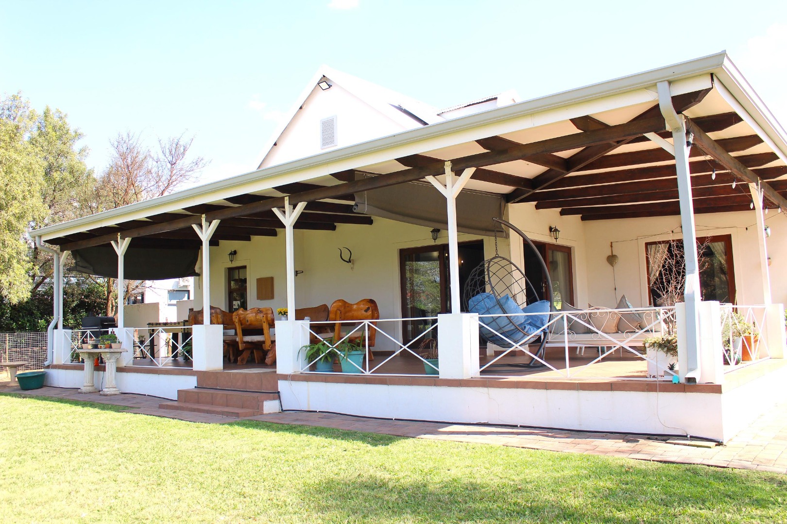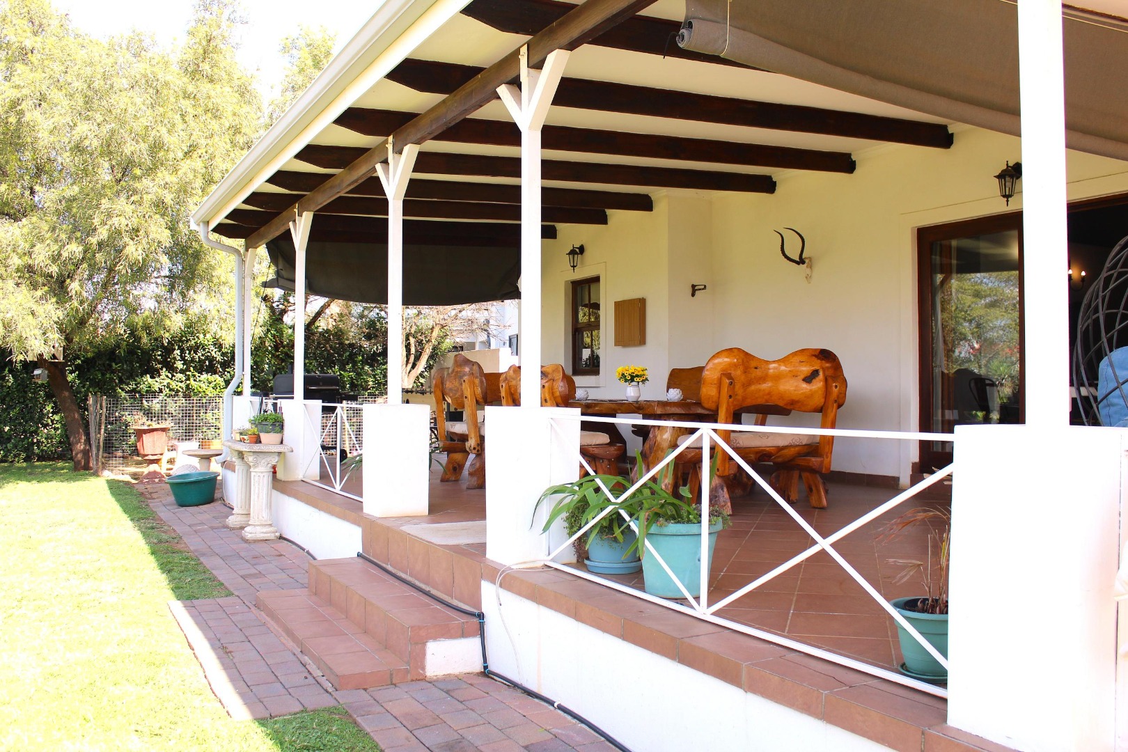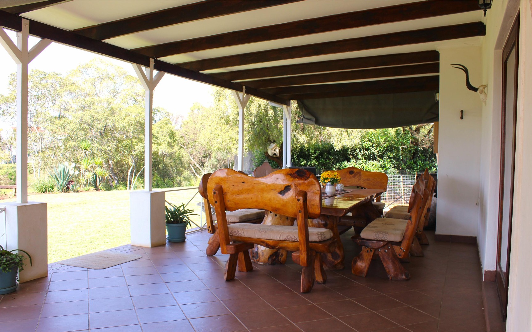The veranda opens out to a spacious garden from which birds, free-roaming animals can often be observed.