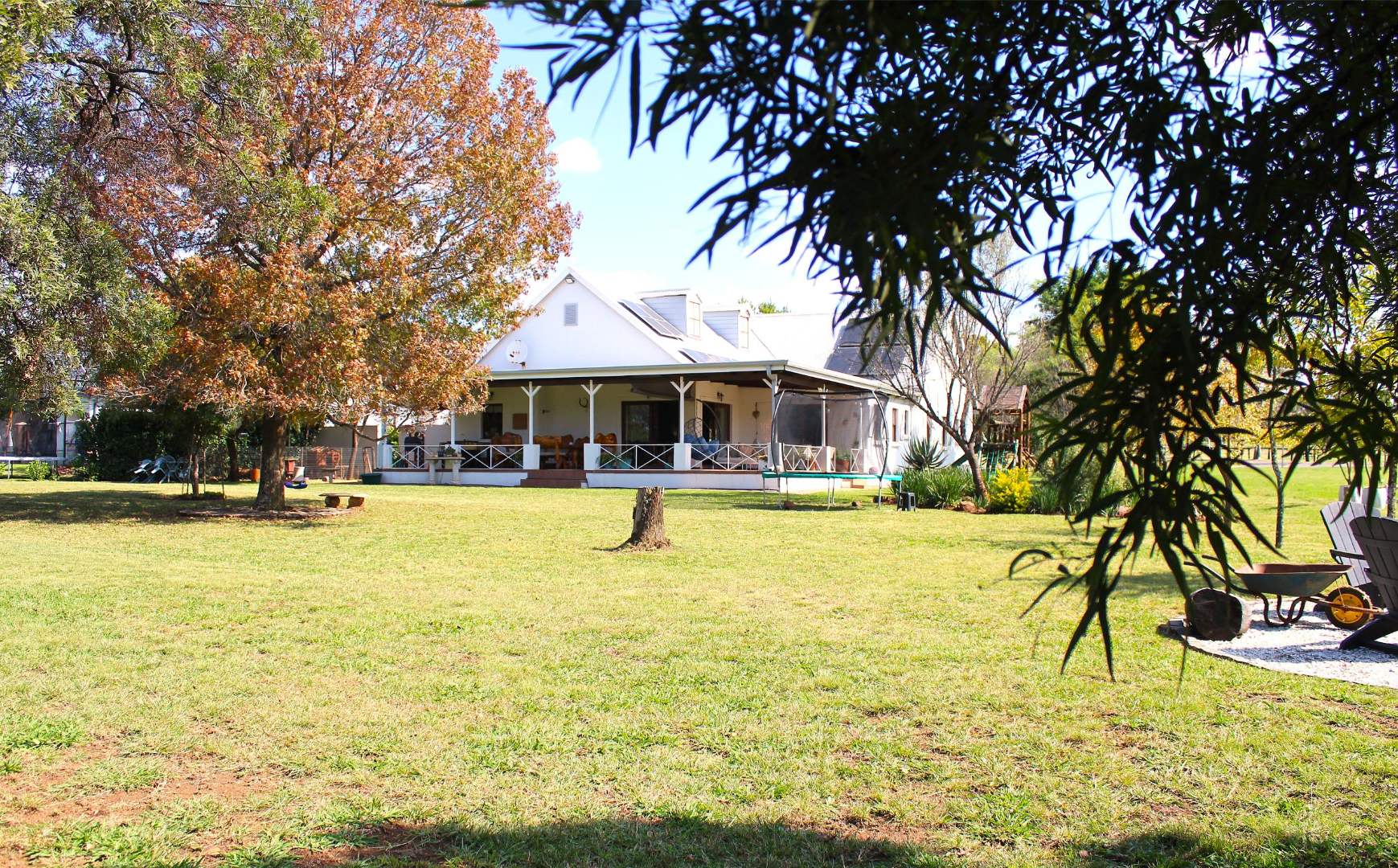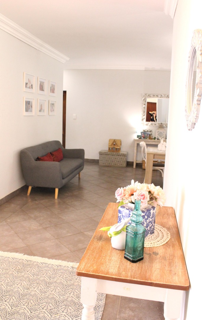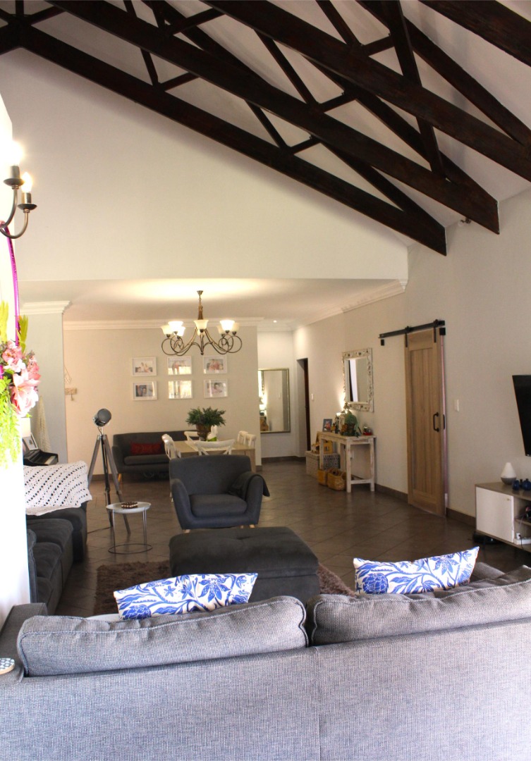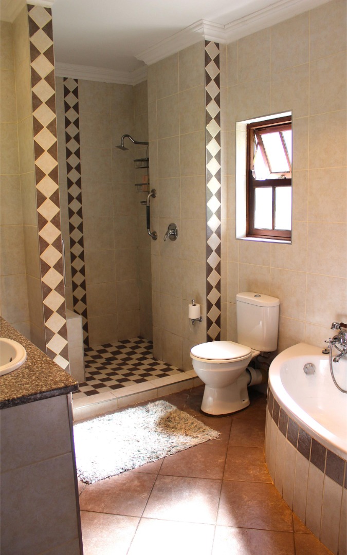 The home offers three spacious bedrooms all with en-suite bathrooms, large open-plan living areas, a big farm style kitchen fitted with a huge laundry and scullery area, an automated double garage with extra storage space, ample outside parking spaces, an enclosed courtyard with a vegetable garden, a Jojo tank and an inverter with solar panels and an outside toilet and shower area.