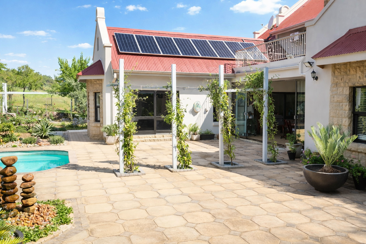 * Large balcony with built-in braai