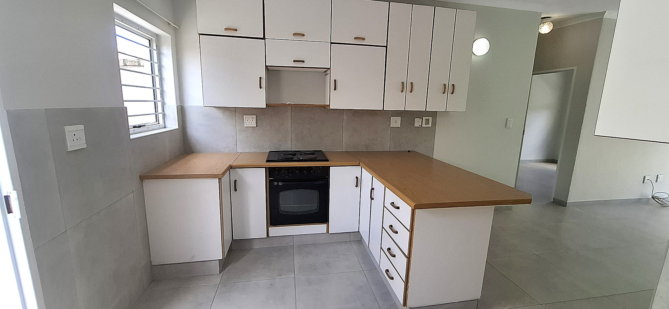 This newly renovated, move-in-ready unit offers two north-facing bedrooms with tiled surfaces, a spacious open-plan living and dining area, and a modern open-plan kitchen with space for a fridge/freezer, washing machine and dishwasher. There are two contemporary bathrooms, one fitted with a shower and the en-suite with a bath. The home includes ample storage space with built-in cupboards.
