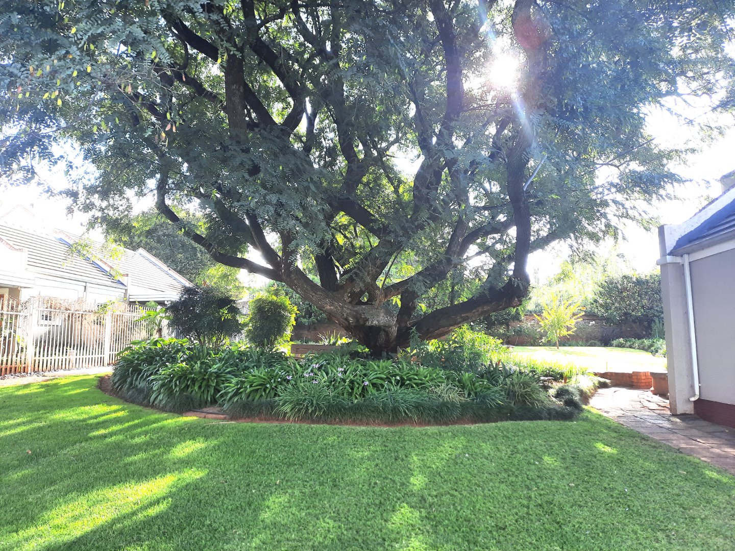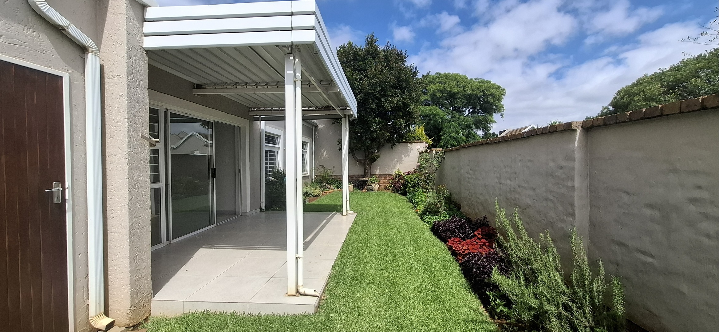 A covered patio area overlooks a small, easily maintainable garden, and each unit is fitted with its own borehole connection for convenient gardening.