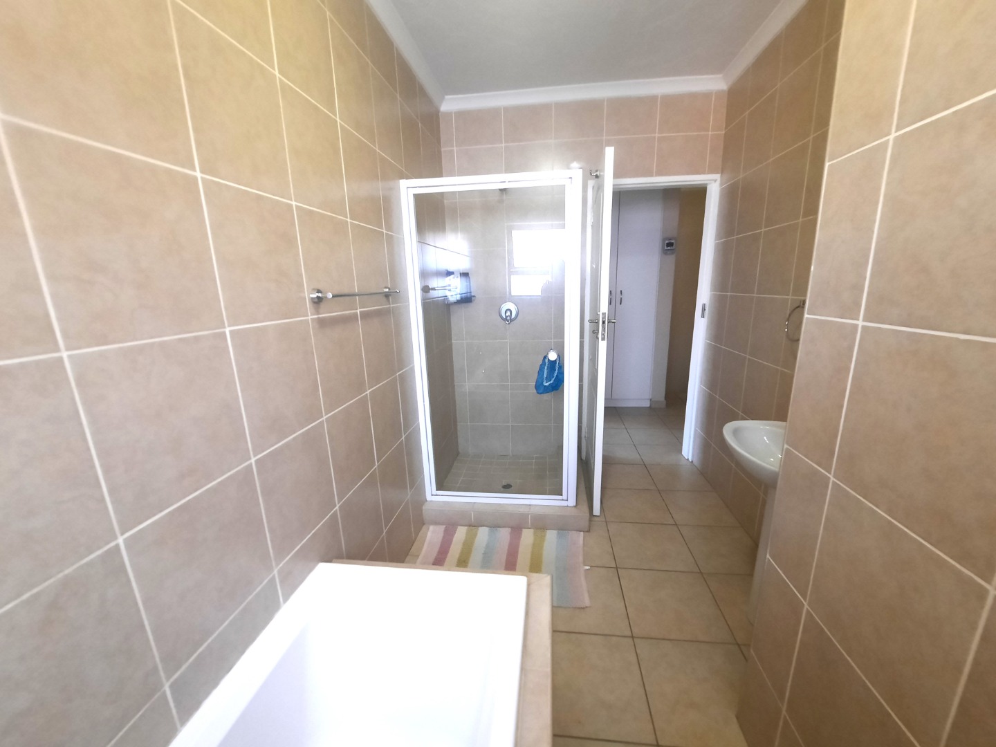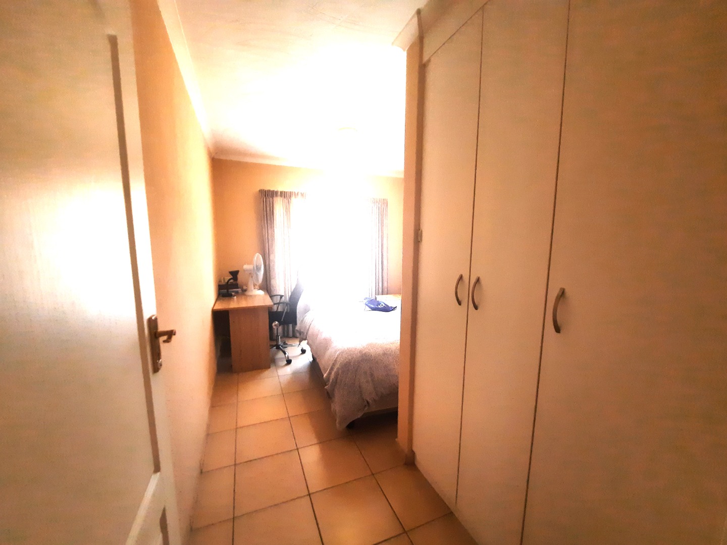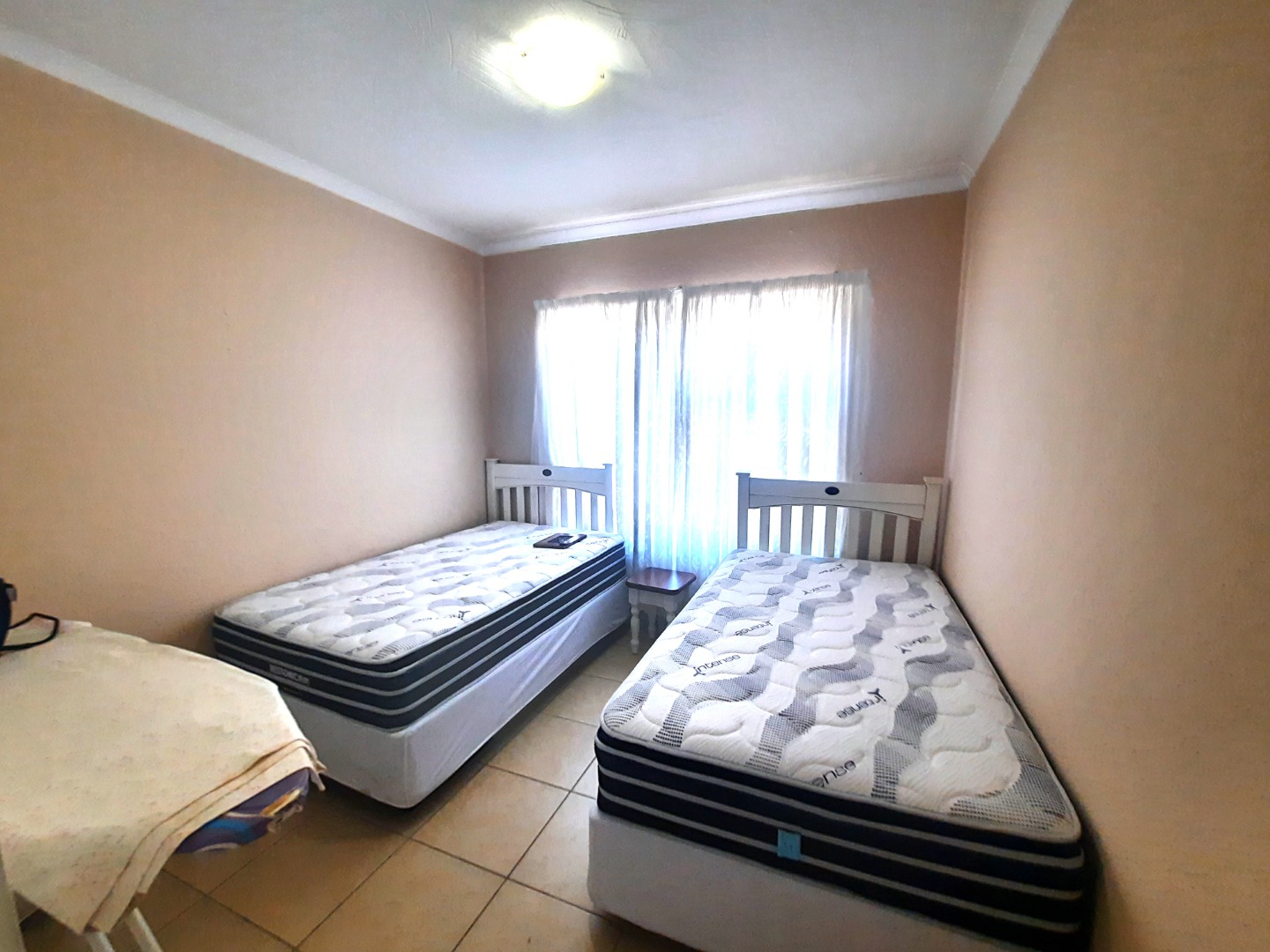 Upon entering, you are greeted by an inviting open-plan living and dining area, characterized by durable tiled flooring that extends throughout the main spaces.