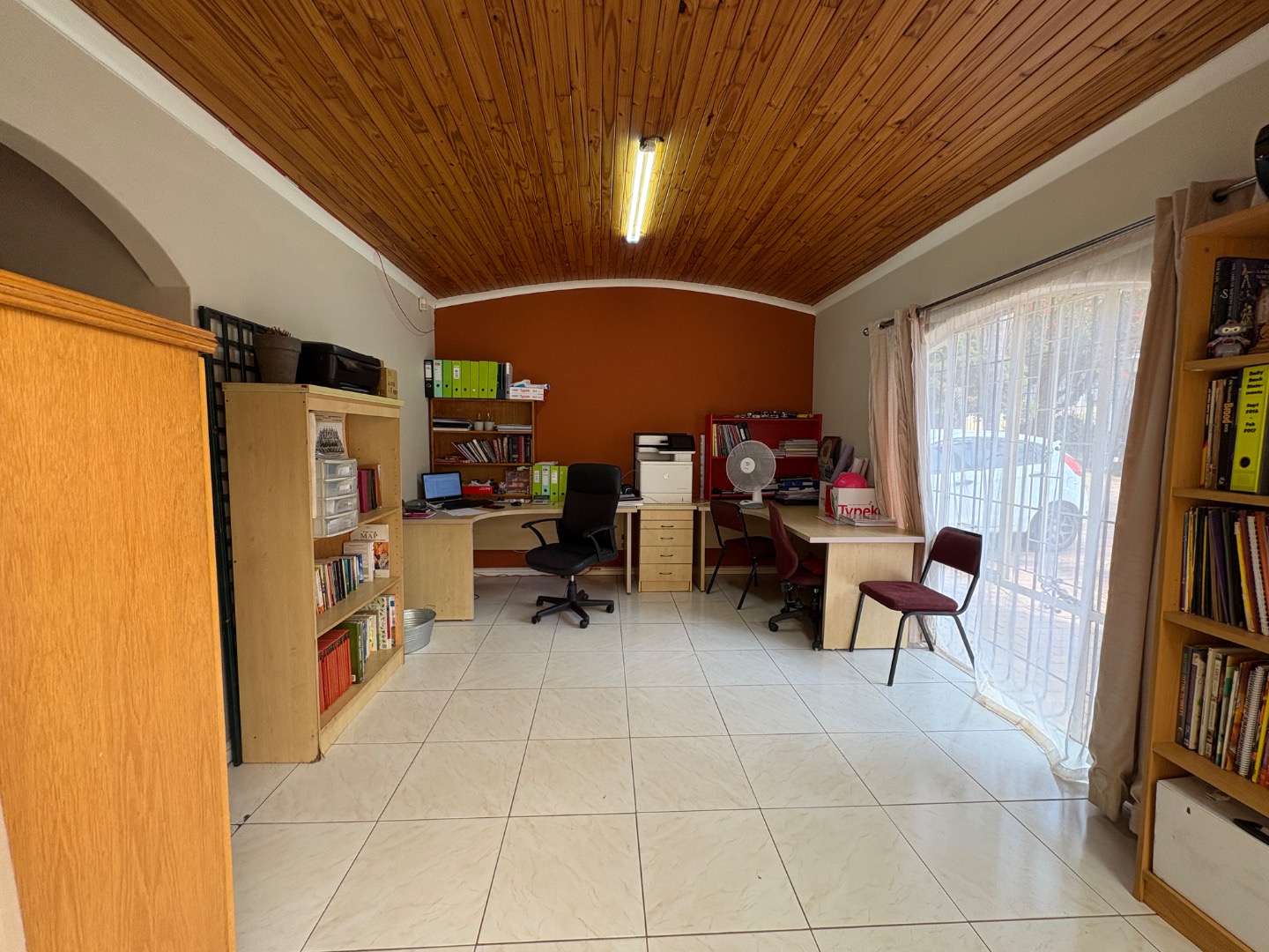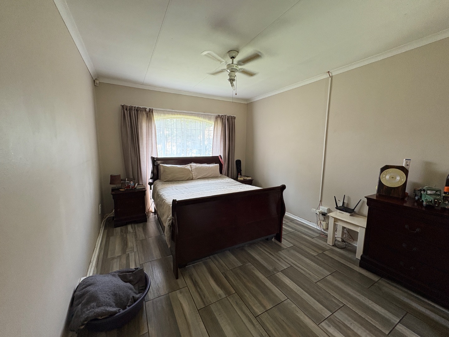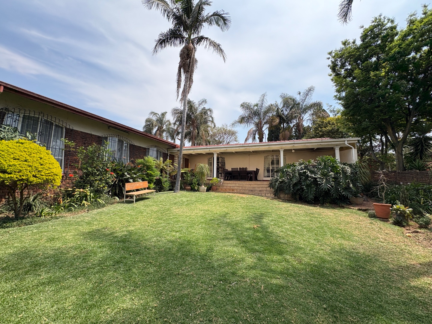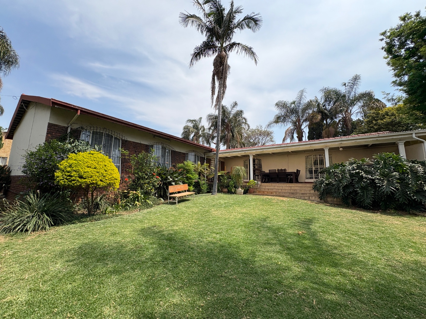 This single story 4-bedroom family home, nestled on a generous 1242 sqm erf in Wingate Park, Pretoria, offers an inviting lifestyle. The property boasts a large, well-maintained garden with mature trees and a sparkling pool, perfect for outdoor enjoyment. A spacious covered patio provides an ideal setting for entertaining or relaxing, overlooking the lush surroundings.