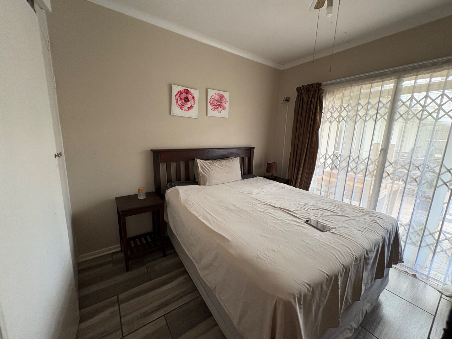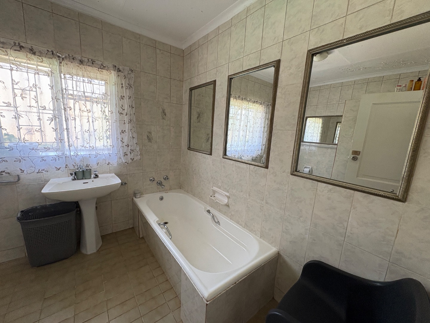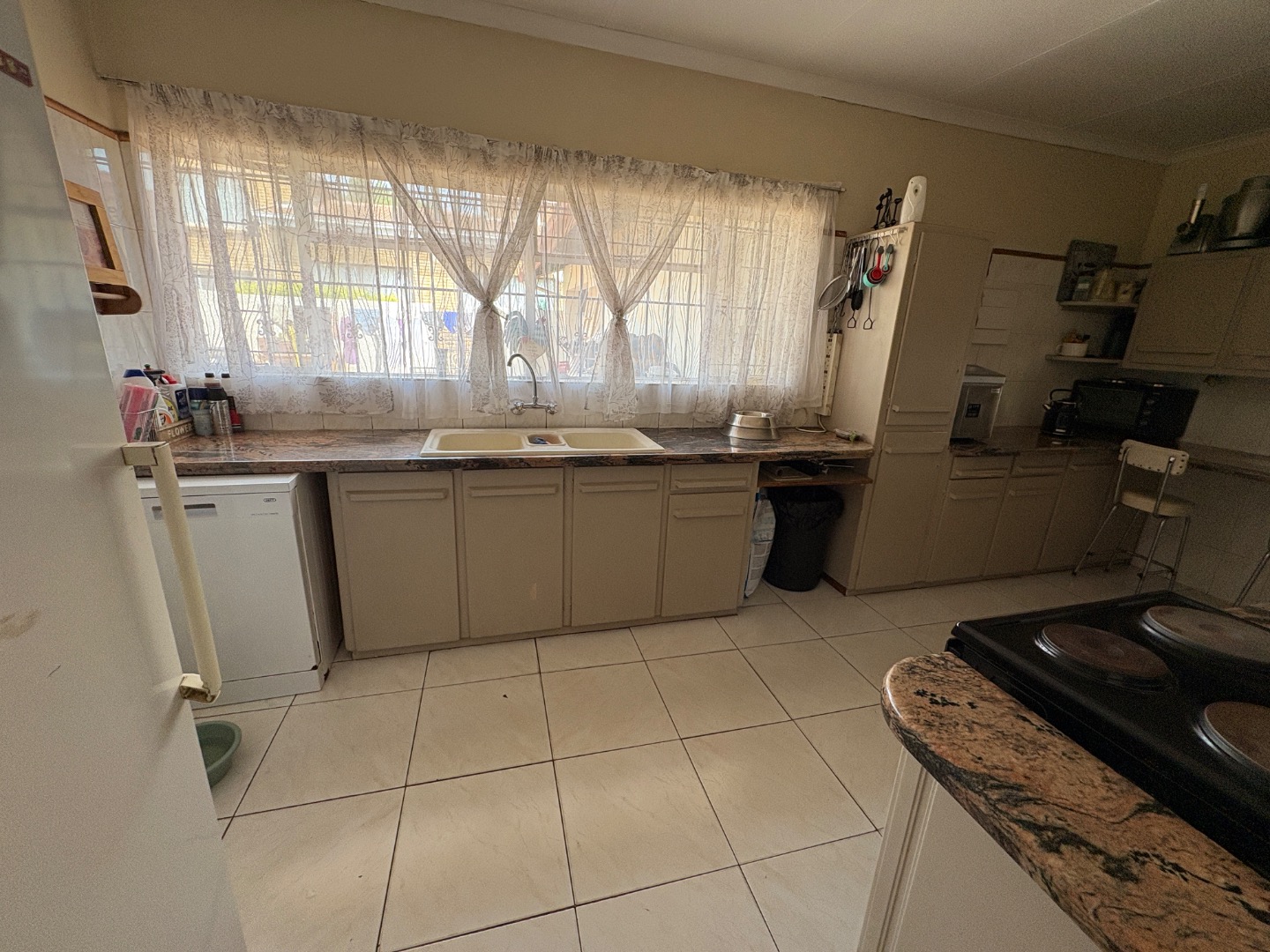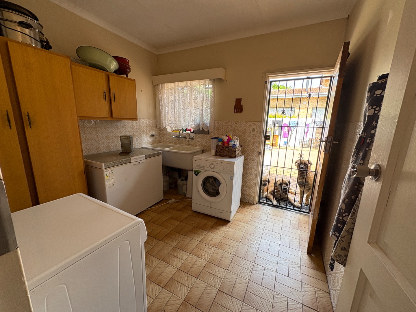 This single story 4-bedroom family home, nestled on a generous 1242 sqm erf in Wingate Park, Pretoria, offers an inviting lifestyle. The property boasts a large, well-maintained garden with mature trees and a sparkling pool, perfect for outdoor enjoyment. A spacious covered patio provides an ideal setting for entertaining or relaxing, overlooking the lush surroundings.