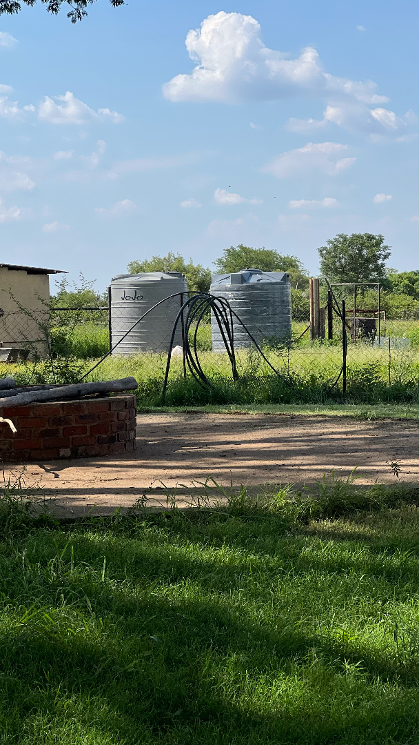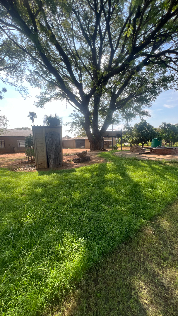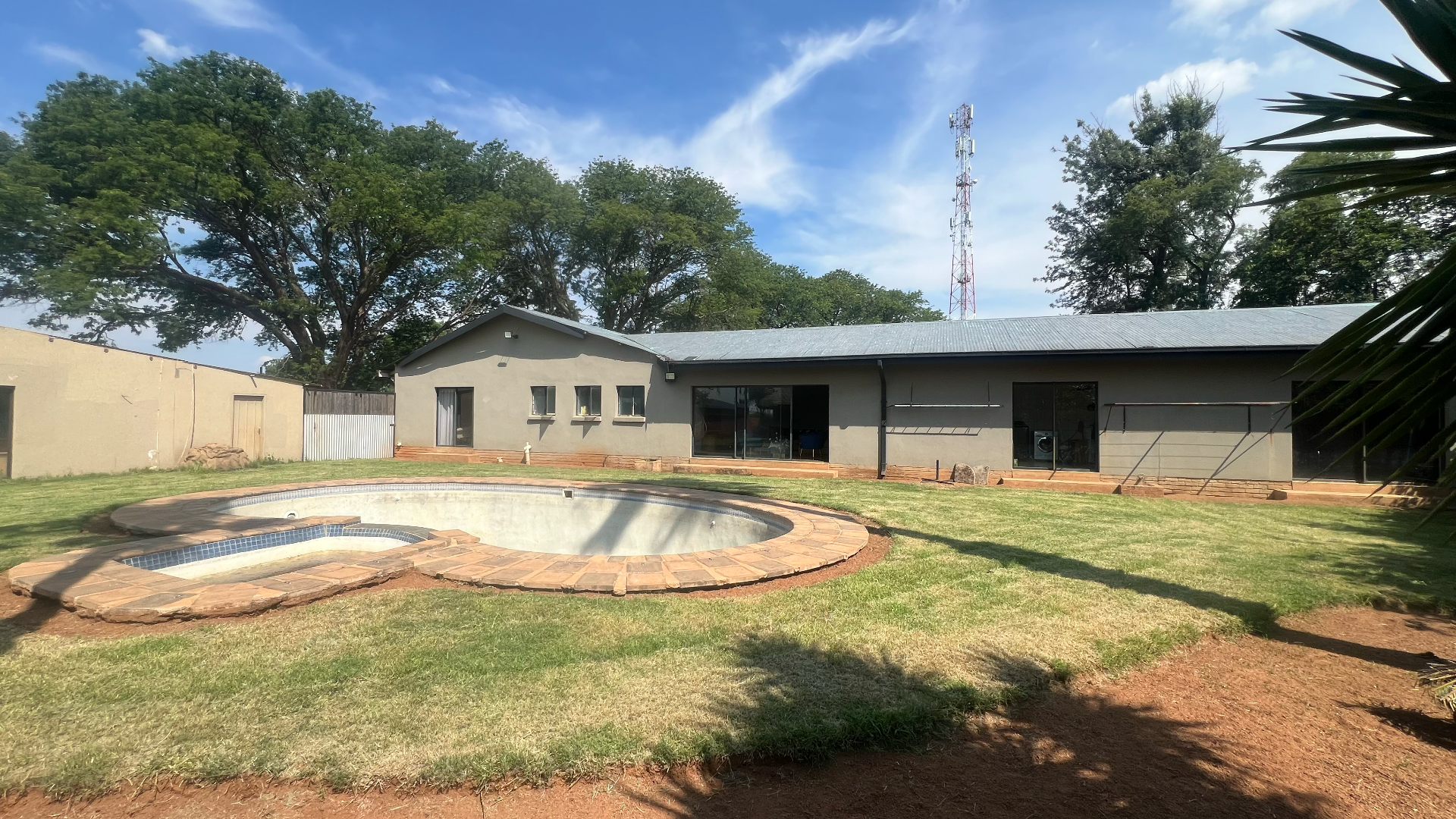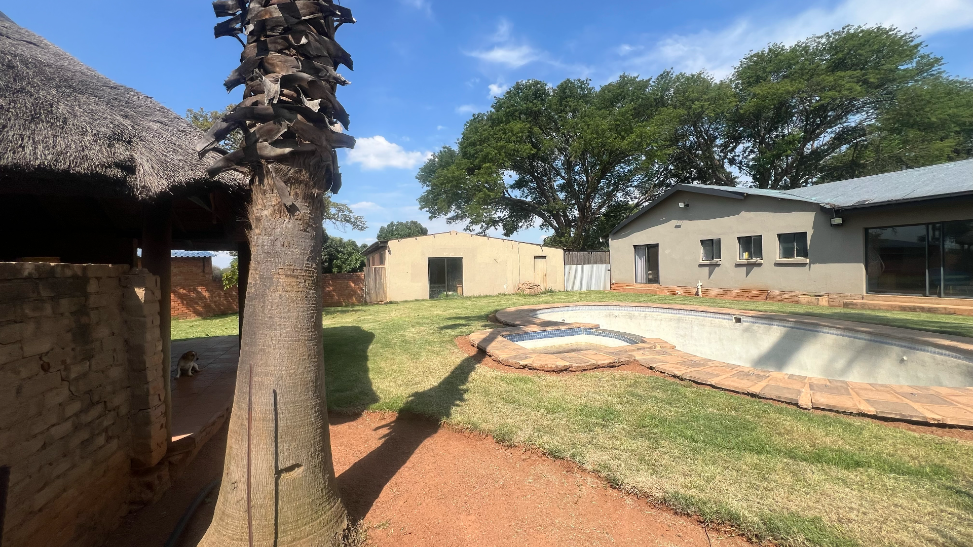 Outdoors, you’ll find a sparkling swimming pool, perfect for relaxation or weekend gatherings. The property is fully supported by a reliable borehole, ensuring ample water supply for household and agricultural use.