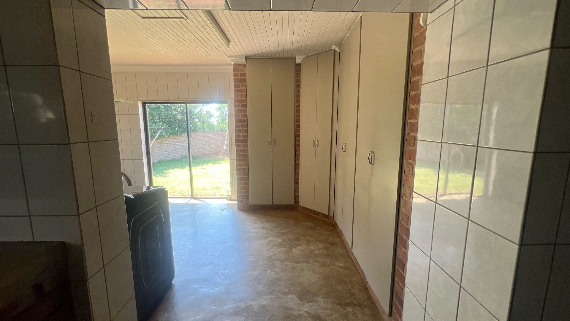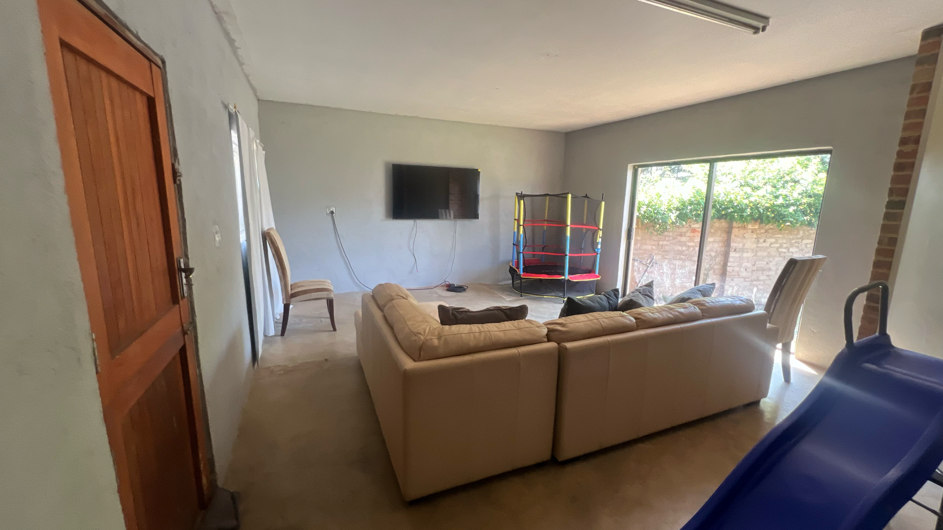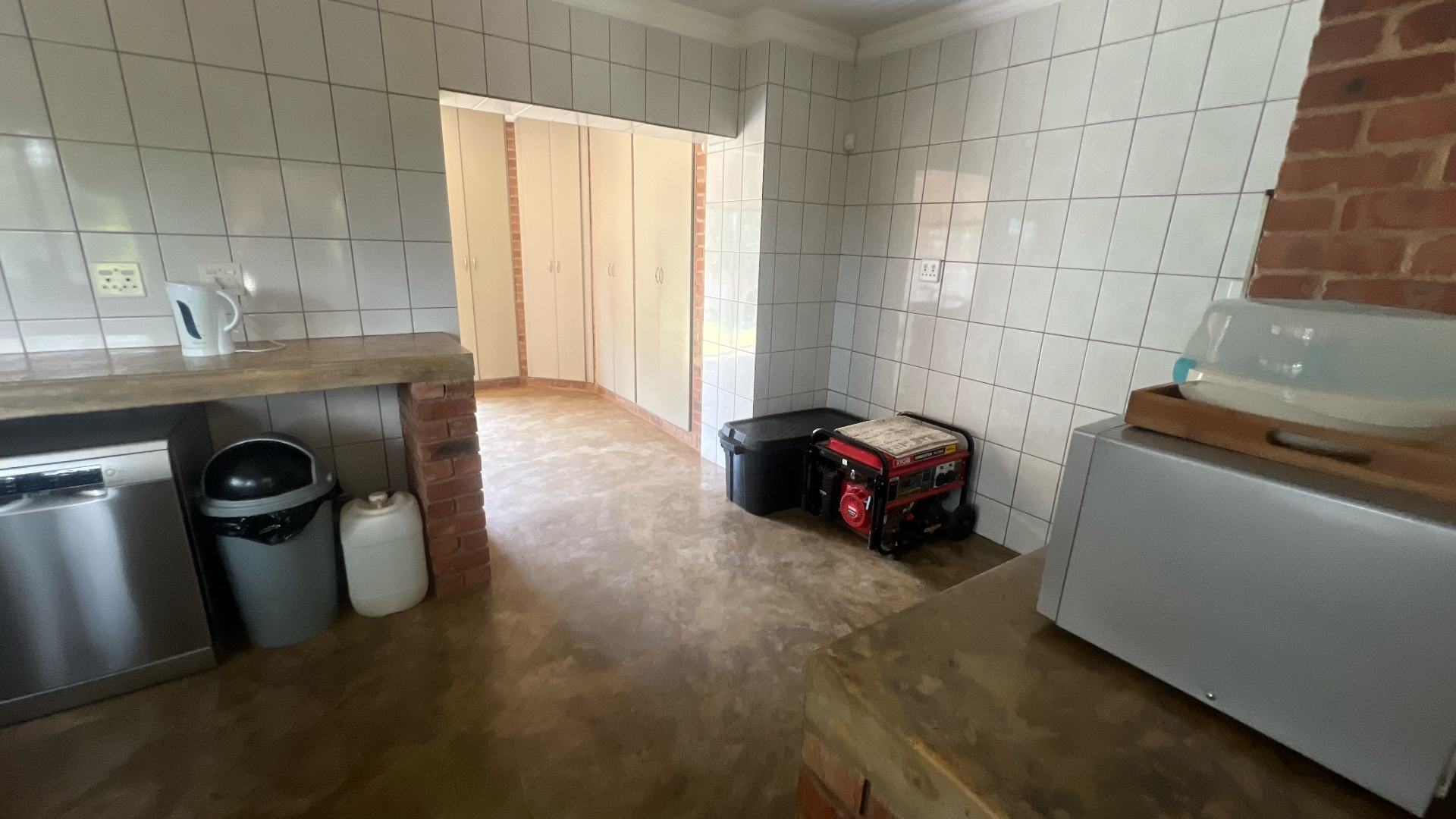 Outdoors, you’ll find a sparkling swimming pool, perfect for relaxation or weekend gatherings. The property is fully supported by a reliable borehole, ensuring ample water supply for household and agricultural use.