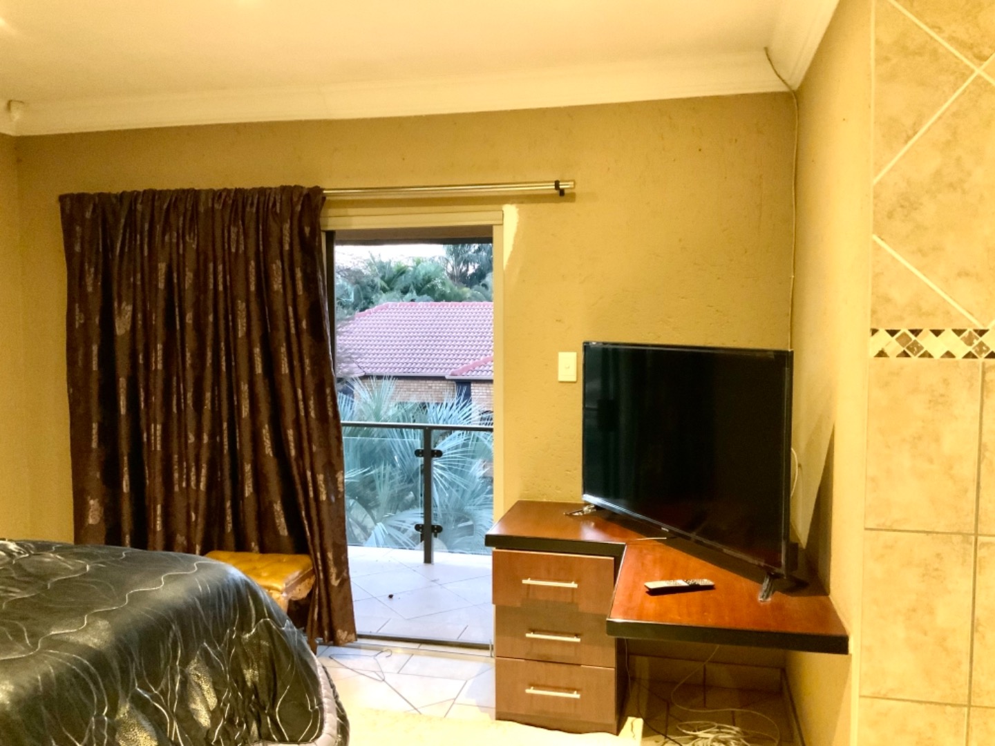 Main bedroom with balcony overlooking the beautiful manicured lawn and surroundings.