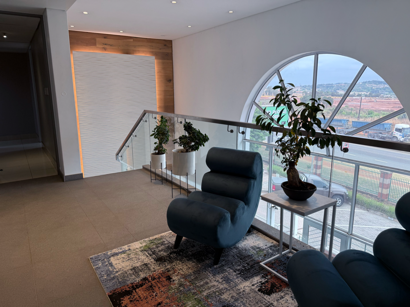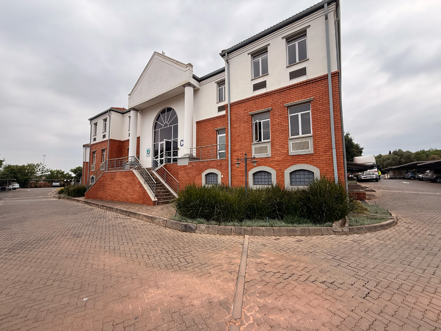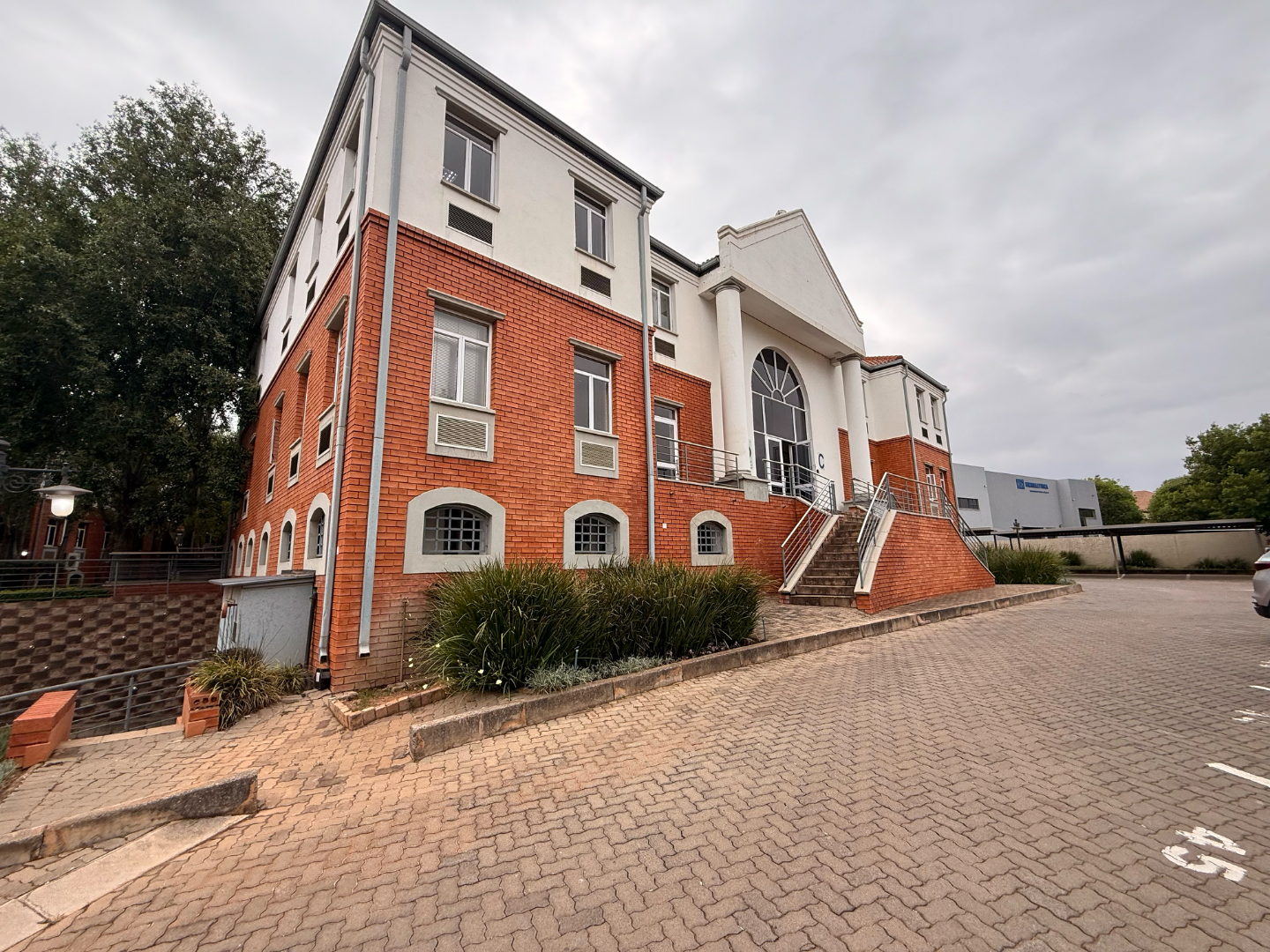 This exceptional commercial rental opportunity presents a modern and professional environment in the sought after Irene suburb of Centurion. Spanning a floor size of 330 sqm within a substantial 6500 sqm erf, the multi-story building boasts a striking red brick and white facade, complemented by a grand, columned main entrance and an inviting staircase. The exterior is further enhanced by mature trees and well maintained landscaping, creating a distinguished first impression for clients and employees alike.
