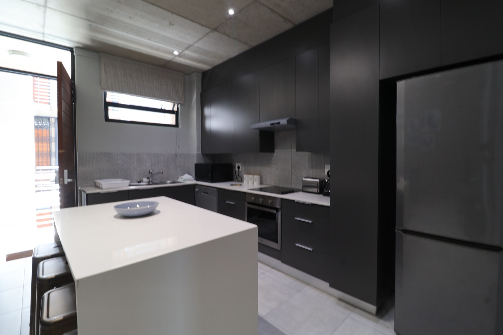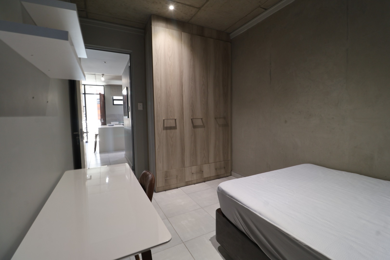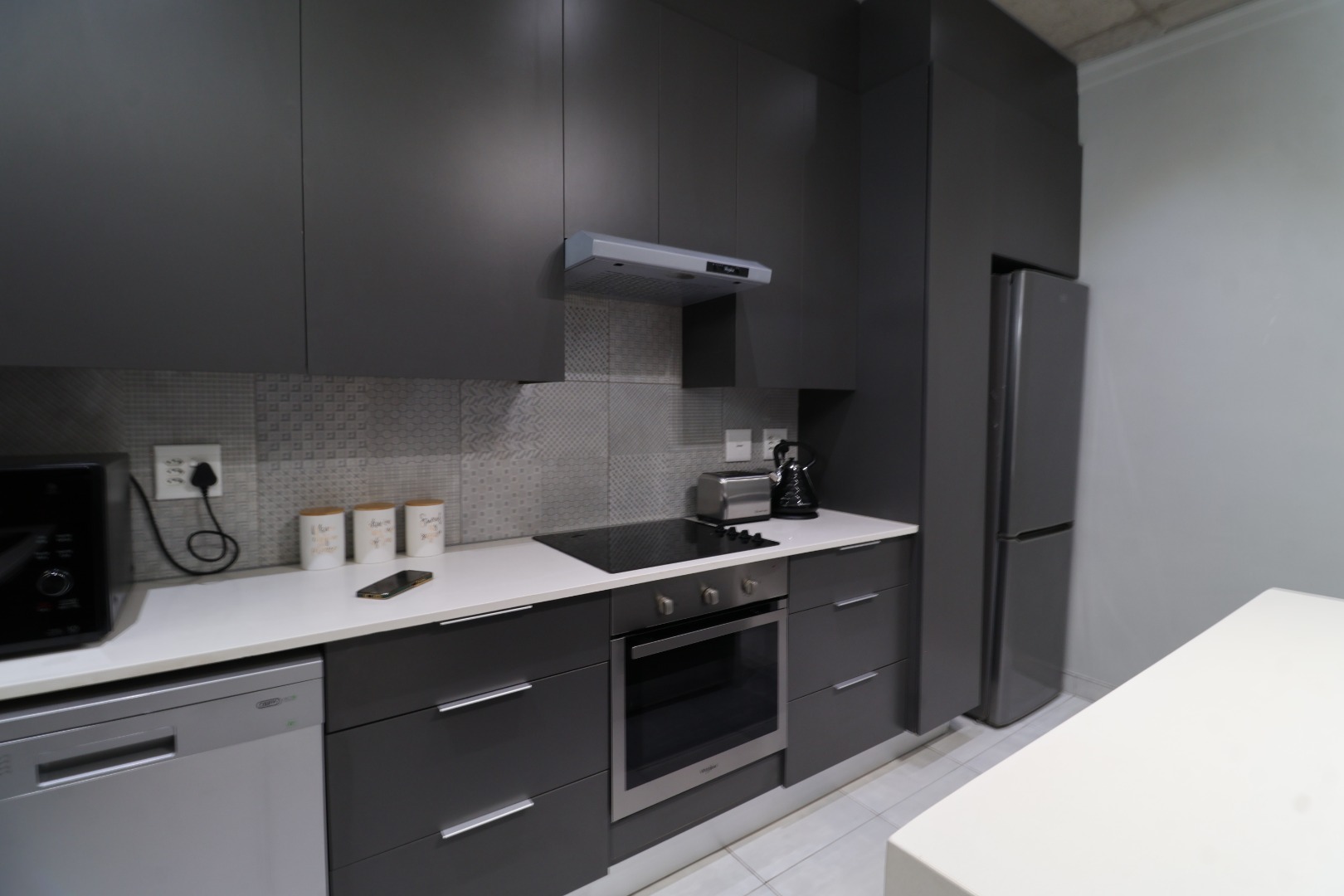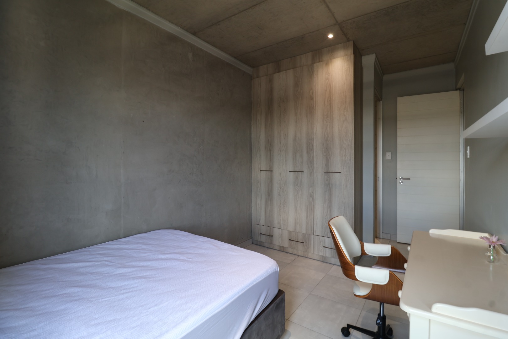 Discover contemporary living in this fully furnished 2-bedroom, 2-bathroom apartment located in Brooklyn, Pretoria. The interior boasts a sleek, industrial-inspired design with exposed concrete ceilings and walls, complemented by clean white tiled flooring throughout. The modern kitchen is a highlight, featuring dark grey cabinetry, white countertops, and a large island with seating, perfectly equipped with integrated stainless steel appliances including an oven, cooktop, dishwasher, and fridge. A dedicated laundry nook houses a built-in Samsung washer and dryer for ultimate convenience. Each bathroom is equally stylish, offering grey tiled walls, walk-in showers with glass enclosures, and unique black and white checkered floors, alongside contemporary fixtures. Designed for a dynamic lifestyle, this apartment is ideal for students or young professionals seeking a lock-up-and-go residence within a vibrant university community. The furnished setup ensures a seamless move-in experience, while the complex offers an array of amenities including a gym, swimming pool, and deck for relaxation. A communal braai area provides a perfect spot for social gatherings. The property is also wheelchair friendly, ensuring accessibility for all residents. Security is paramount within this complex, featuring 24-hour security, a manned security post, access gates, electric fencing, and CCTV surveillance. The secure environment provides peace of mind, allowing residents to focus on their studies or careers. High-speed fibre internet connectivity is available, catering to modern digital needs, and lifts provide easy access to all floors. Situated in the sought-after suburb of Brooklyn, Pretoria, this location offers unparalleled convenience for those associated with the university and college community. Enjoy easy access to academic institutions, local amenities, and transport links. Key Features: * 2 Bedrooms, 2 Bathrooms * Fully Furnished * Modern Kitchen with Integrated Appliances * In-unit Laundry (Washer/Dryer) * Gym, Pool & Deck Access * 24-Hour Security & Fibre Ready * Wheelchair Friendly * Communal Braai Area * 2 Parking Bays