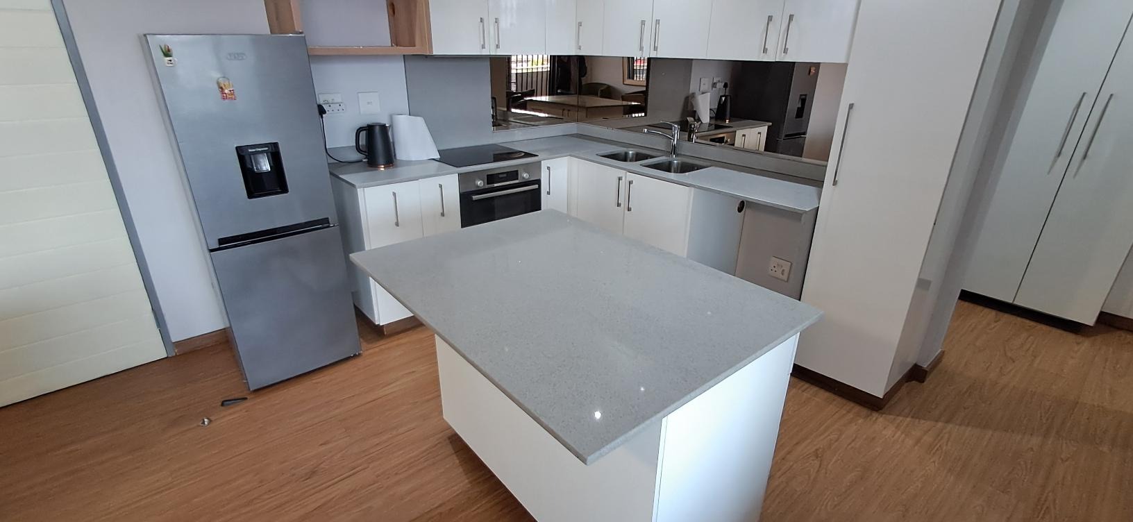 The kitchen is modern in design and is fitted with granite tops and lots of built-in cupboards.