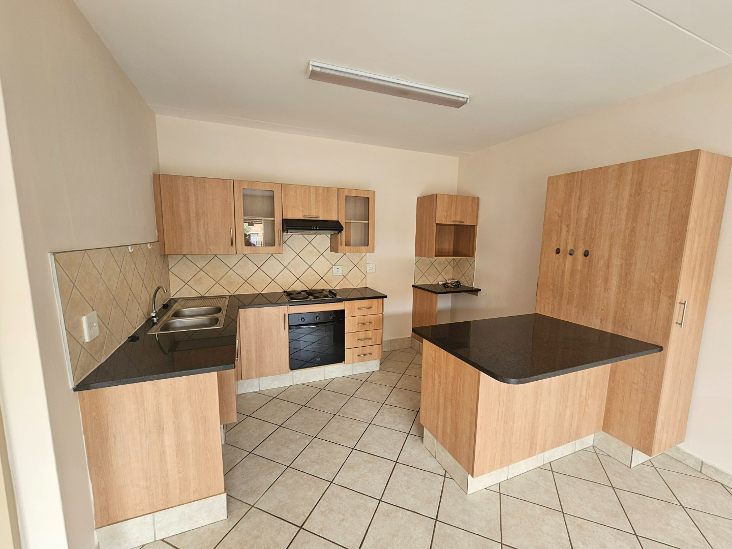 Discover modern living in this well-appointed 1-bedroom, 1-bathroom apartment available for rent in the secure Elarduspark complex, Pretoria. Spanning 66 sqm, this unit features an inviting open-plan layout that seamlessly connects the living area with a contemporary kitchen. The kitchen is equipped with sleek light wood cabinetry, dark countertops, a built-in oven, hob, extractor fan, and a convenient breakfast bar, all complemented by durable tiled flooring throughout the main living spaces.