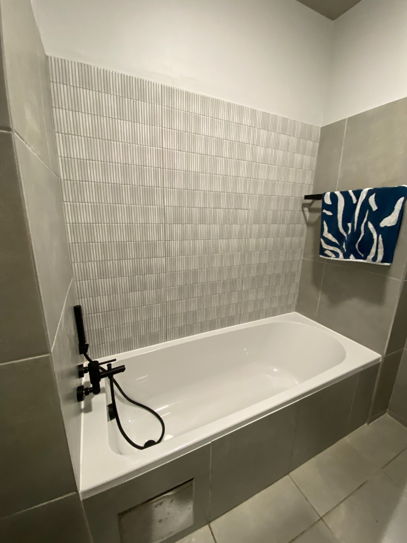 The second bathroom is beautifully designed and includes a bathtub, basin, and toilet, ideal for guests or family use.